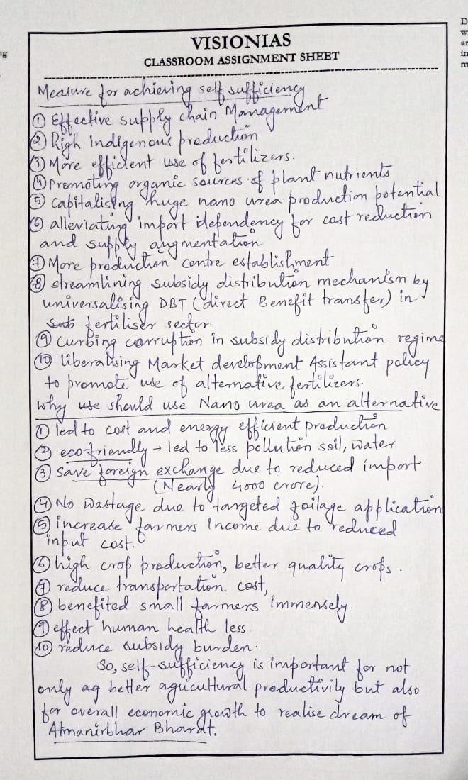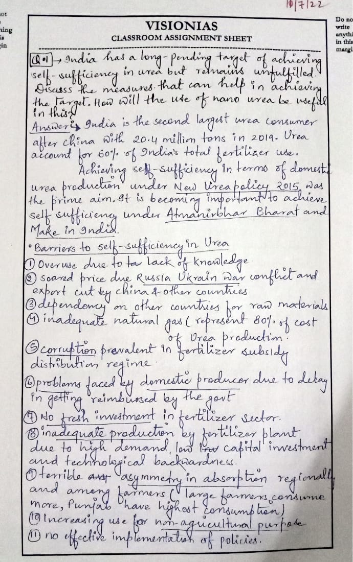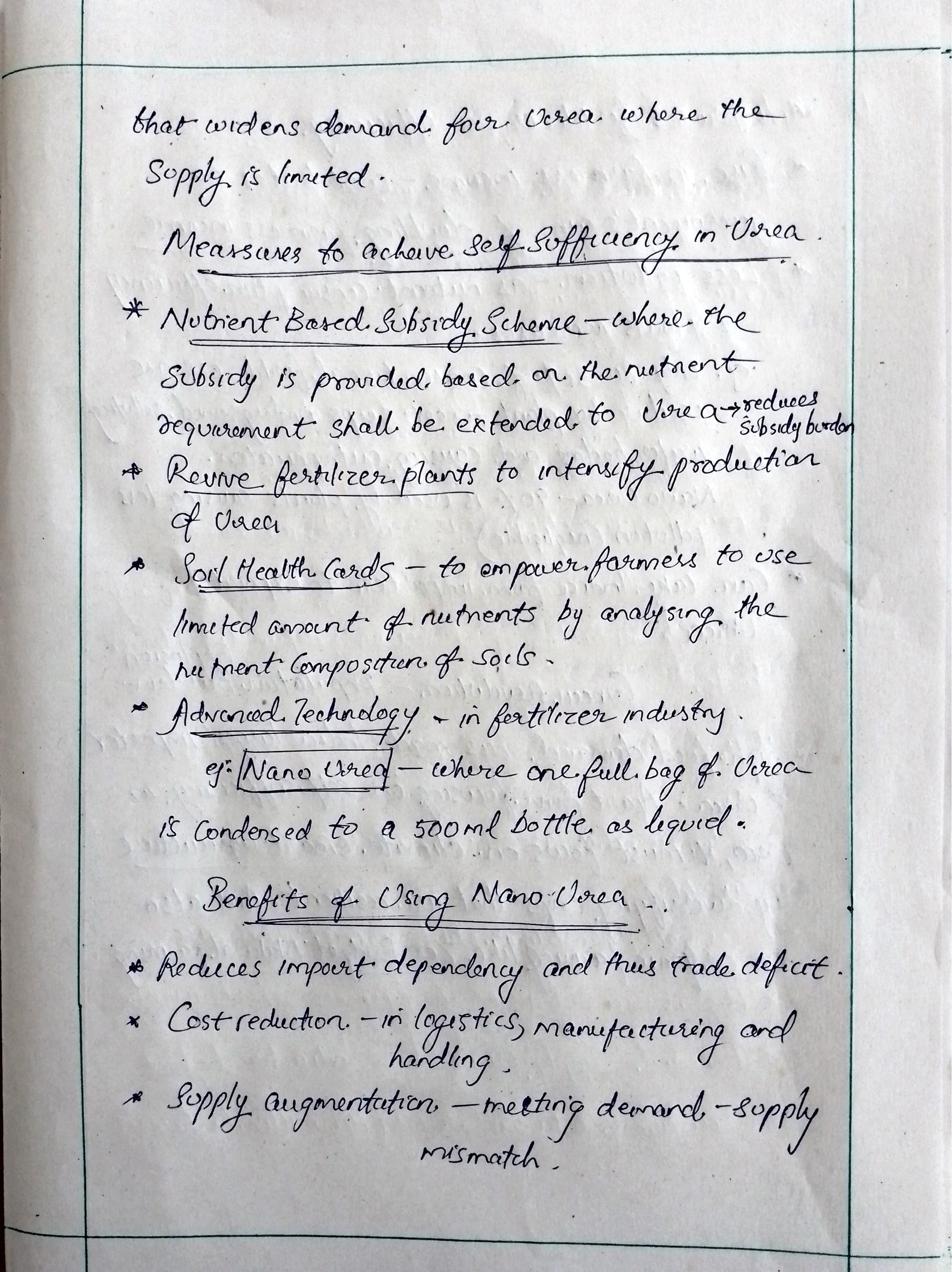 I think the point related to Russia-Ukraine war can be avoided, as it is a very recent development. India would have had dependence on imports even in the absence of war. Also the point related to non-agriculture use can be rephrased to include ‘diversion of subsidized urea to non-agriculture use’ Highlight the aspect of illegal diversion.