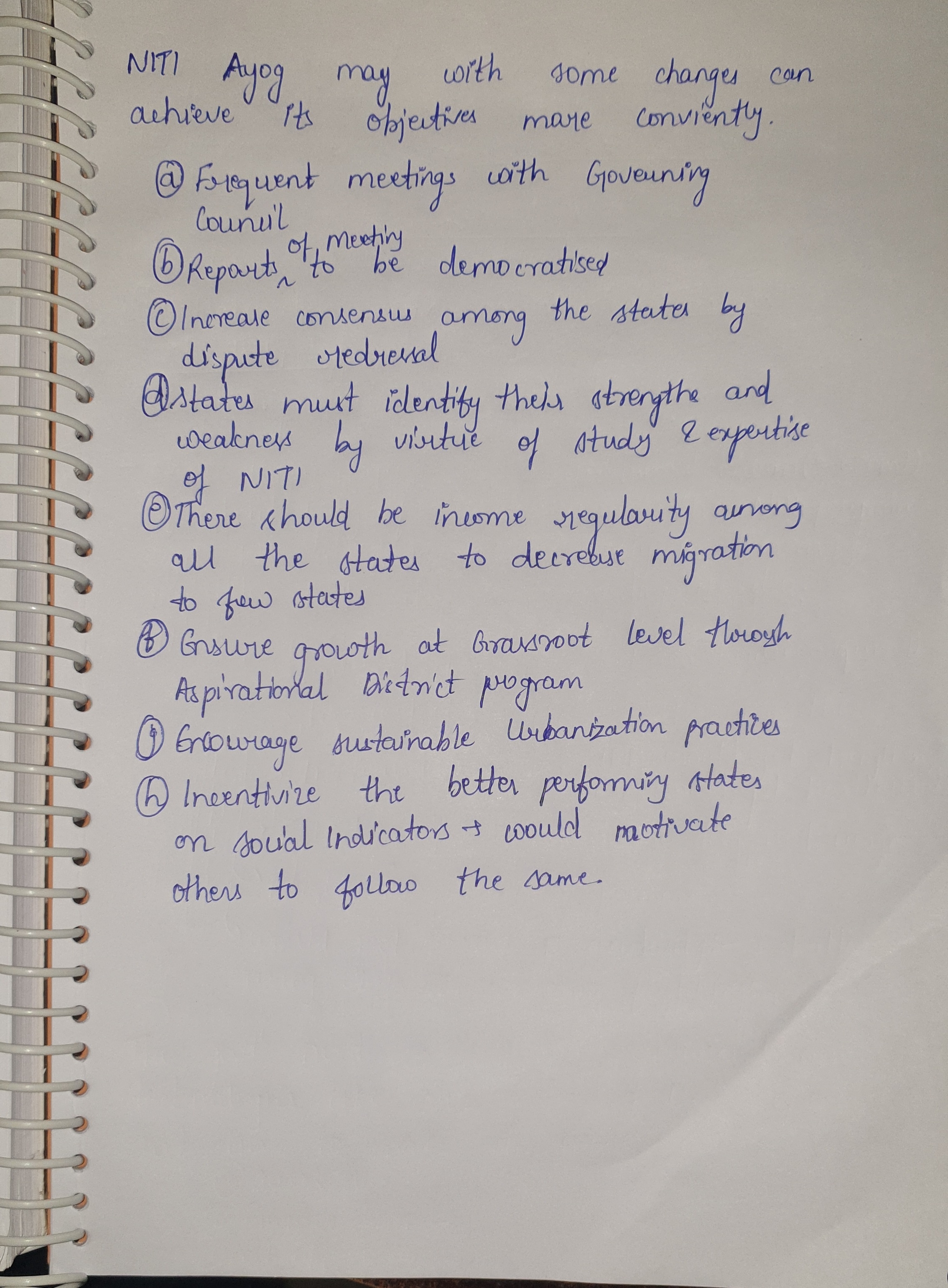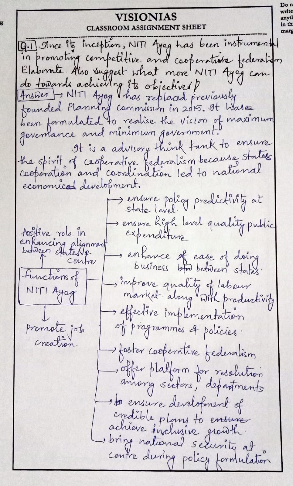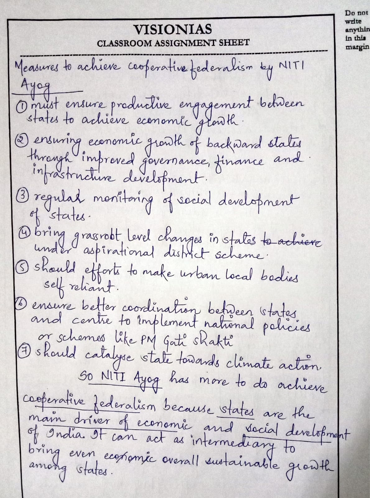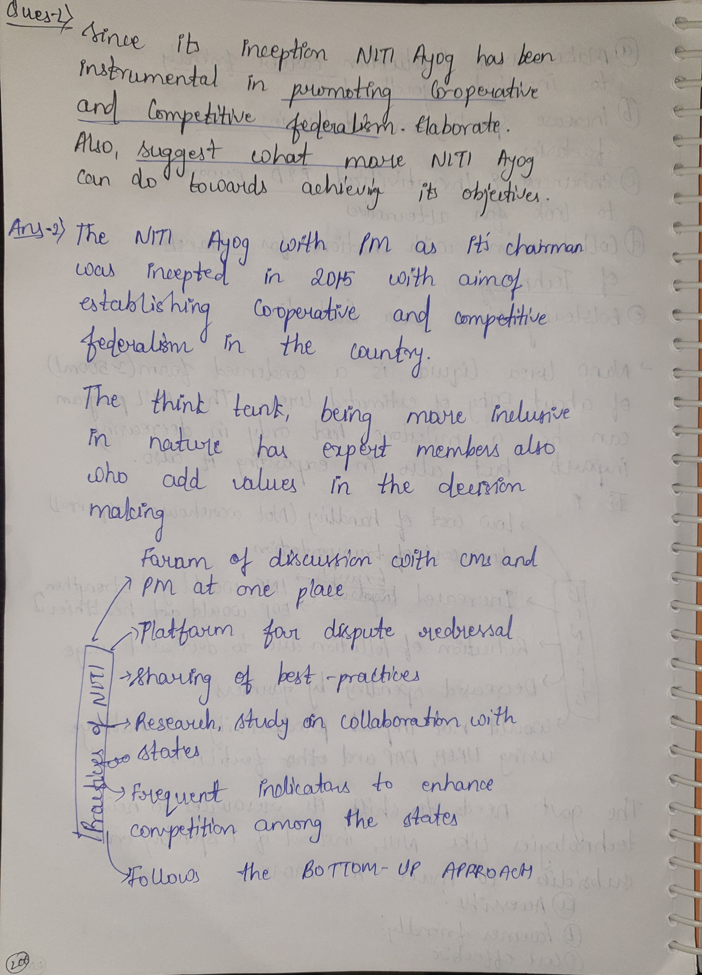 2) Since its inception, NITI Aayog has been instrumental in promoting competitive and cooperative federalism. Elaborate. Also, suggest, what more NITI Aayog can do towards achieving its objectives?