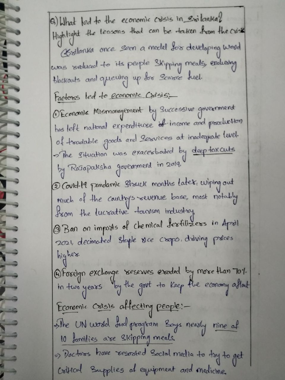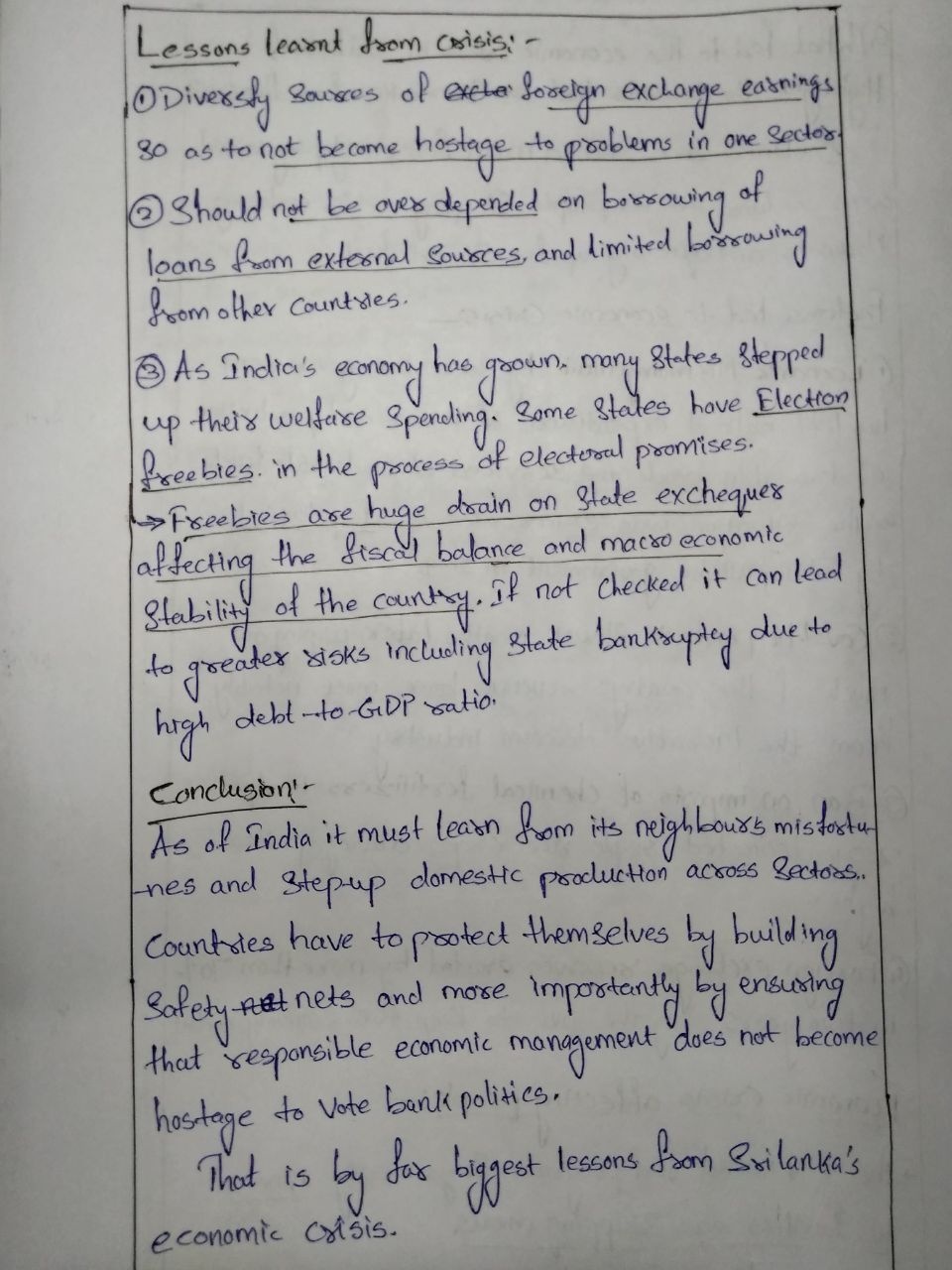 1) What led to the economic crisis in Sri Lanka? Highlight the lessons that can be taken from this crisis.