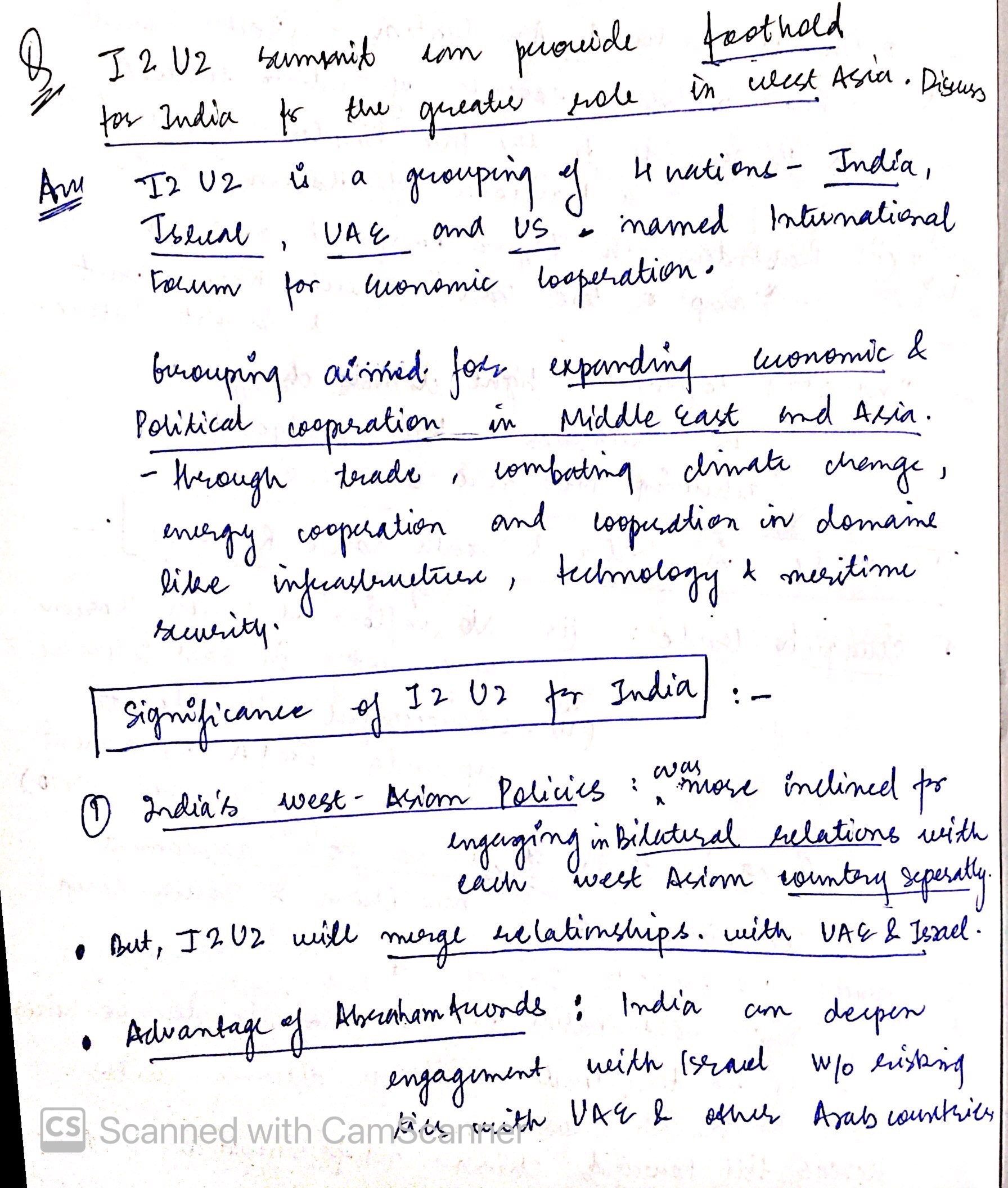 2) I2U2 summit can provide a foothold for India for a greater role in West Asia. Discuss.