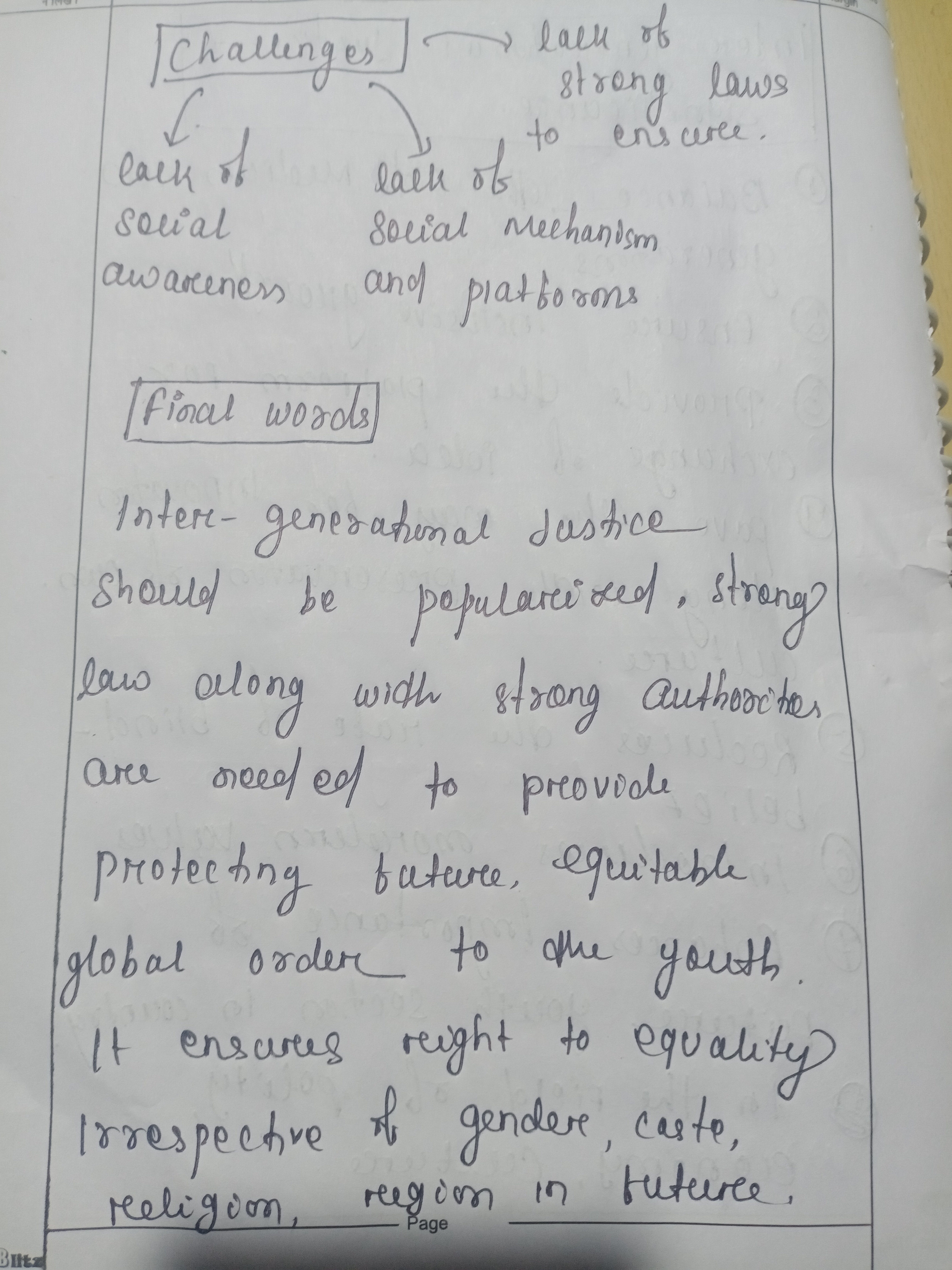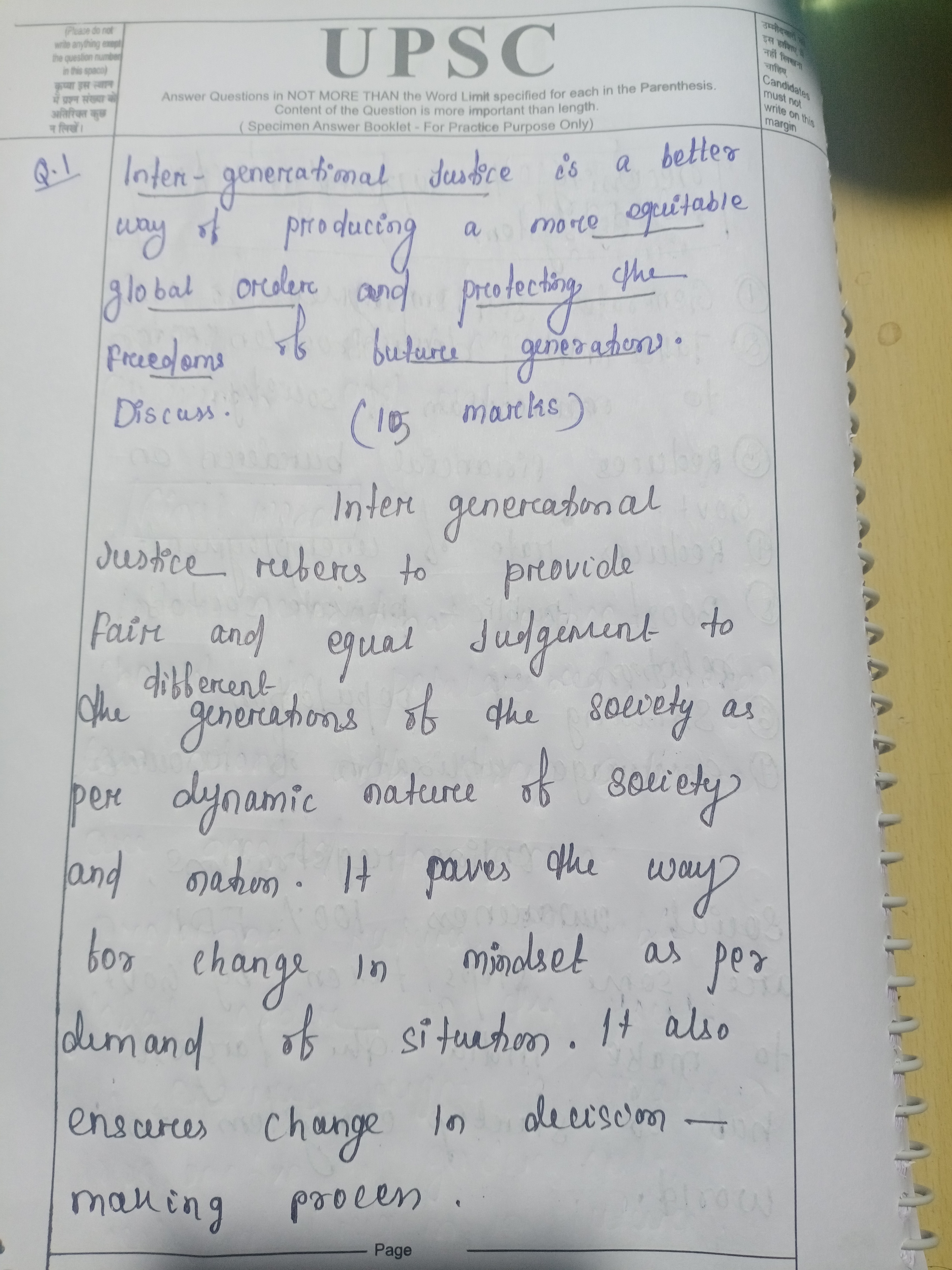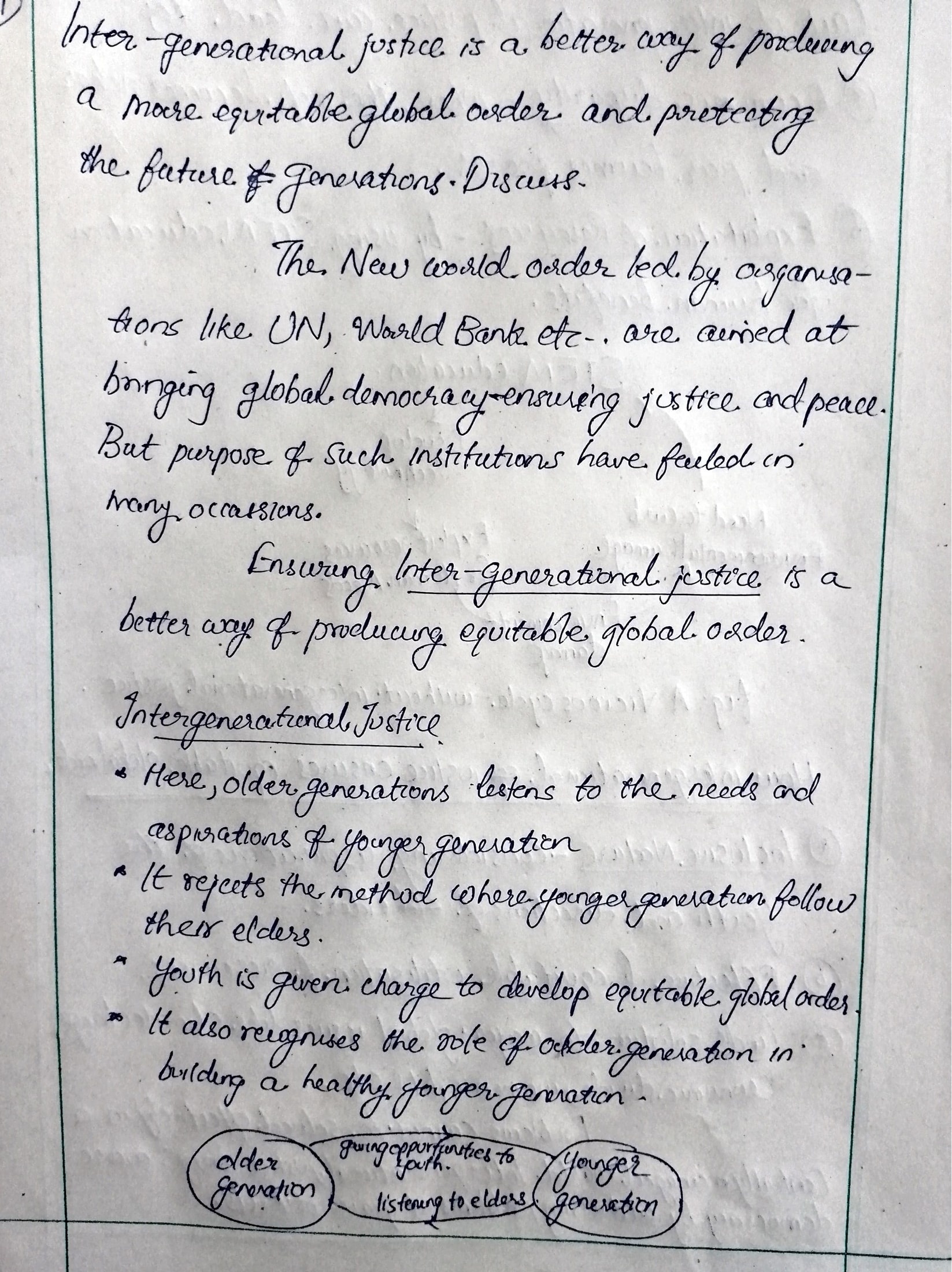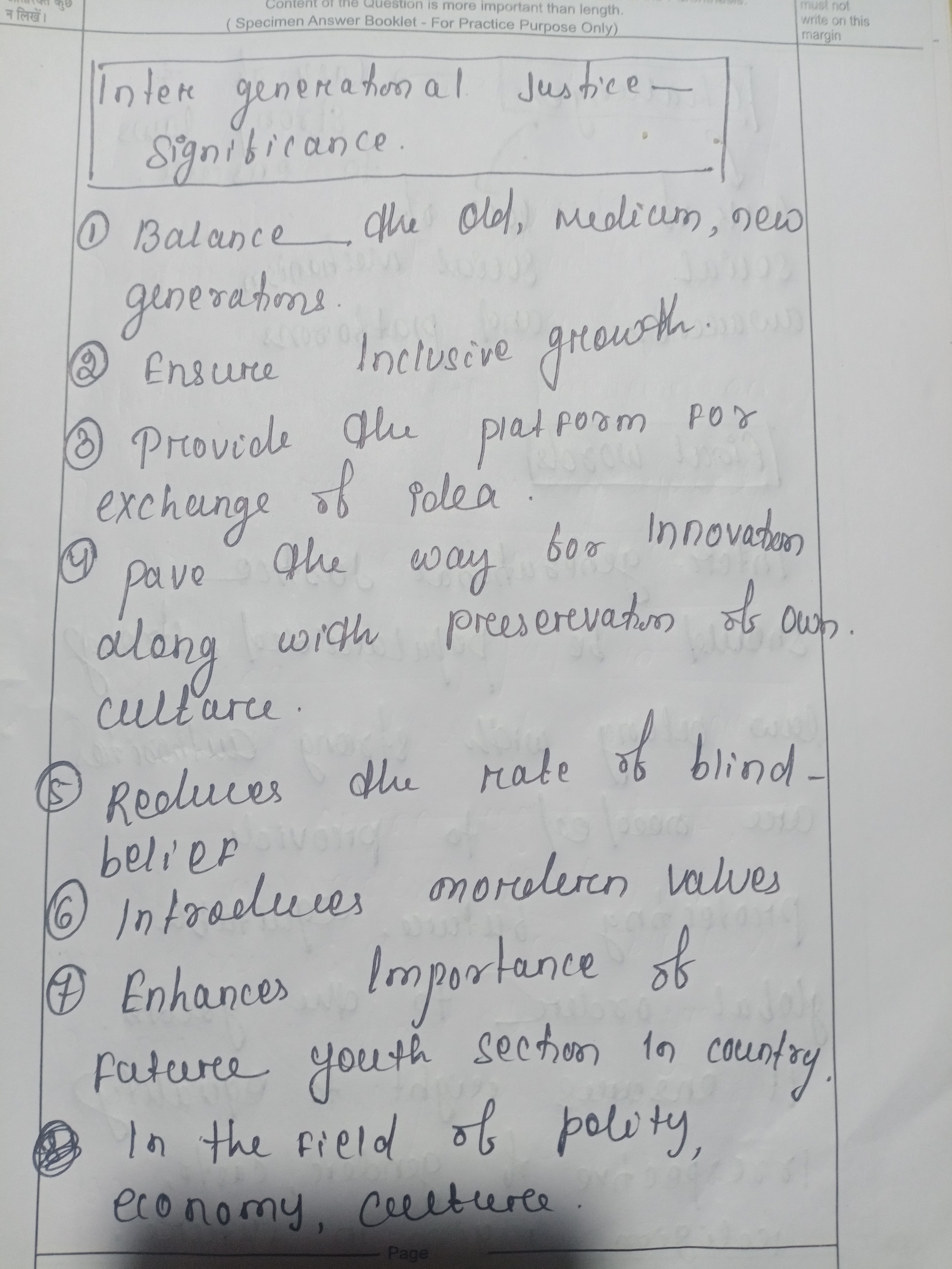 I feel you should have added a simple definition of ‘inter-generational justice’ or your interpretation what it means. What you have mentioned under IG Justice is more of a way-forward to ensure intergenerational justice.