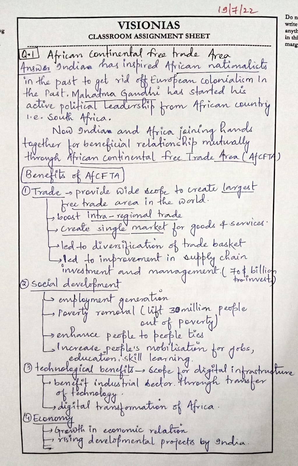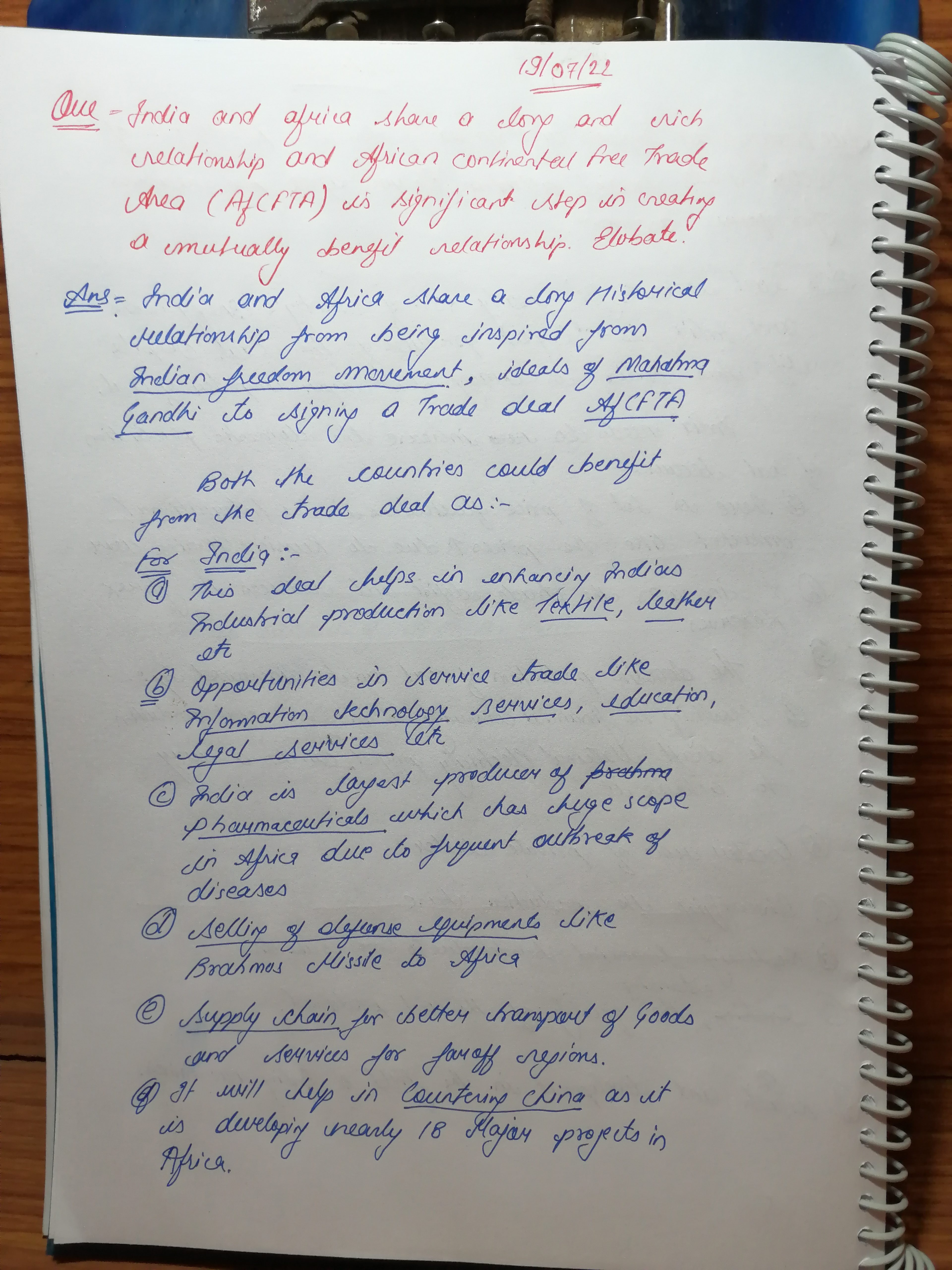 2) India and Africa share a long and rich relationship, and African Continental Free Trade Area (AfCFTA) is a significant step in creating a mutually beneficial relationship. Elaborate.