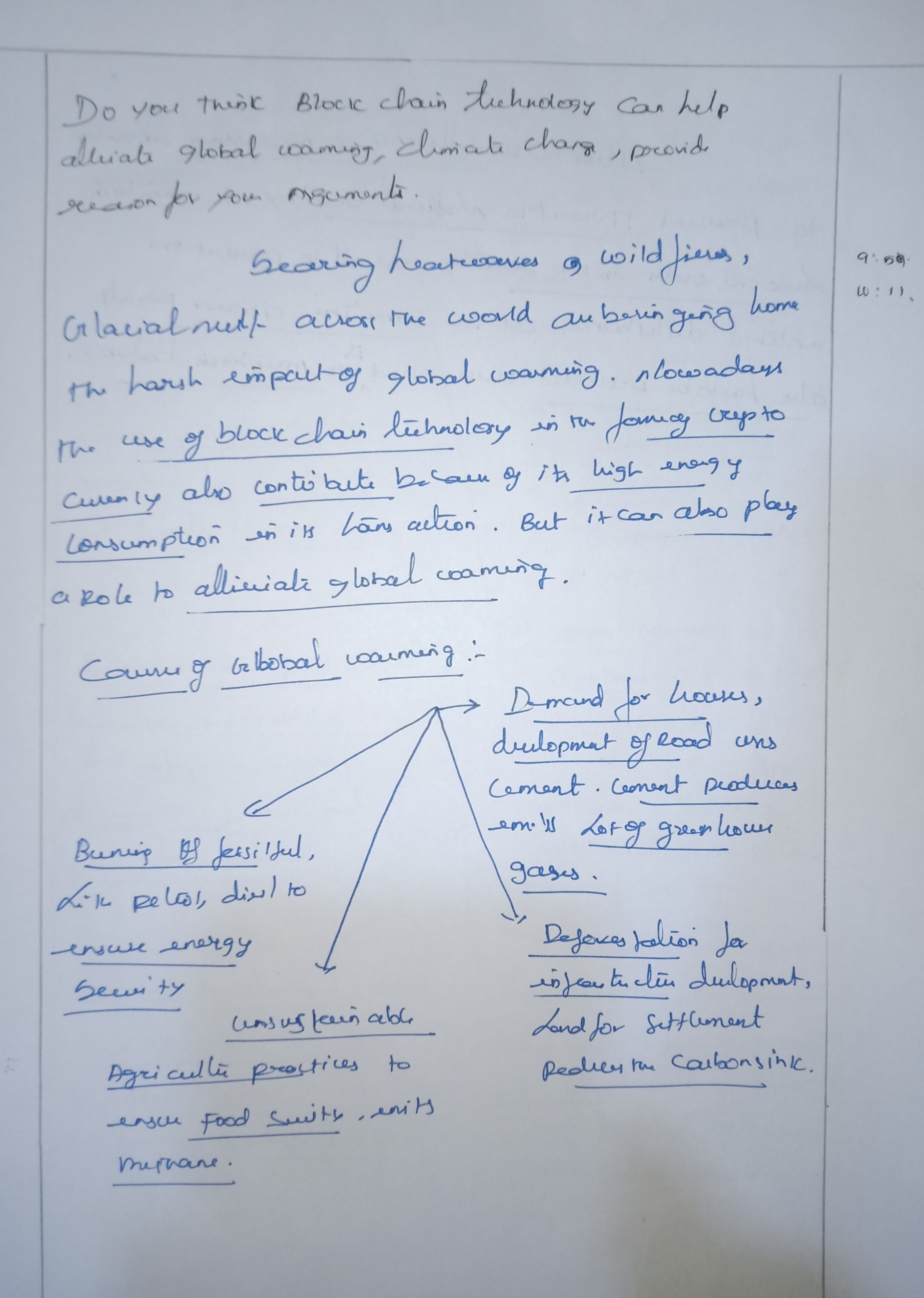 Great answer! I feel rather than listing the reasons for global warming, you could have put some data regarding the carbon footprint of blockchain technology.
