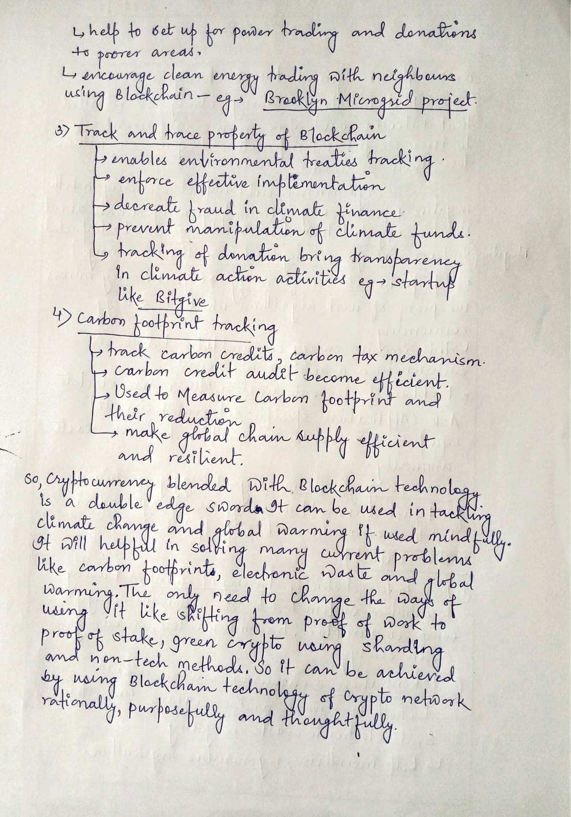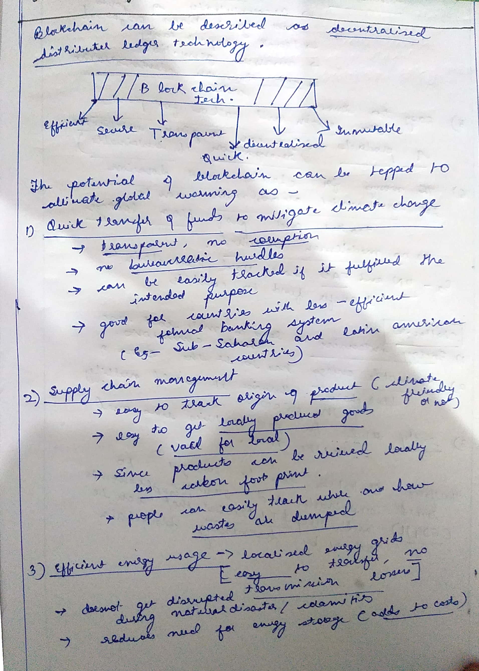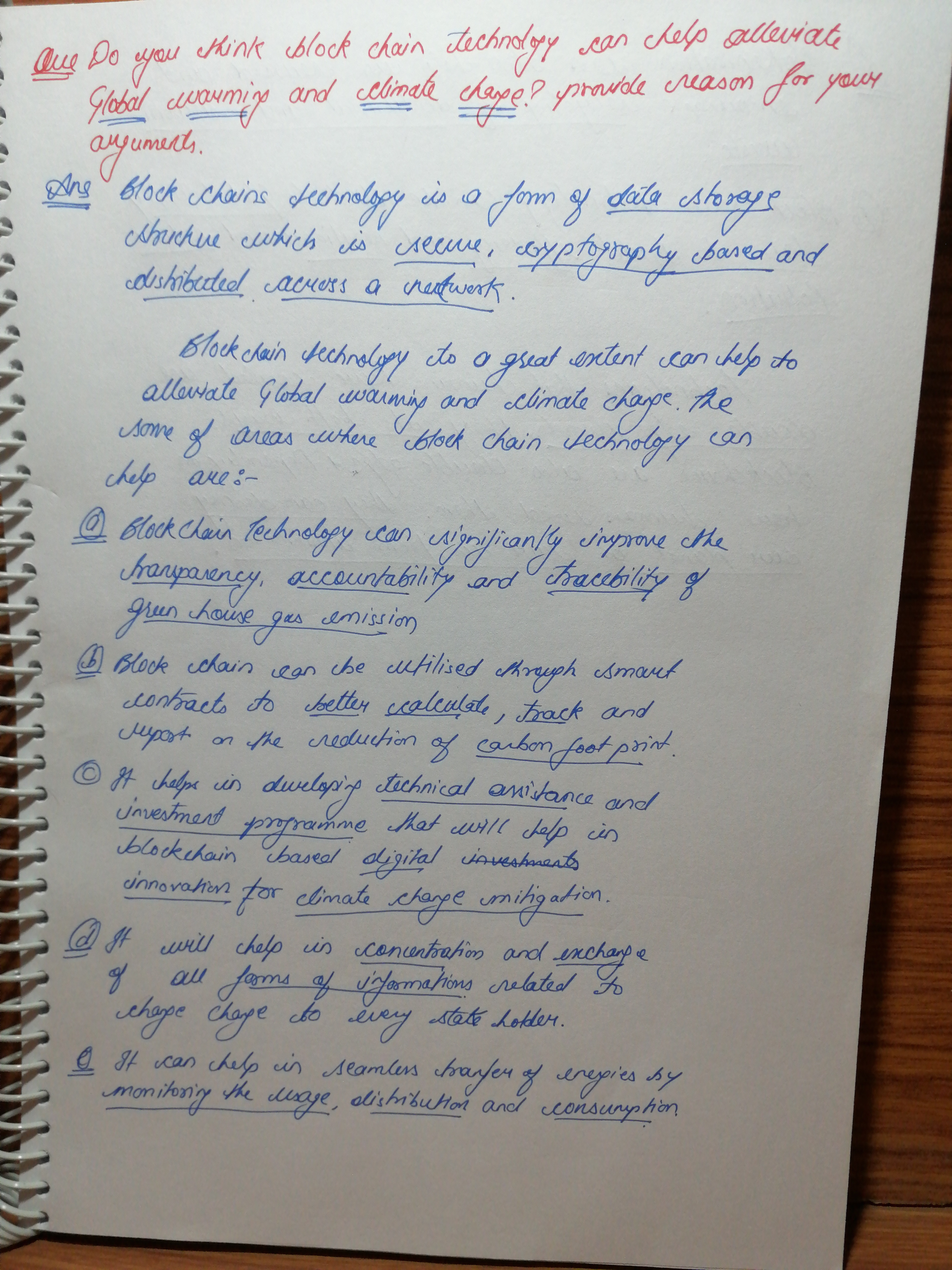 2) Do you think Blockchain technology can help alleviate global warming and climate change? Provide reasons for your arguments.