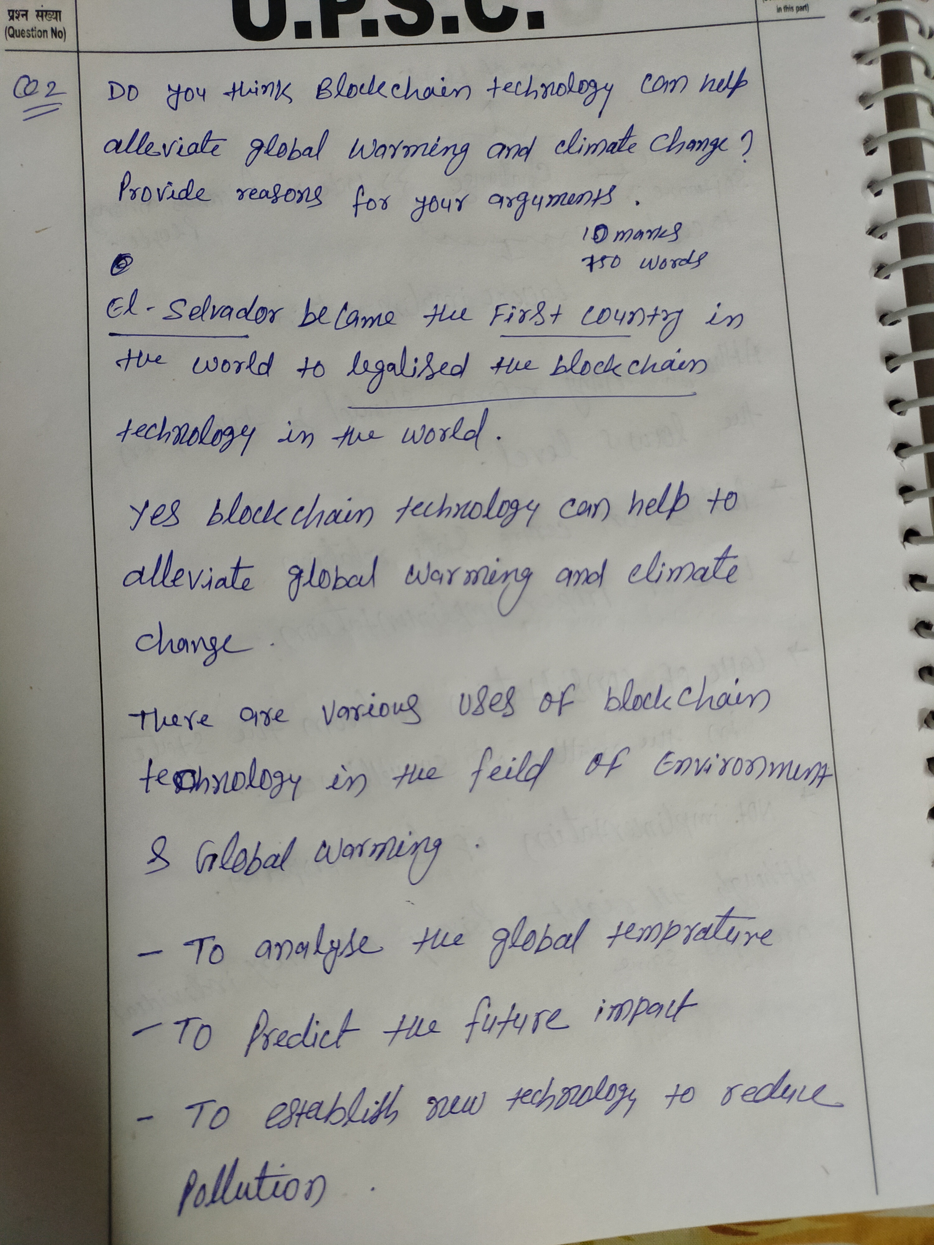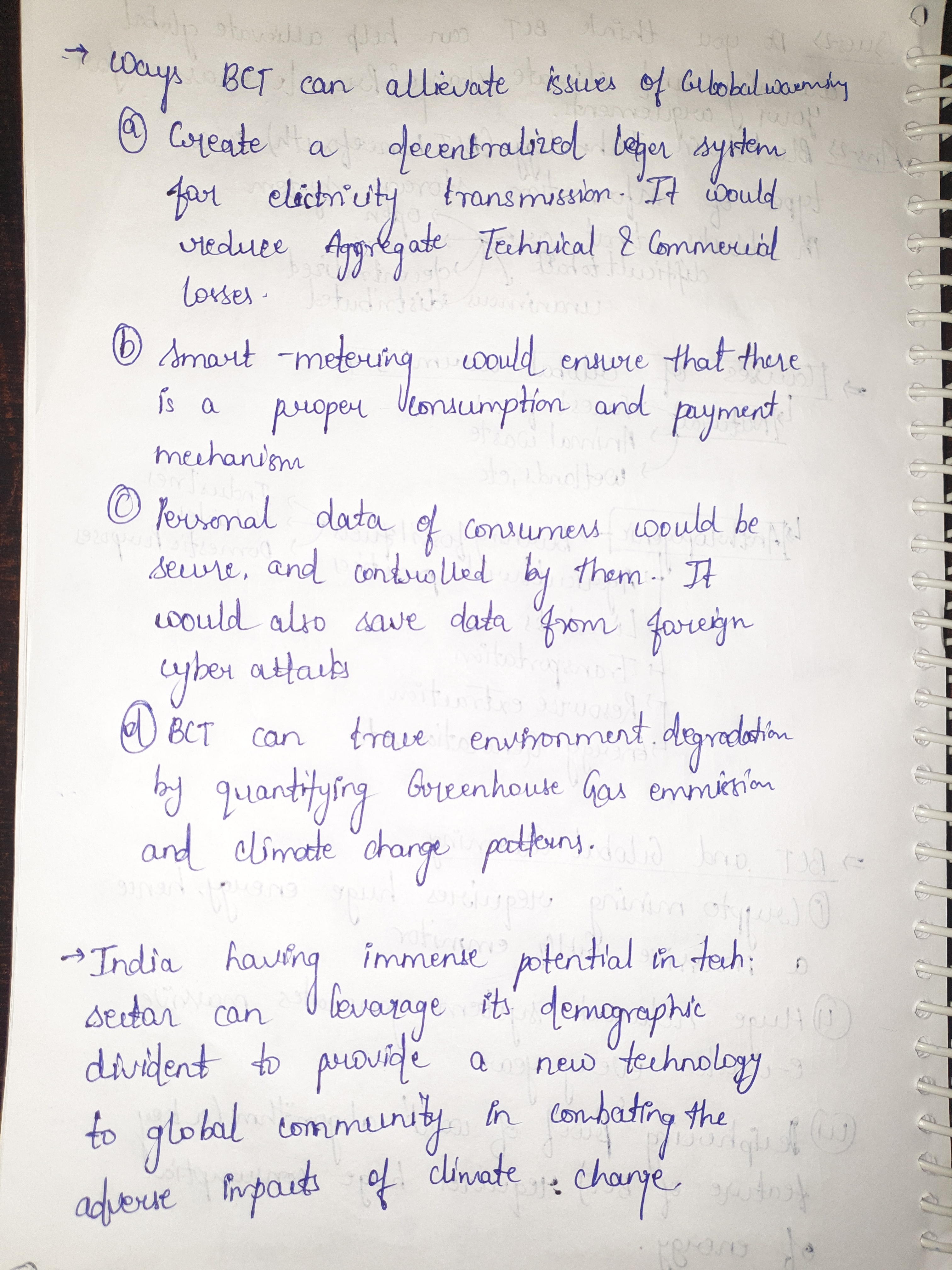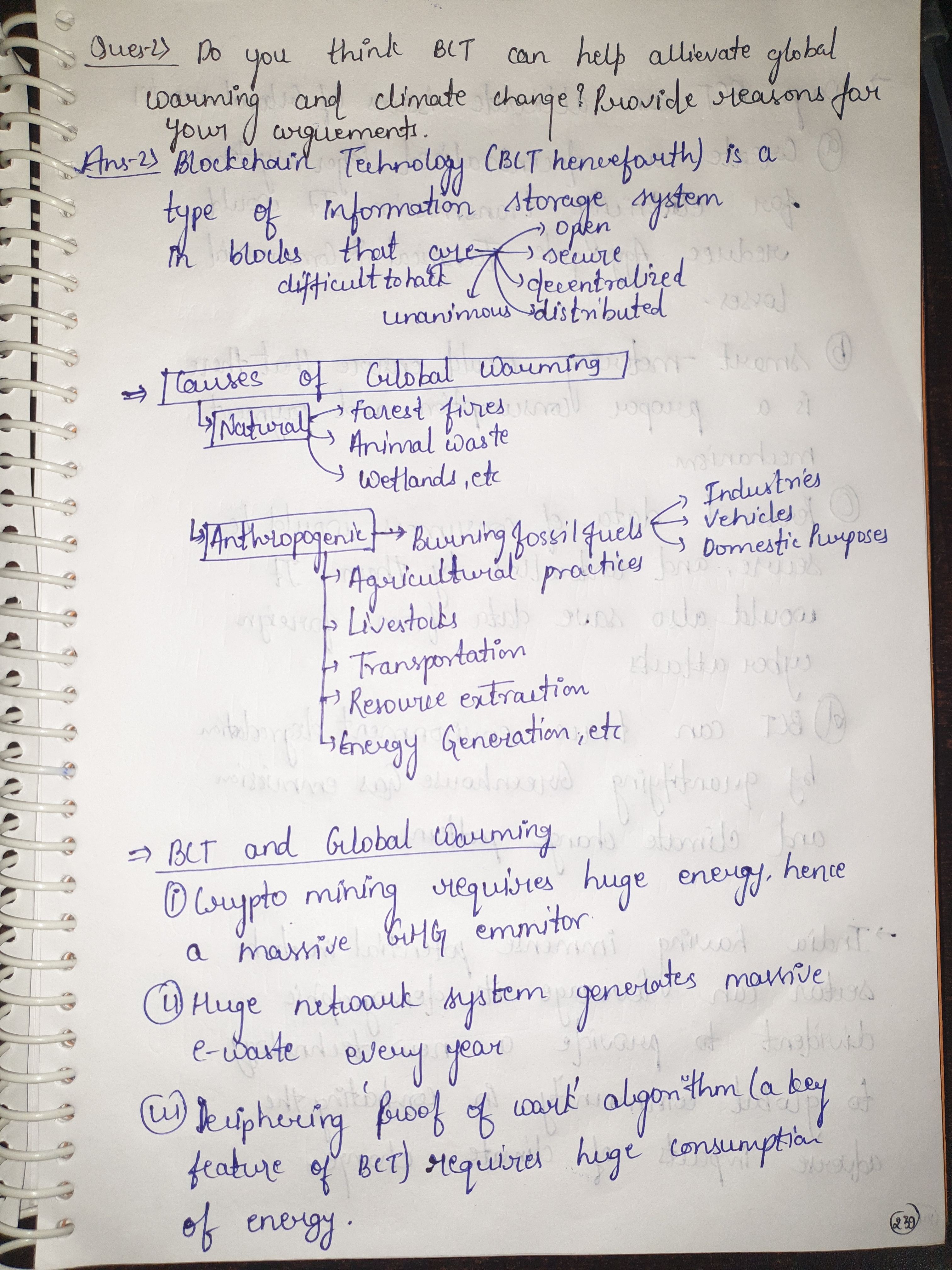 2) Do you think Blockchain technology can help alleviate global warming and climate change? Provide reasons for your arguments.