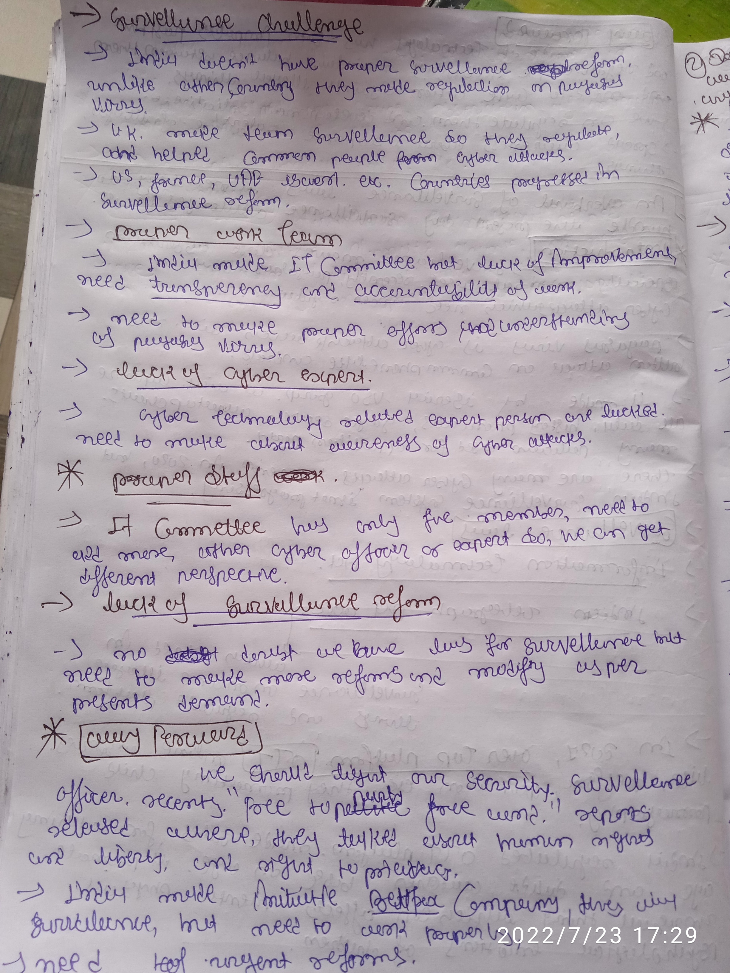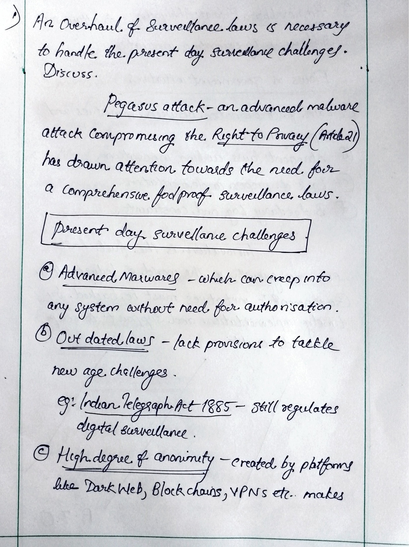 1) An overhaul of surveillance laws is necessary to handle the present-day surveillance challenges. Discuss.