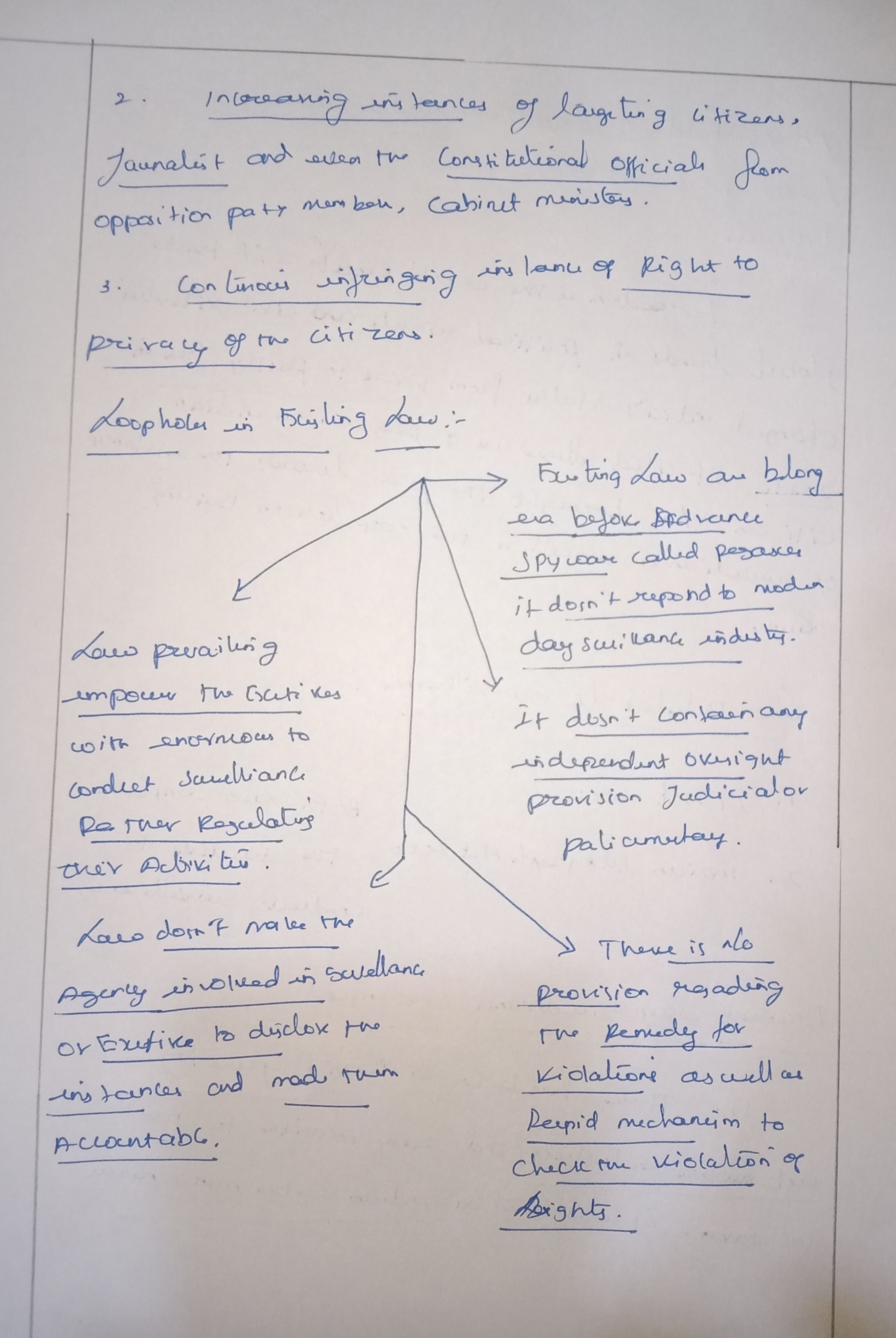 Excellent! You have addressed the core theme, that of lack of control over Executive’s power and the balance of public interest/national security with privacy/misuse. One more point can be added that the existing laws do not adequately cover advanced technologies available now.