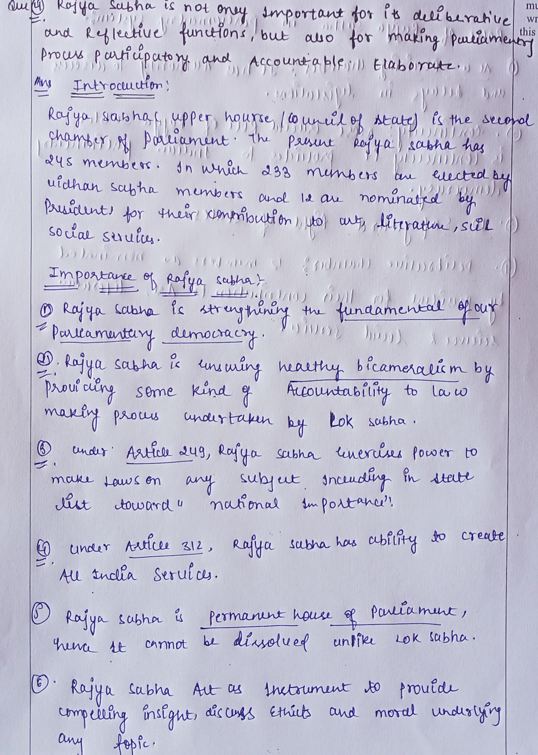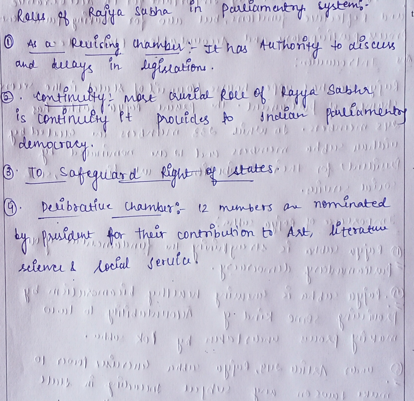 4. Do mention that the RS members have representation in the Parliamentary Committees, so help in scrutiny of Bills and working of the Executive etc.