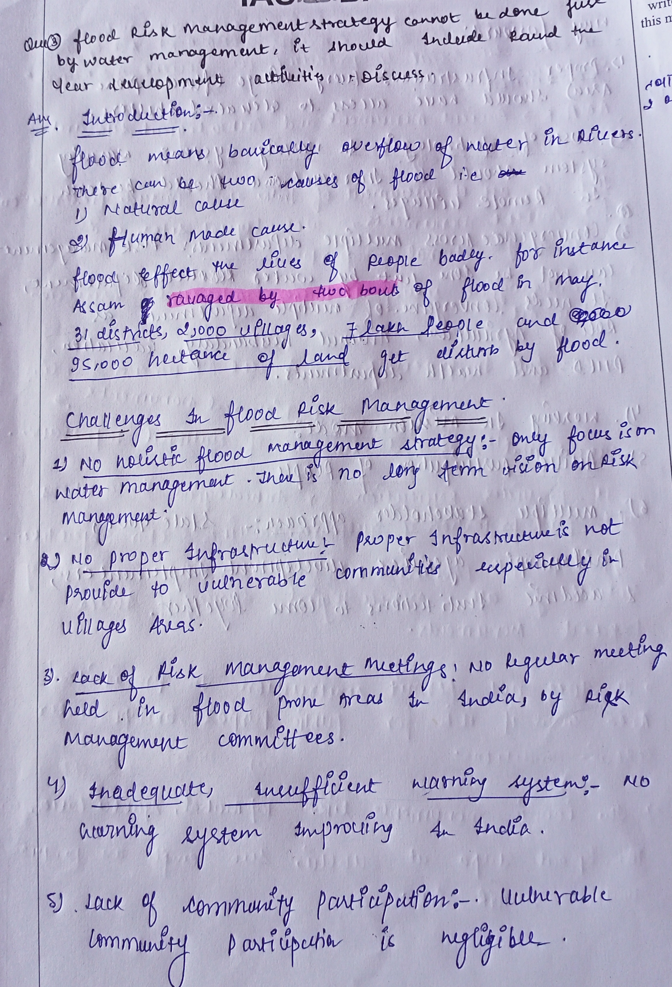 1) Flood risk management strategy cannot be done just by the water management, it should include round-the-year developmental activities. Discuss.