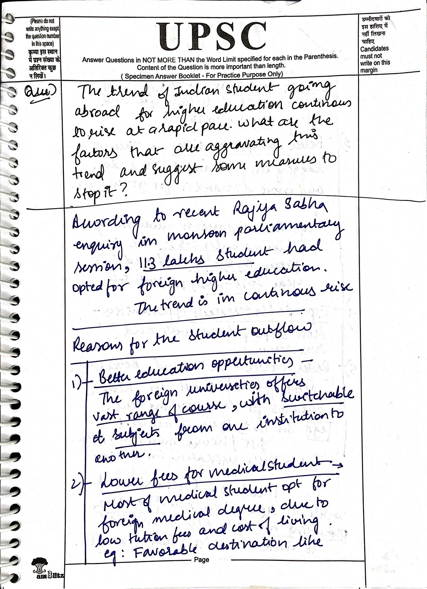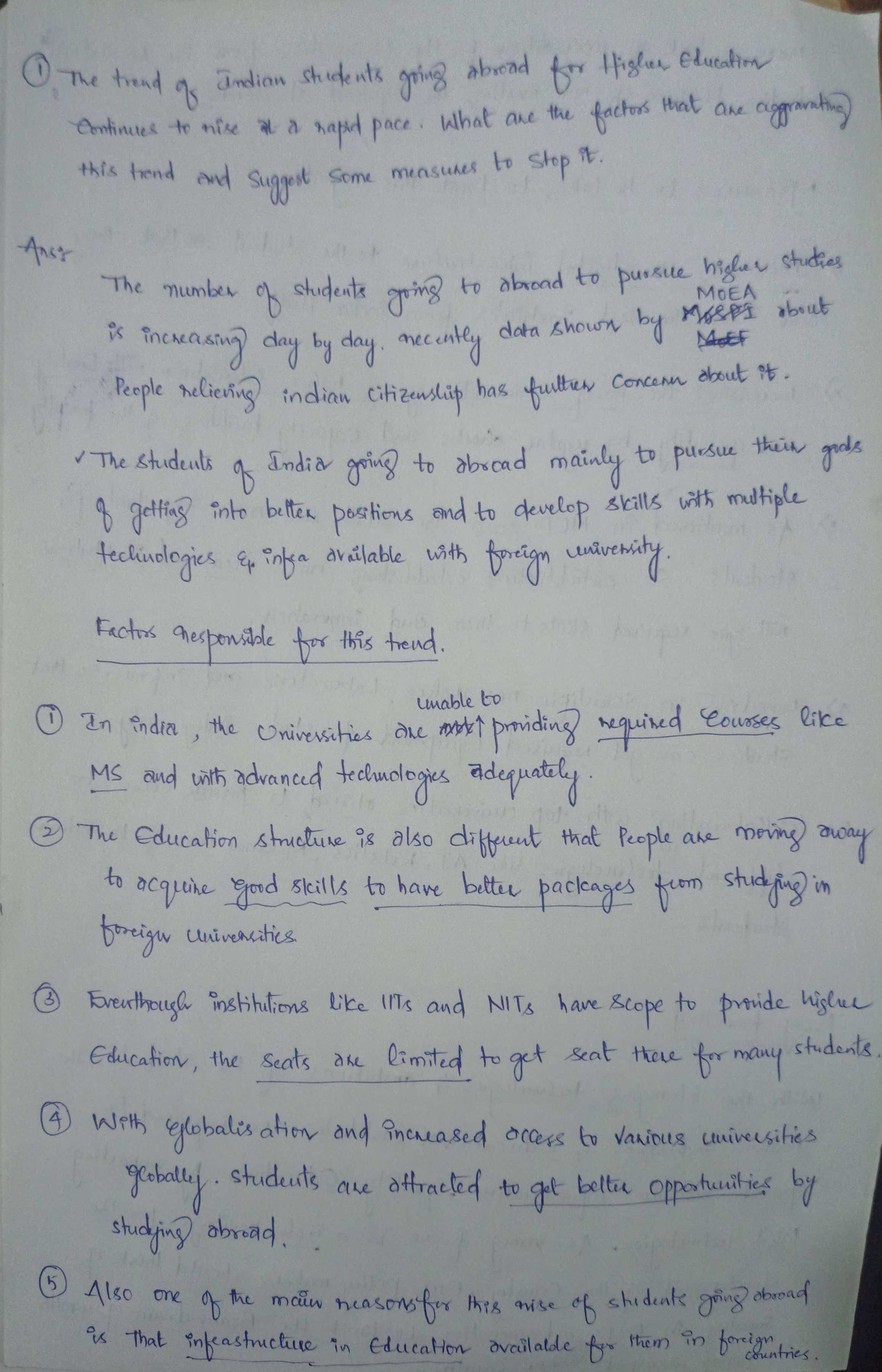 1) The trend of Indian students going abroad for higher education continues to rise at a rapid pace. What are the factors that are aggravating this trend and suggest some measures to stop it.