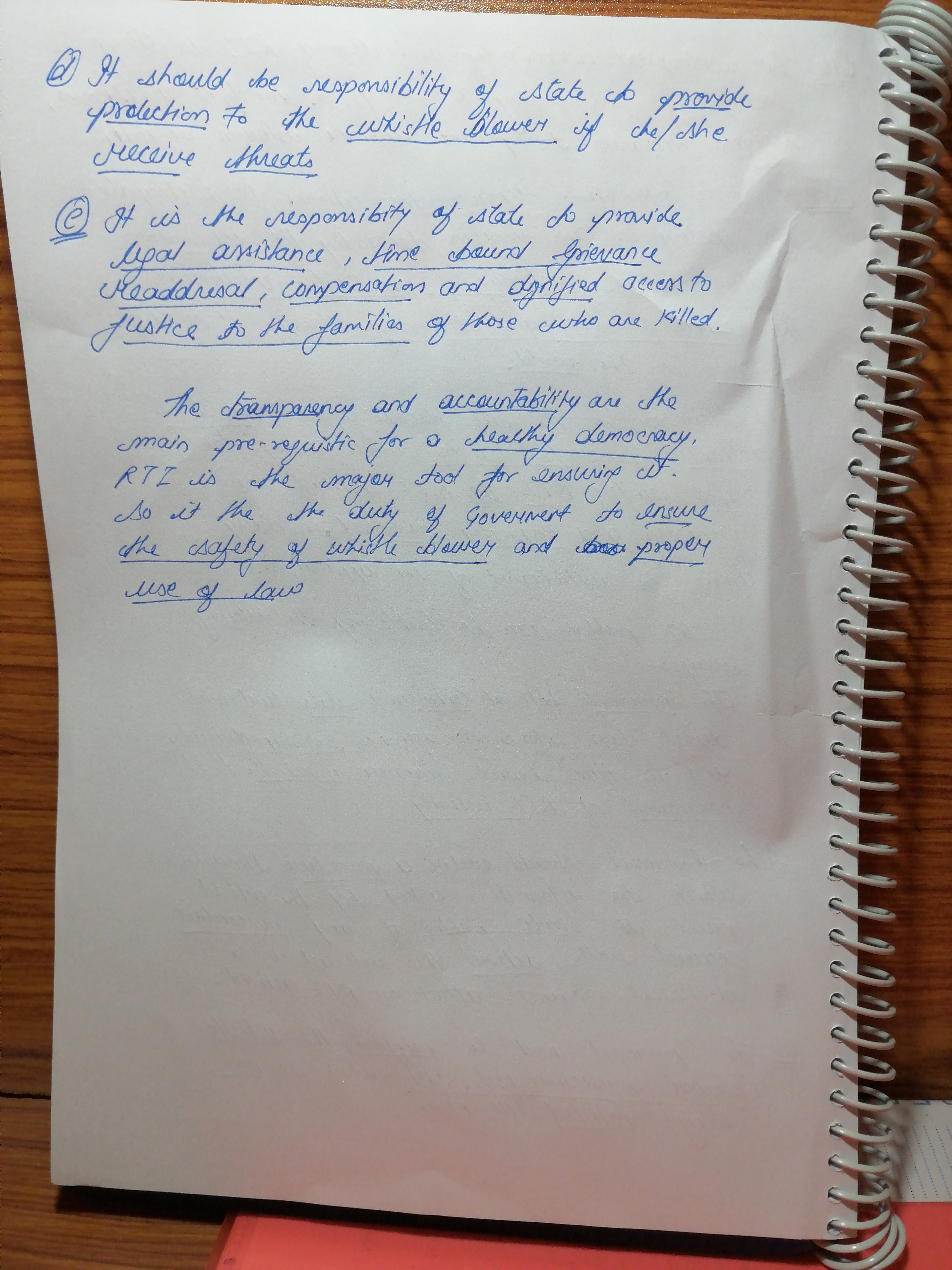 2) The widespread understanding and use of the RTI is a shining example of participatory democracy. In the light of the statement, suggest measures to protect whistleblowers in India.