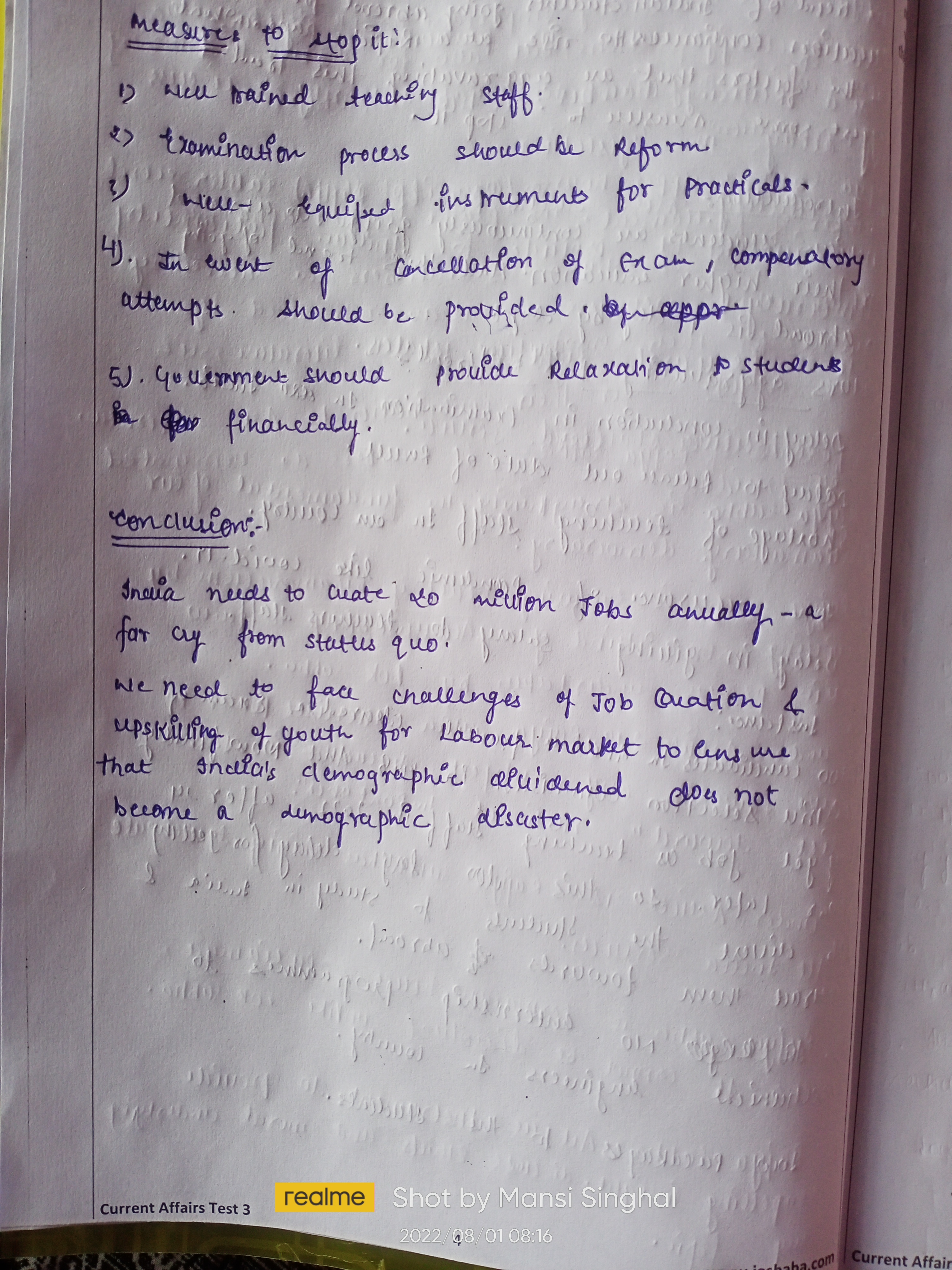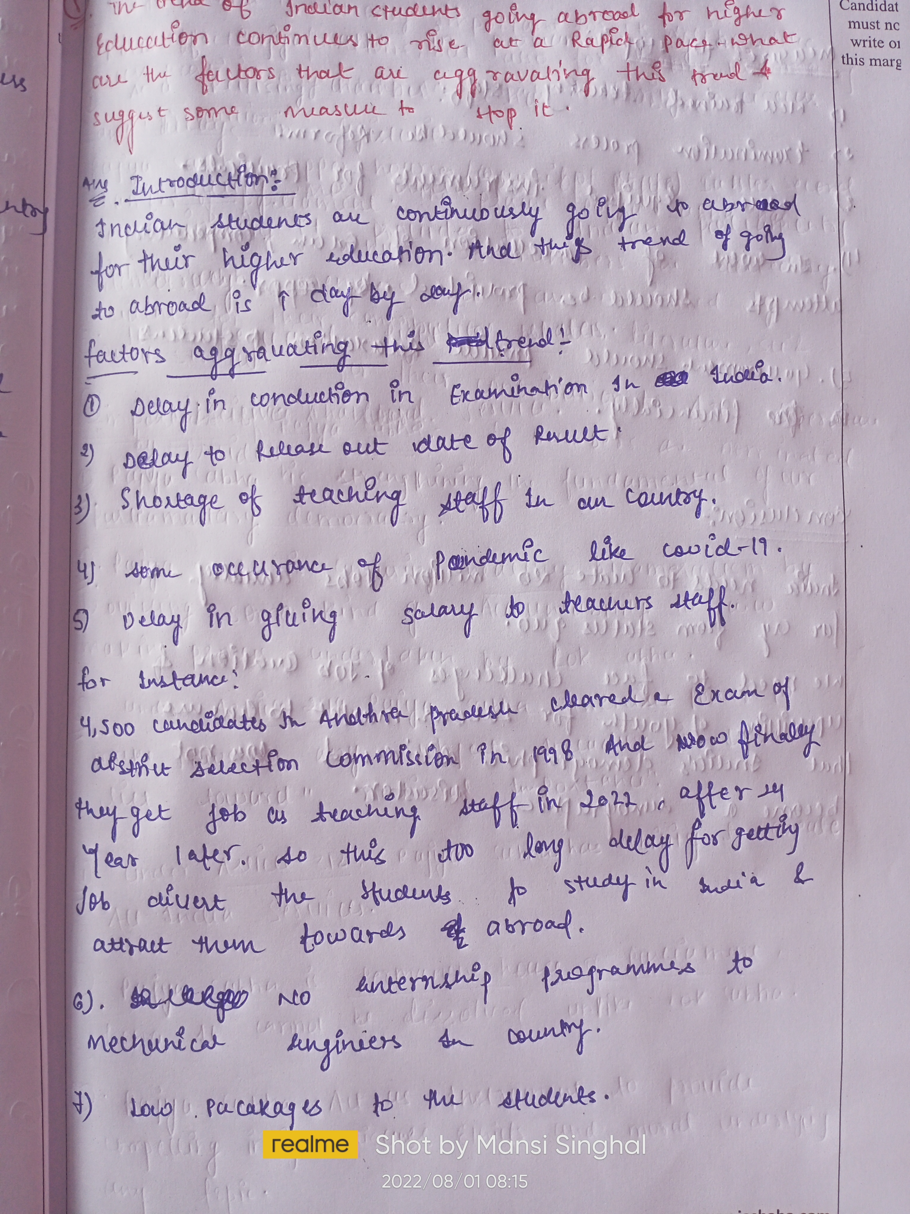 1. Prioritize the content, e.g., points like lack of adequate job opportunities, lack of teaching staff should be mentioned above delay in examinations etc.