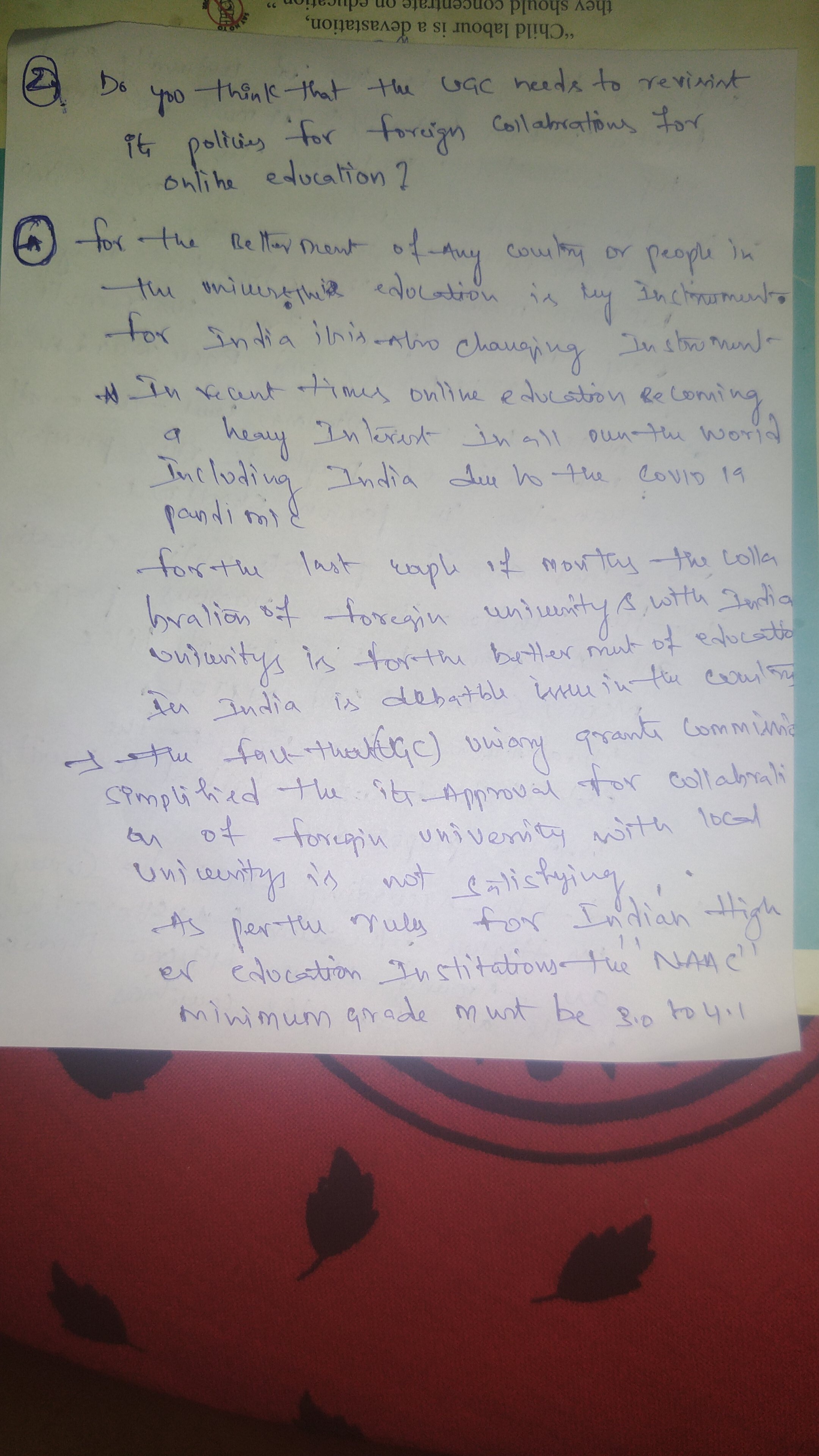 2) Do you think that the UGC needs to revisit its policies for foreign collaborations for online education?