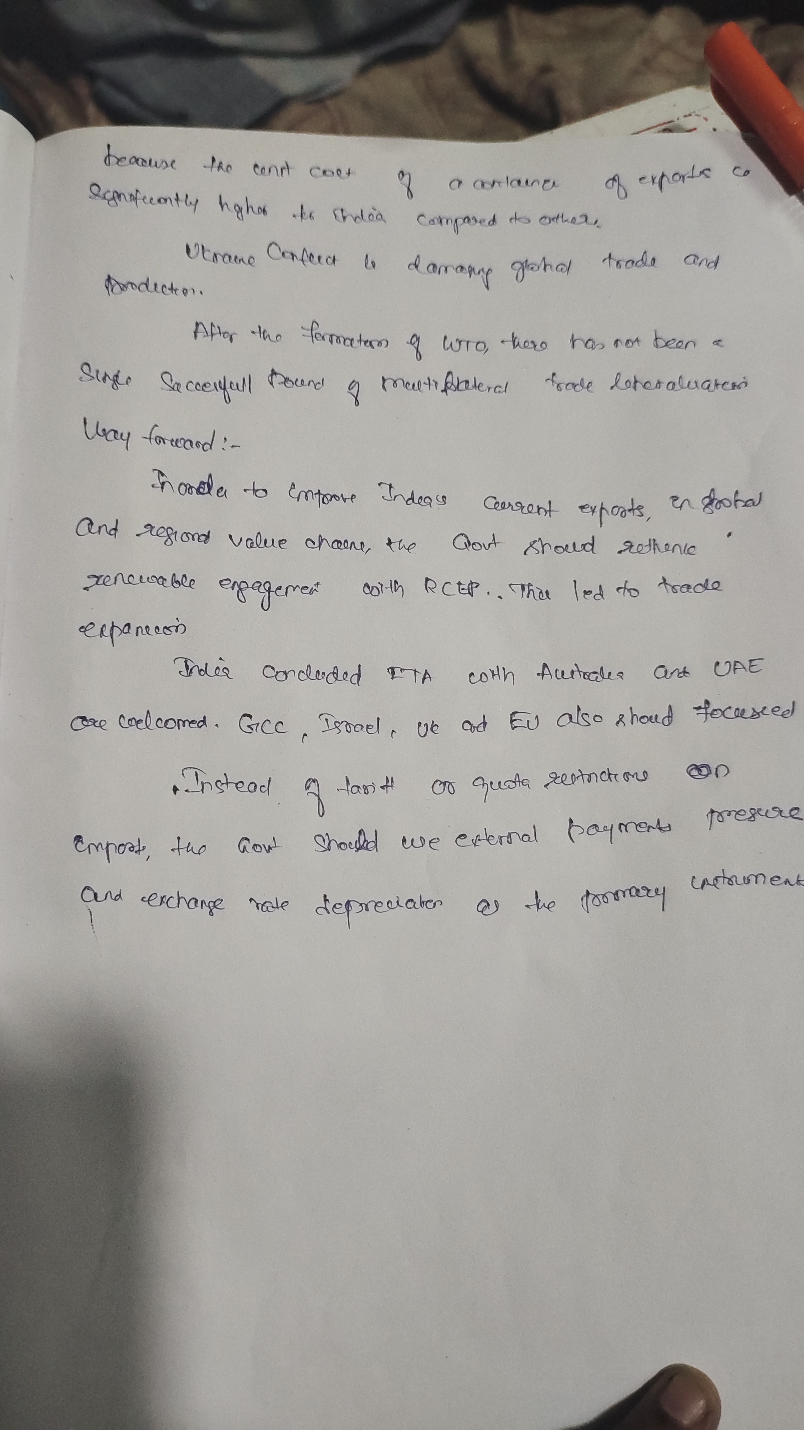 The way forward is good, mentioning the suggestions to improve India’s trade. If possible, number them.