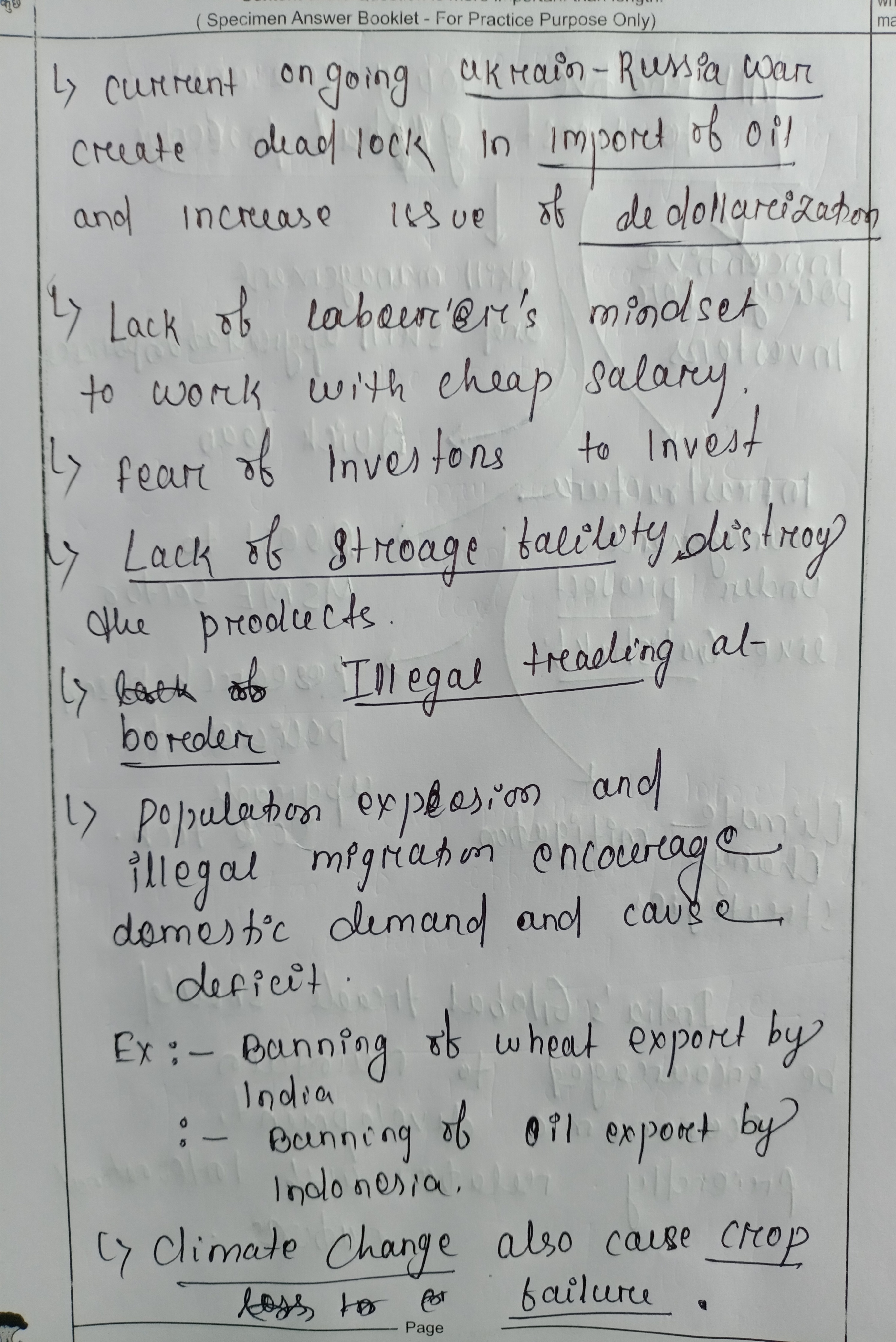 1. The core reasons for poor trade performance have been missed. These include high tariffs, trade restrictions (like ban on export of wheat in May 2022), India’s reluctance to join trade blocs like RCEP, India not being part of global manufacturing value chains, lack of support especially to MSMEs to utilize their export potential etc. Your answer should be on these lines.