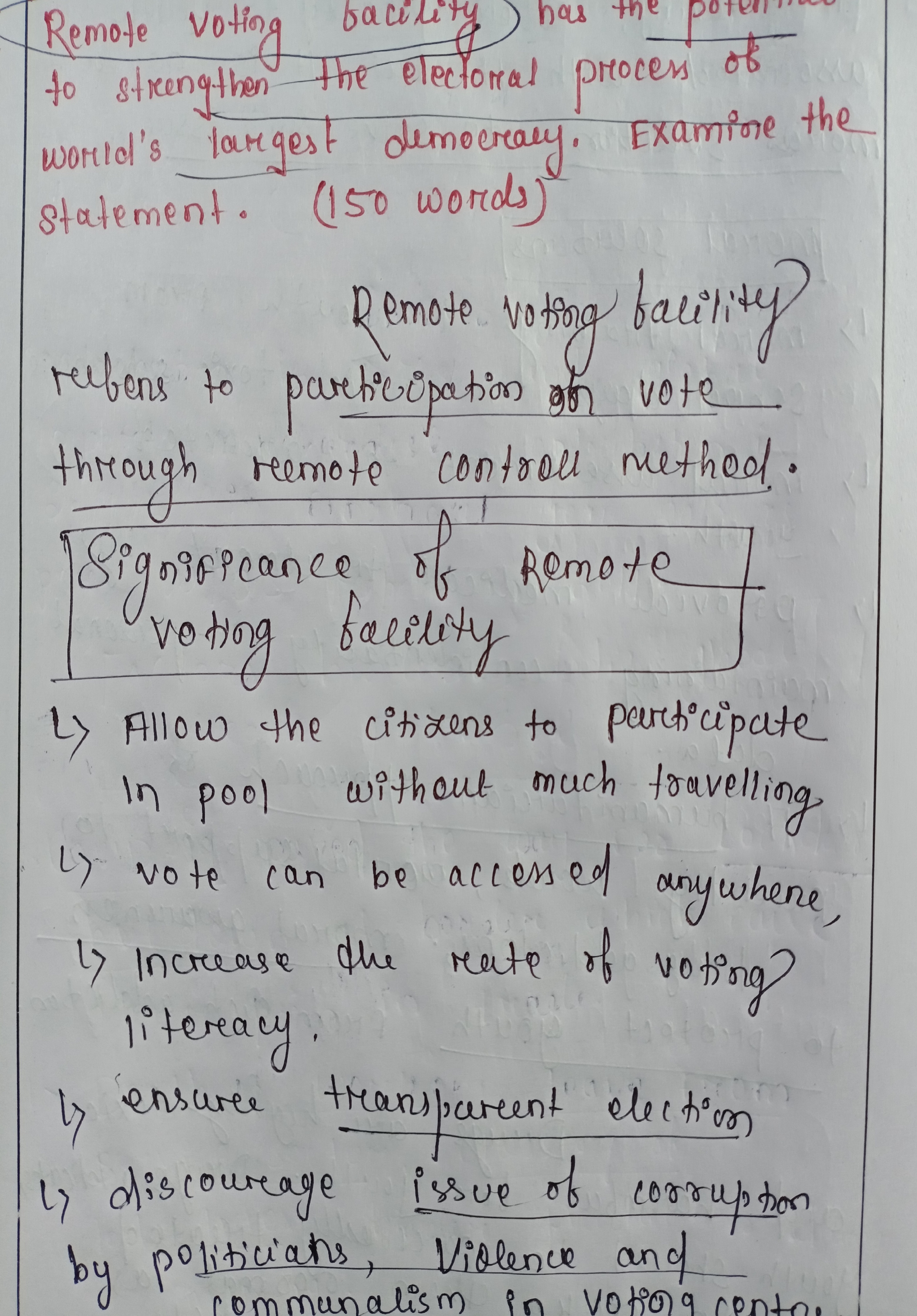 1) Remote Voting Facility has the potential to strengthen the electoral process of the world’s largest democracy. Examine the statement.
