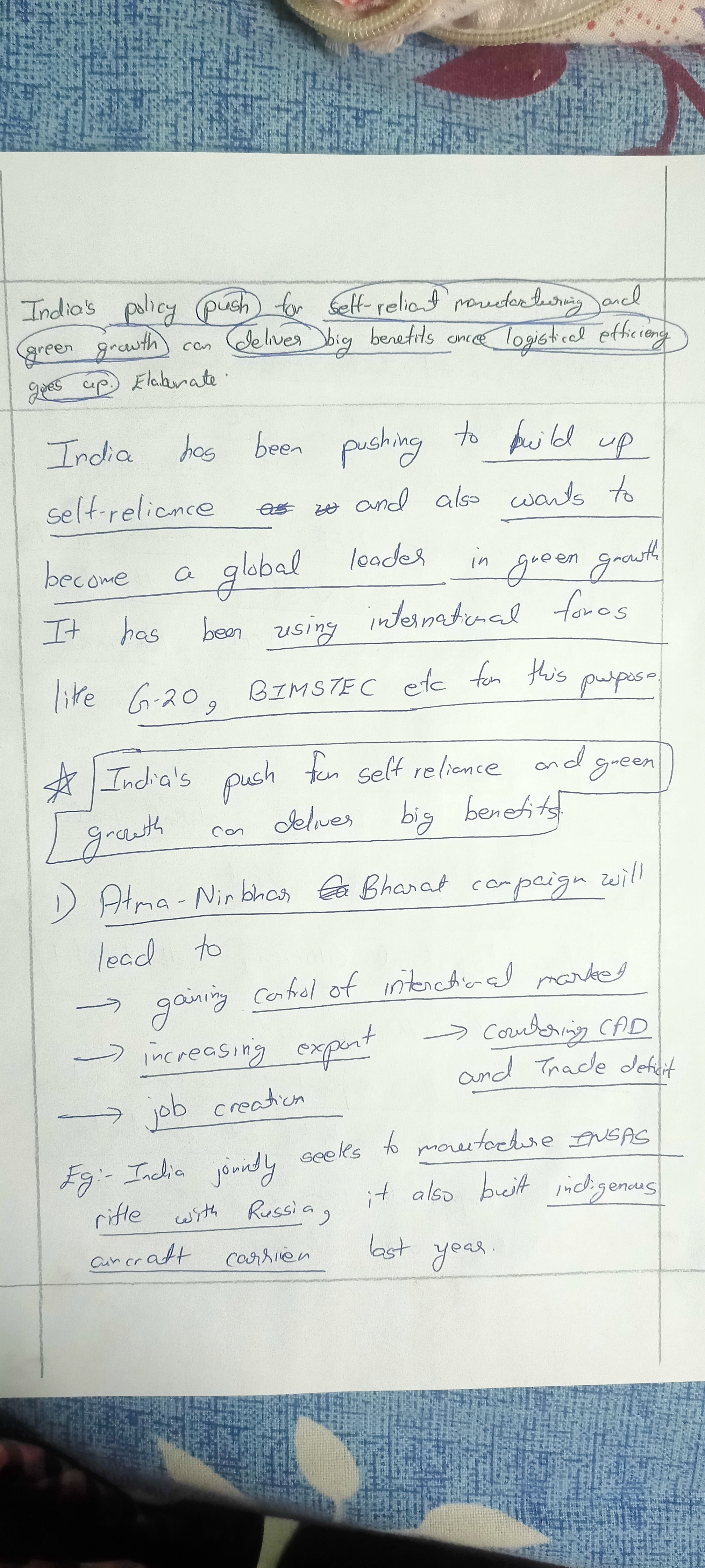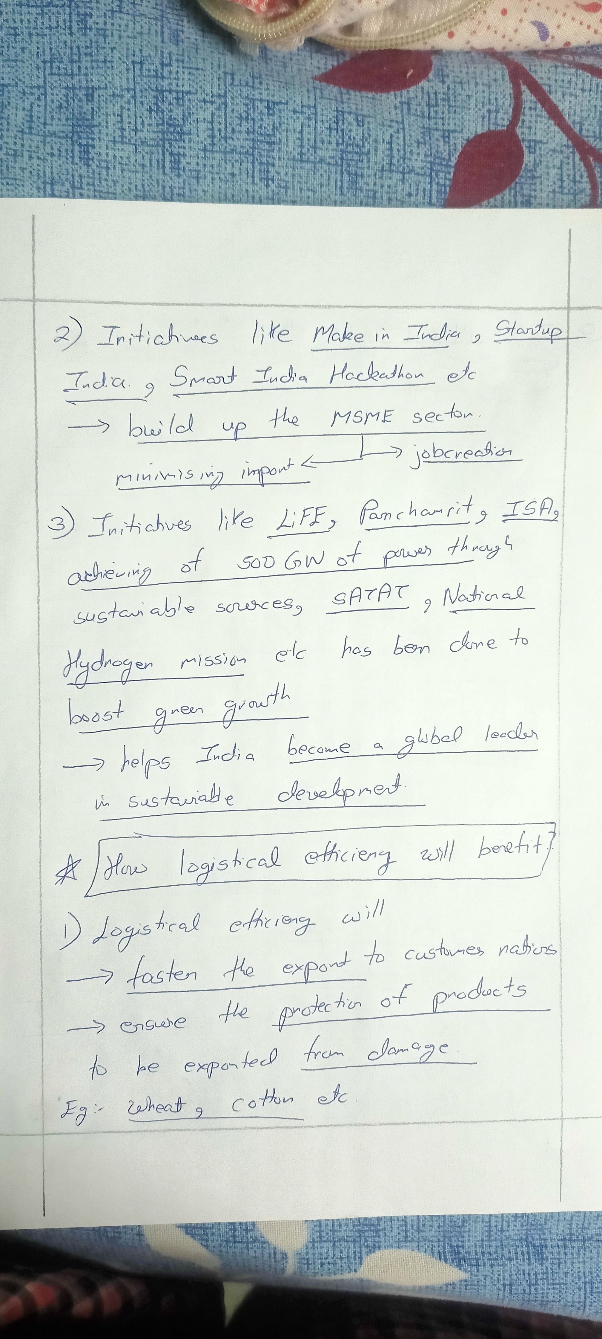India’s policy push for self-reliant manufacturing and green growth can deliver big benefits once logistical efficiency goes up. Elaborate.