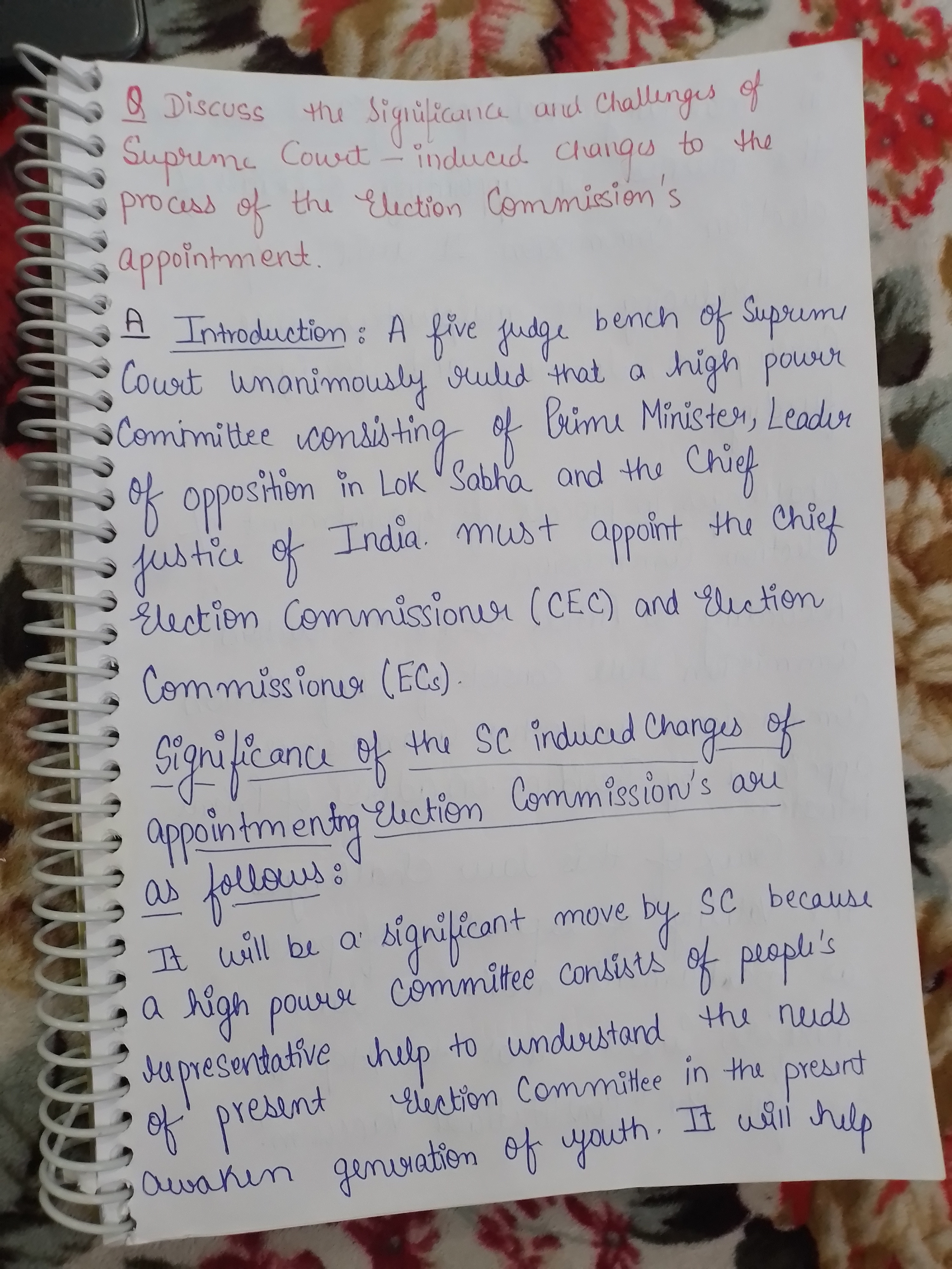 1) Discuss the significance and challenges of Supreme Court-induced changes to the process of the Election Commission’s appointment.