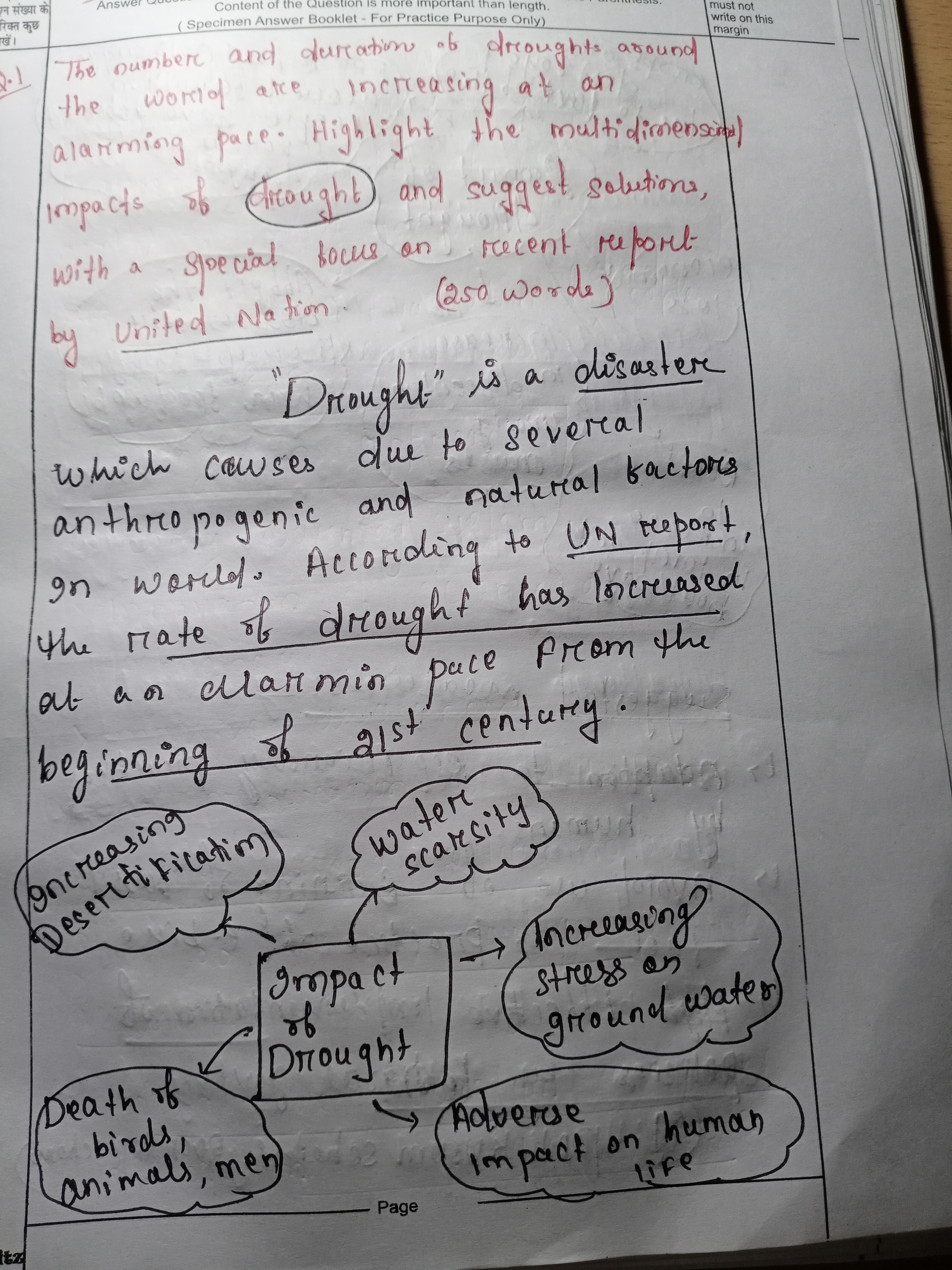 1. You should have started with the definition of drought. And very briefly describe the reasons for increased frequency of droughts. Do mention relevant data from the UN Report.