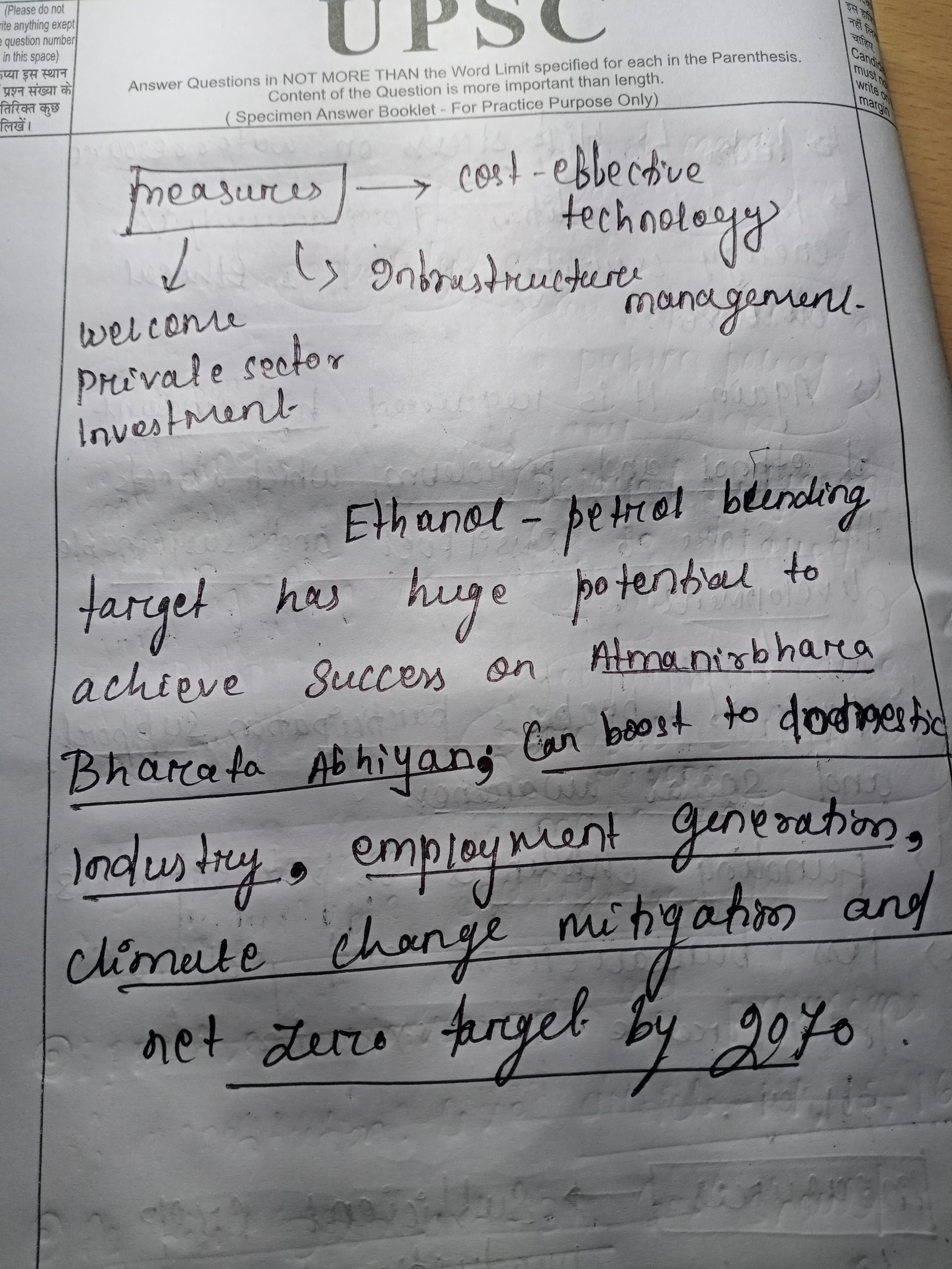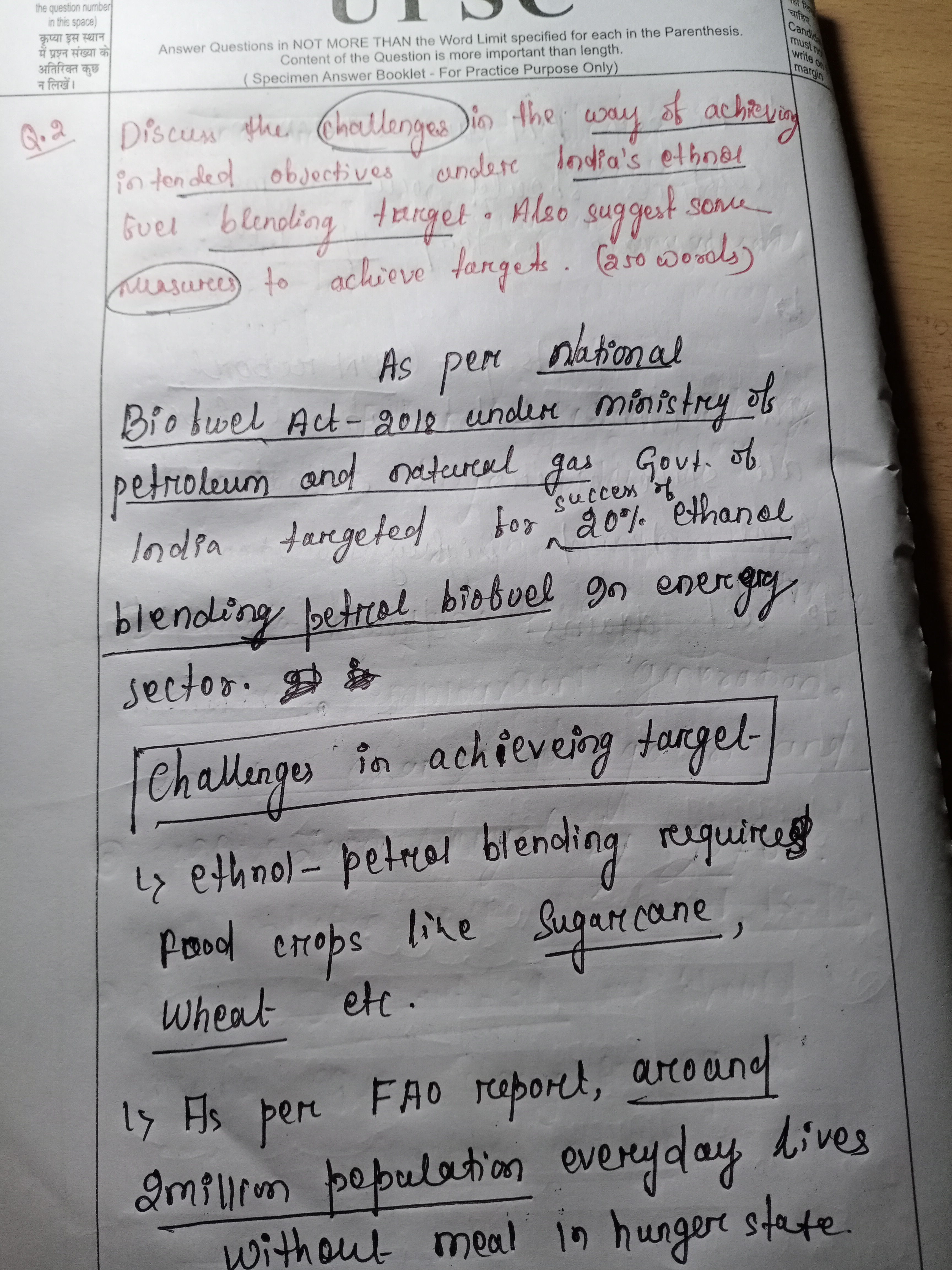 2.) Discuss the challenges in the way of achieving intended objectives under India’s ethanol fuel blending targets. Also, suggest some measures to achieve targets.