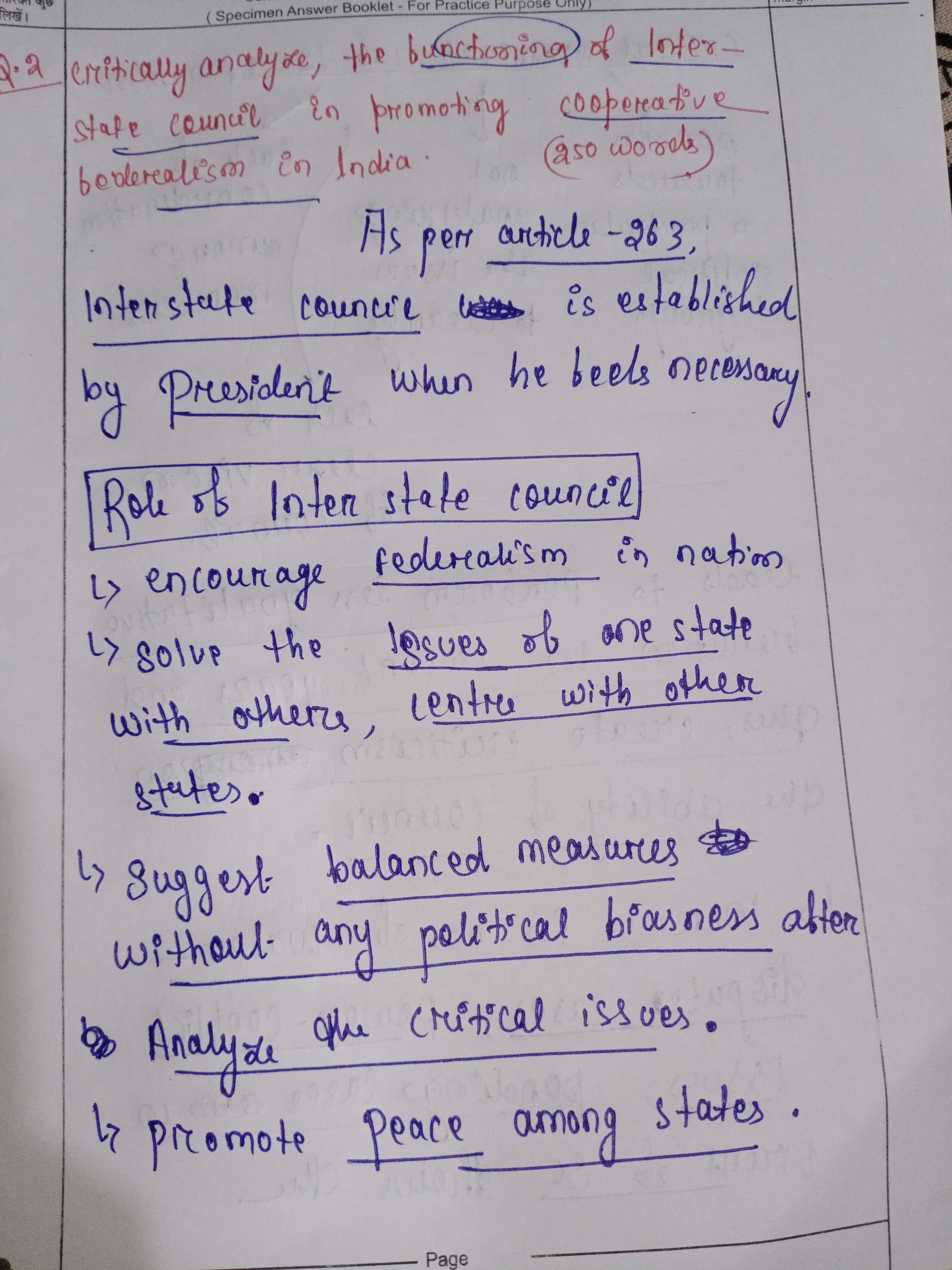 2.) Critically analyze the functioning of the Inter-State Council in promoting cooperative federalism in India.