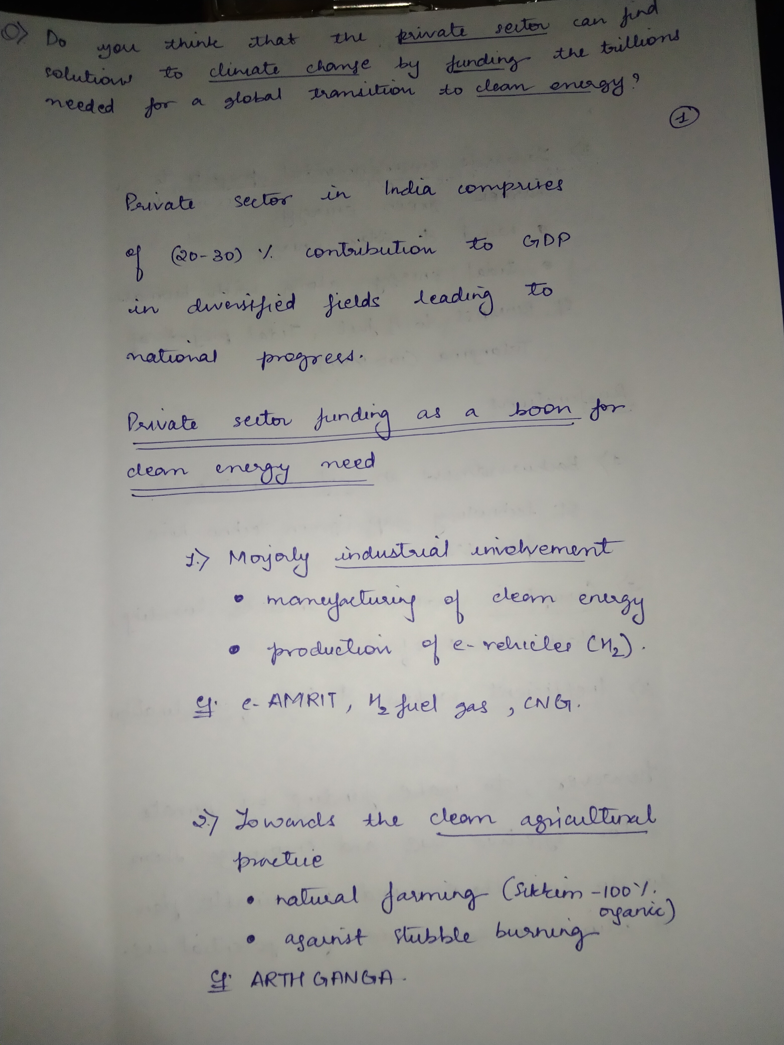 1) Do you think that the private sector can find solutions to climate change by funding the trillions needed for a global transition to clean energy?