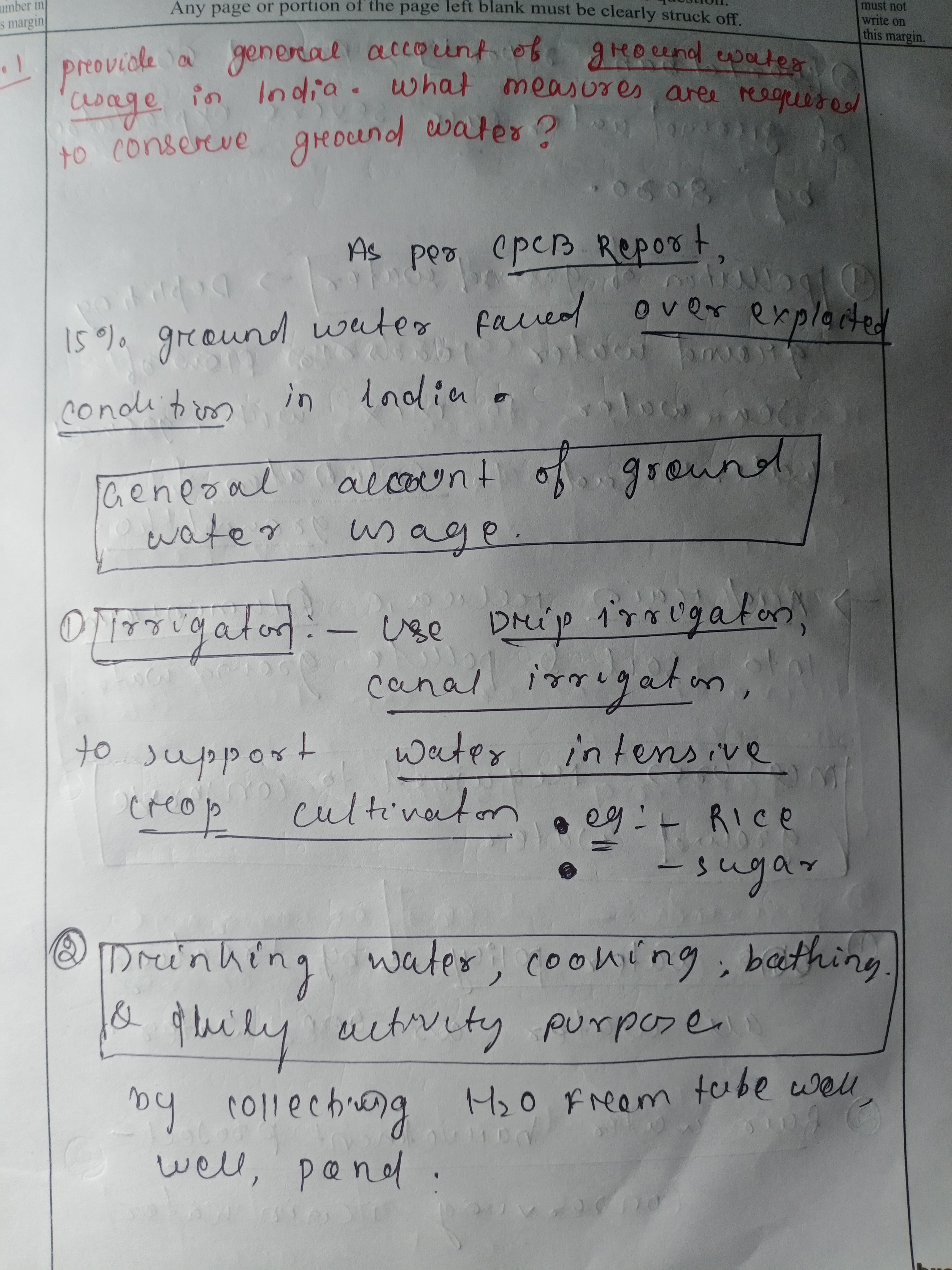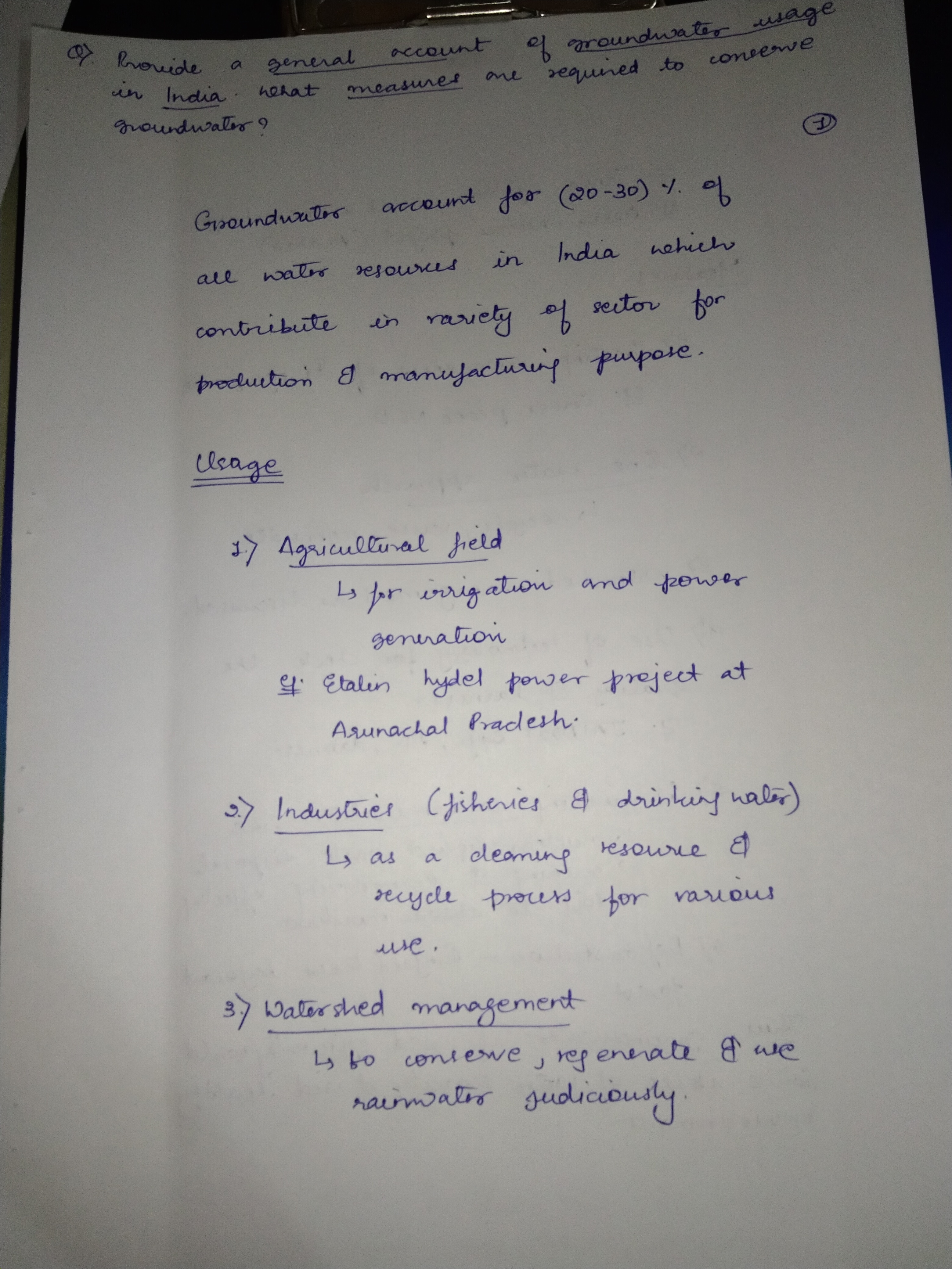 2) Provide a general account of groundwater usage in India. What measures are required to conserve groundwater?