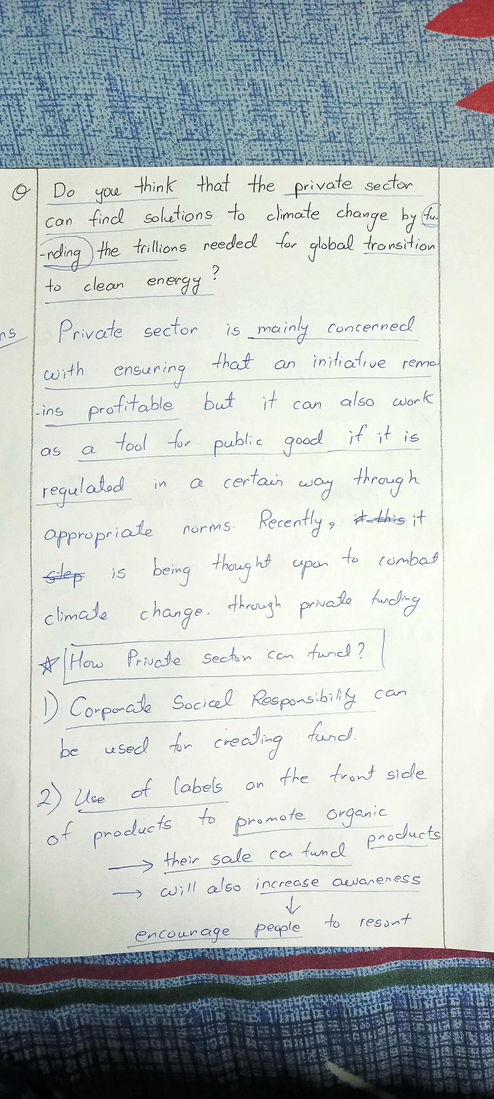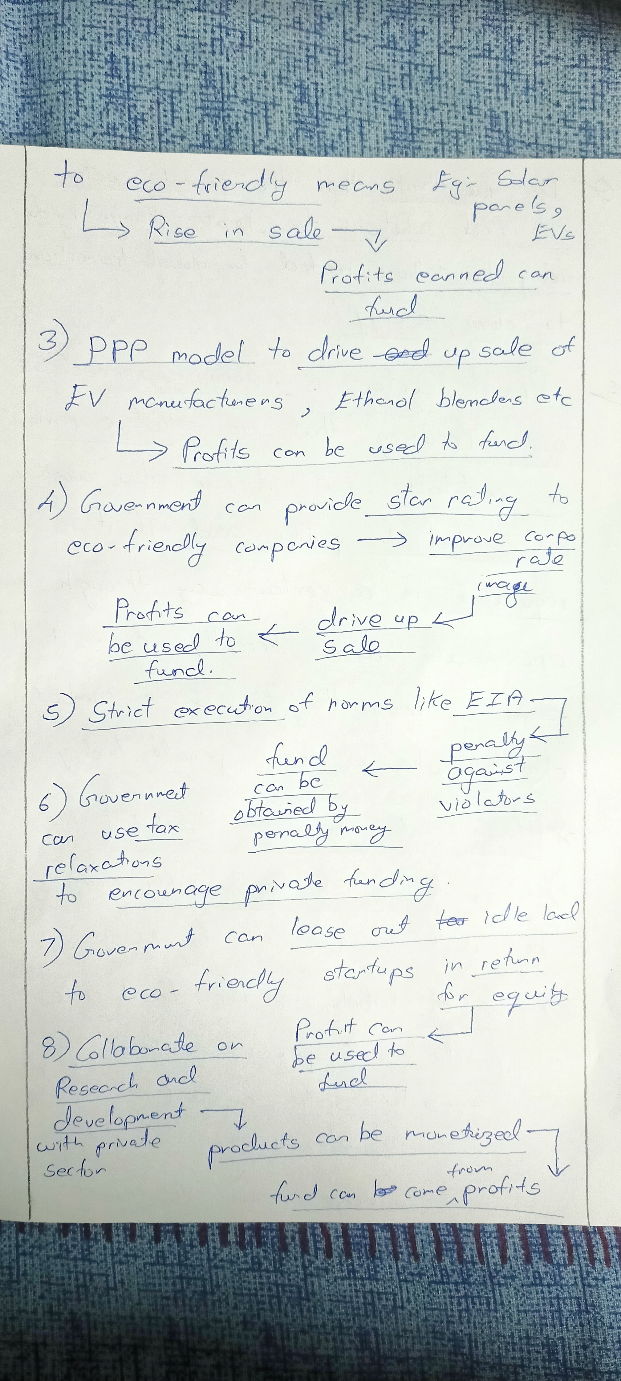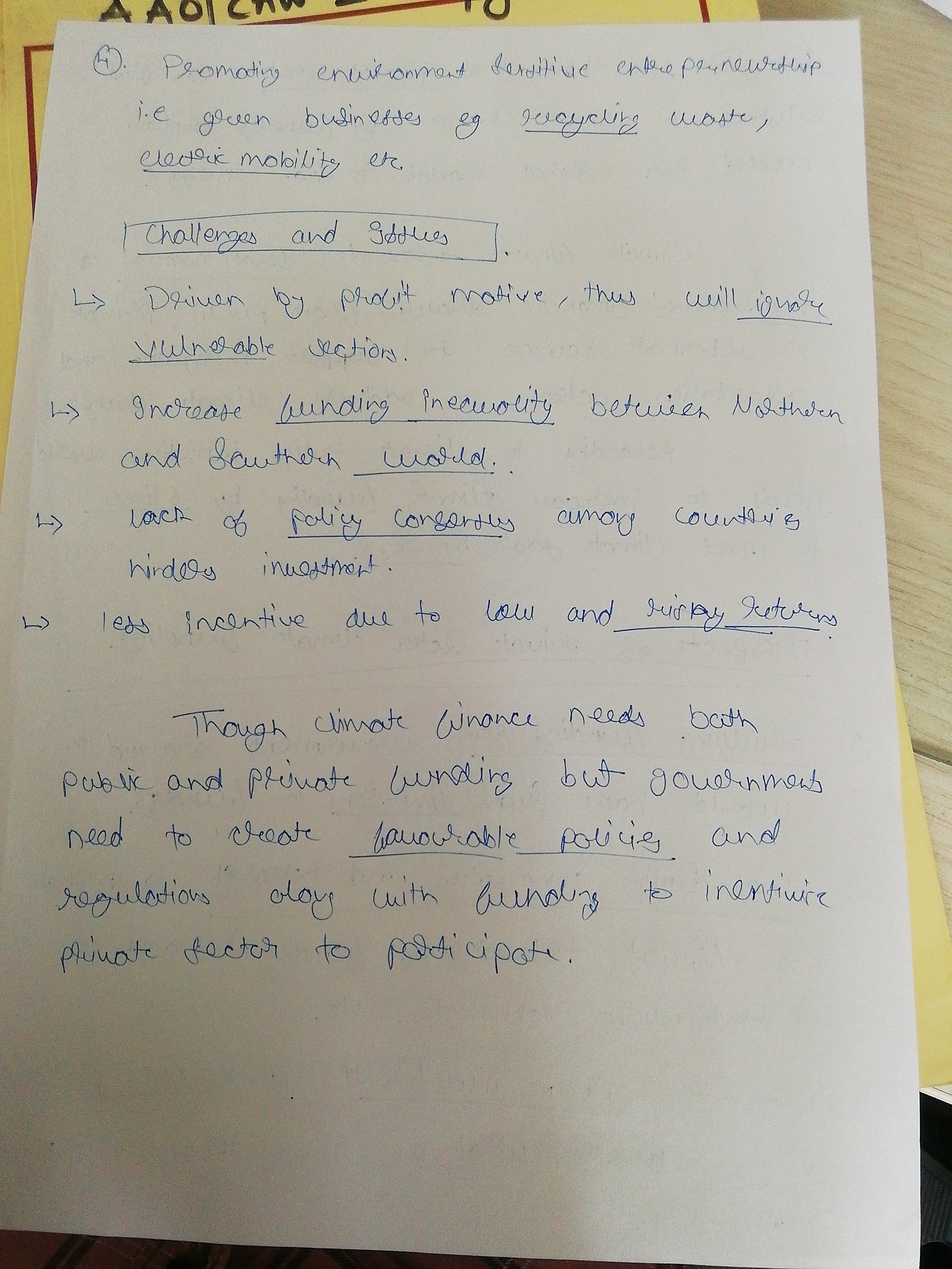 You need to answer specifically in the context of climate finance and clean energy transition etc. So measures like product labelling, EIA are not relevant here.
