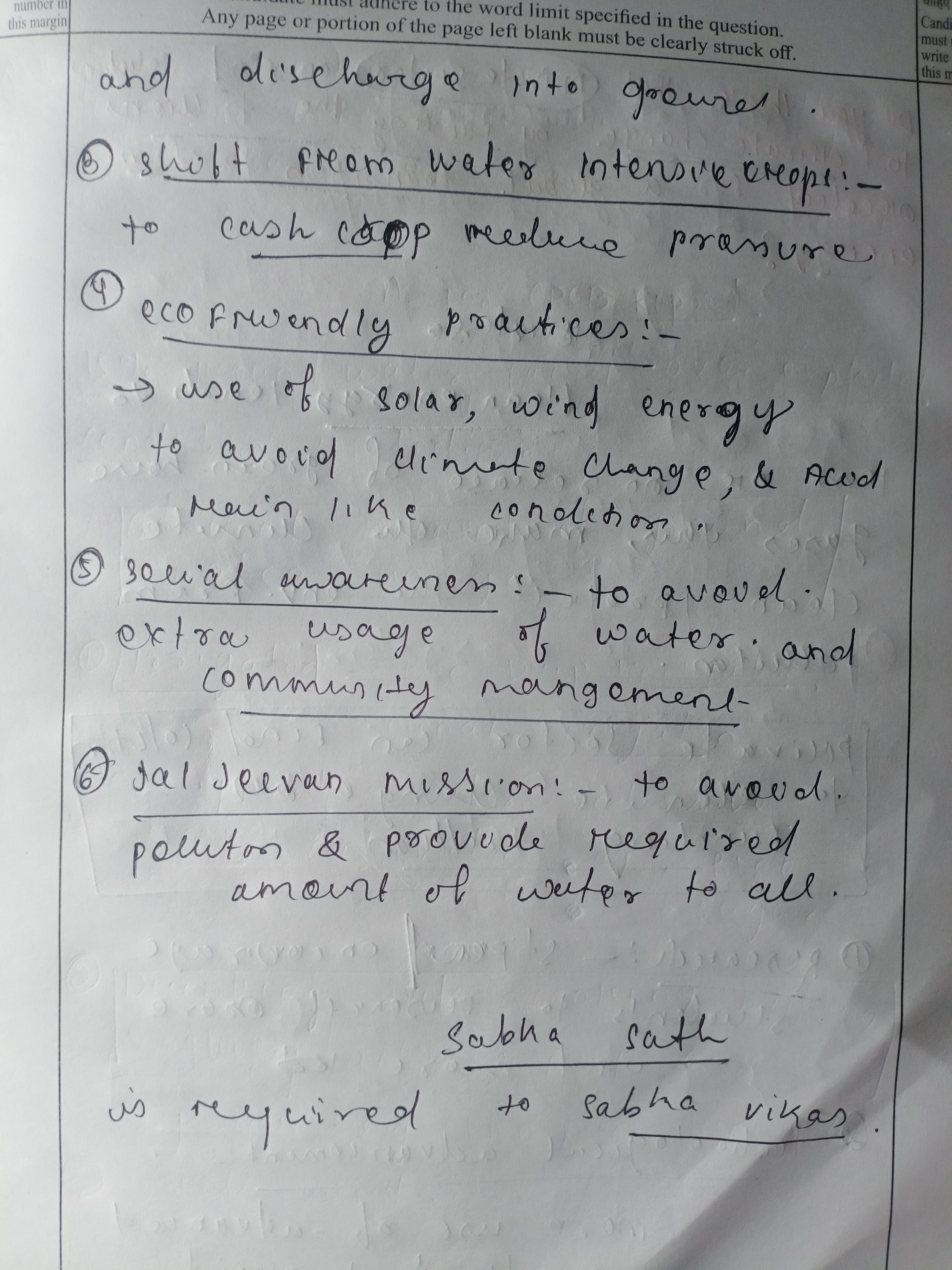 In conservation measures, highlight judicious use in agriculture (like precision farming, fertigation and correct cropping pattern), Legislative measures (like Water Policy and Water Extraction Law) etc.