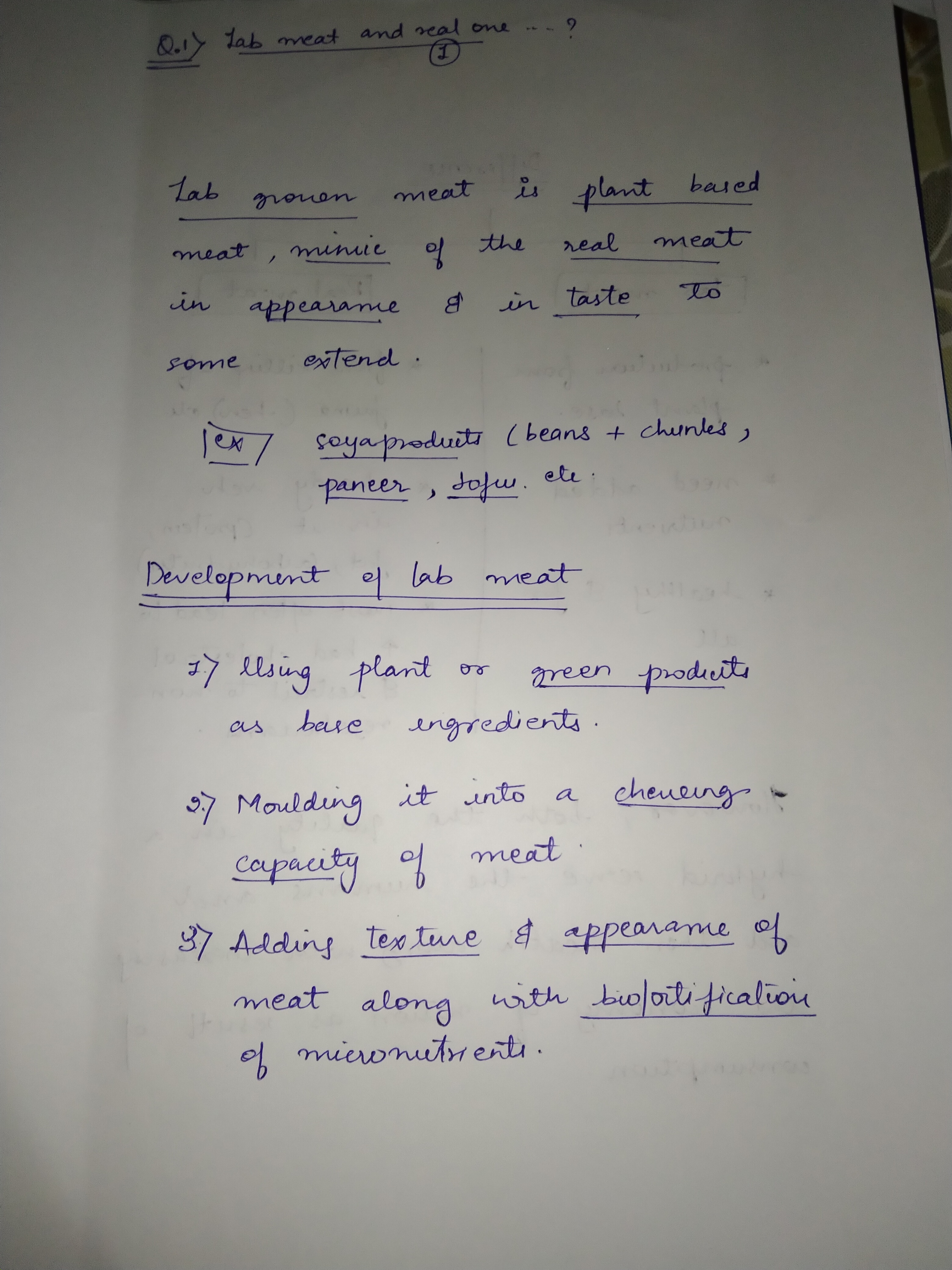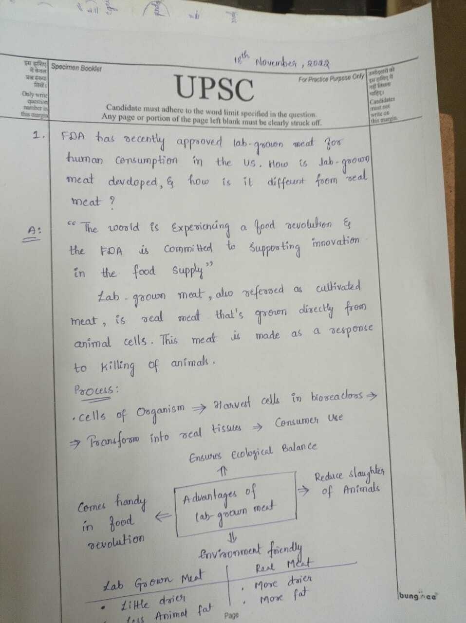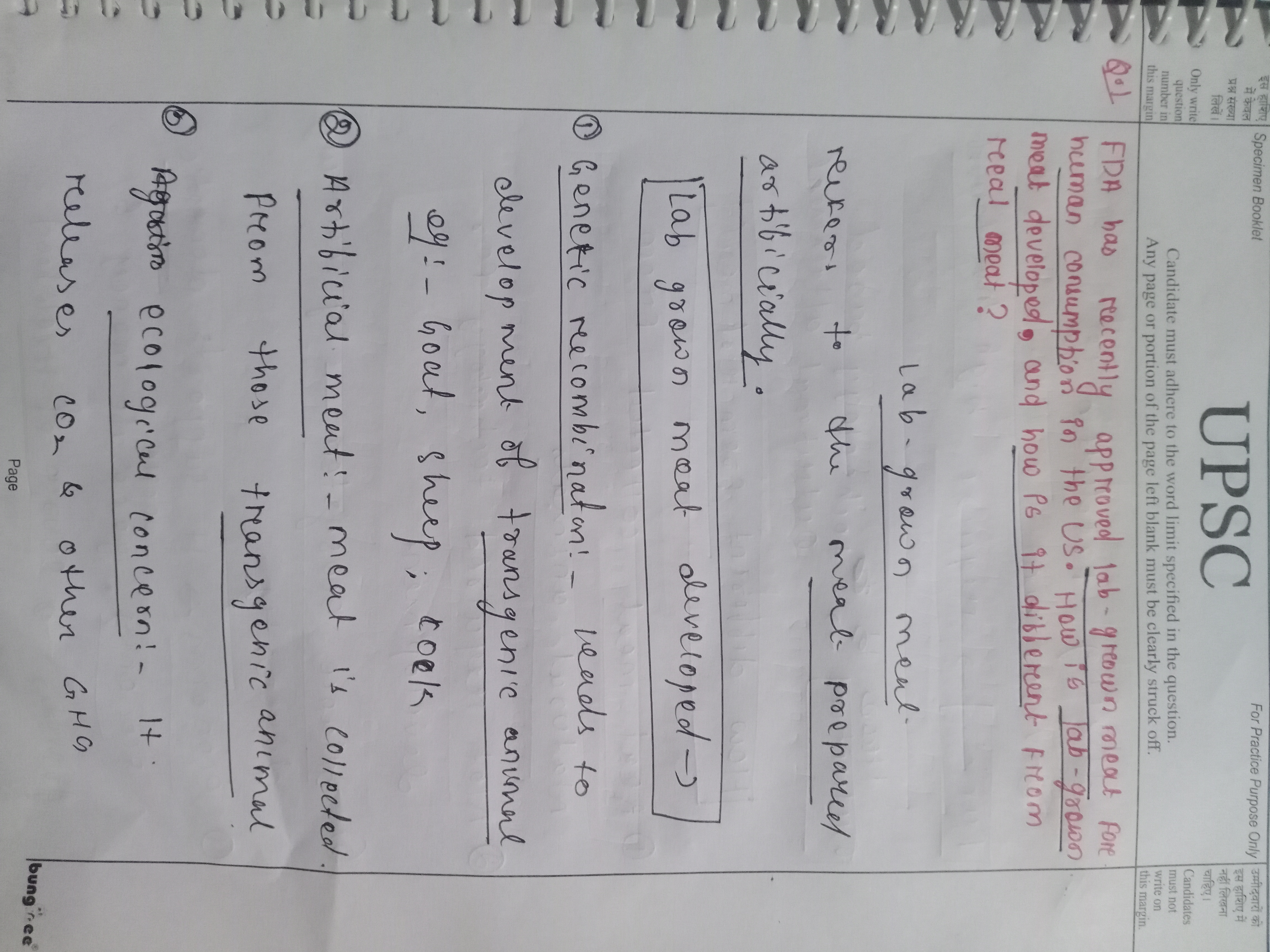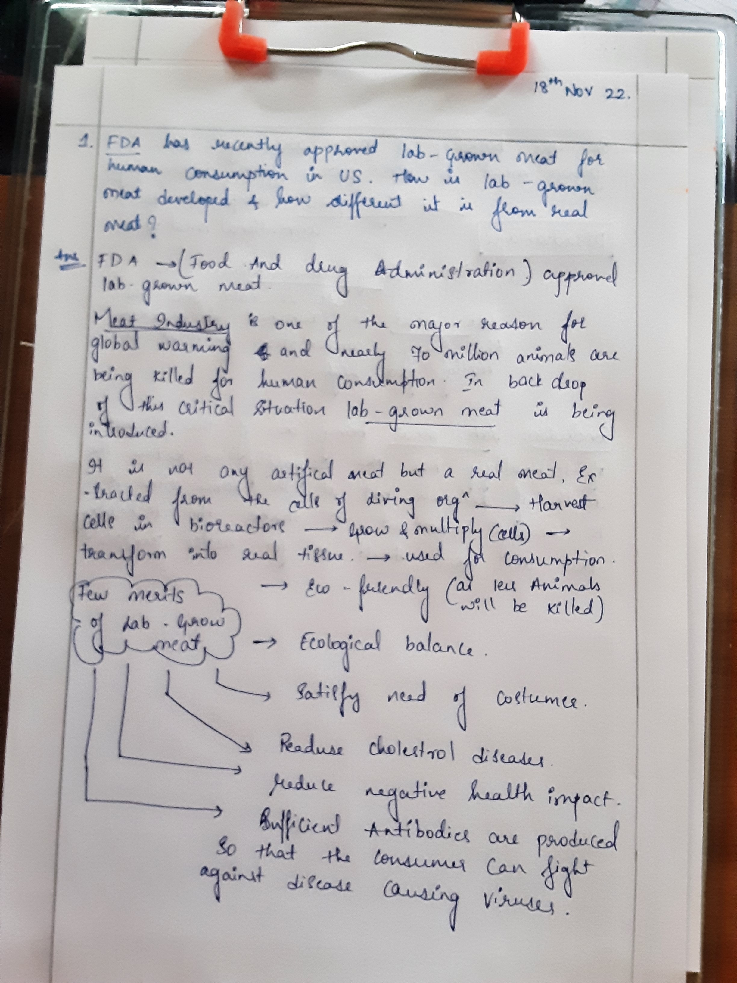 1) FDA has recently approved lab-grown meat for human consumption in the US. How is lab-grown meat developed, and how is it different from real meat?