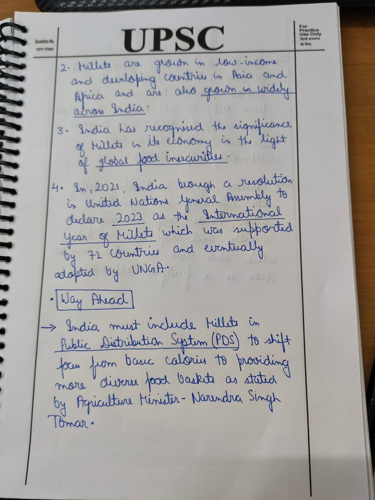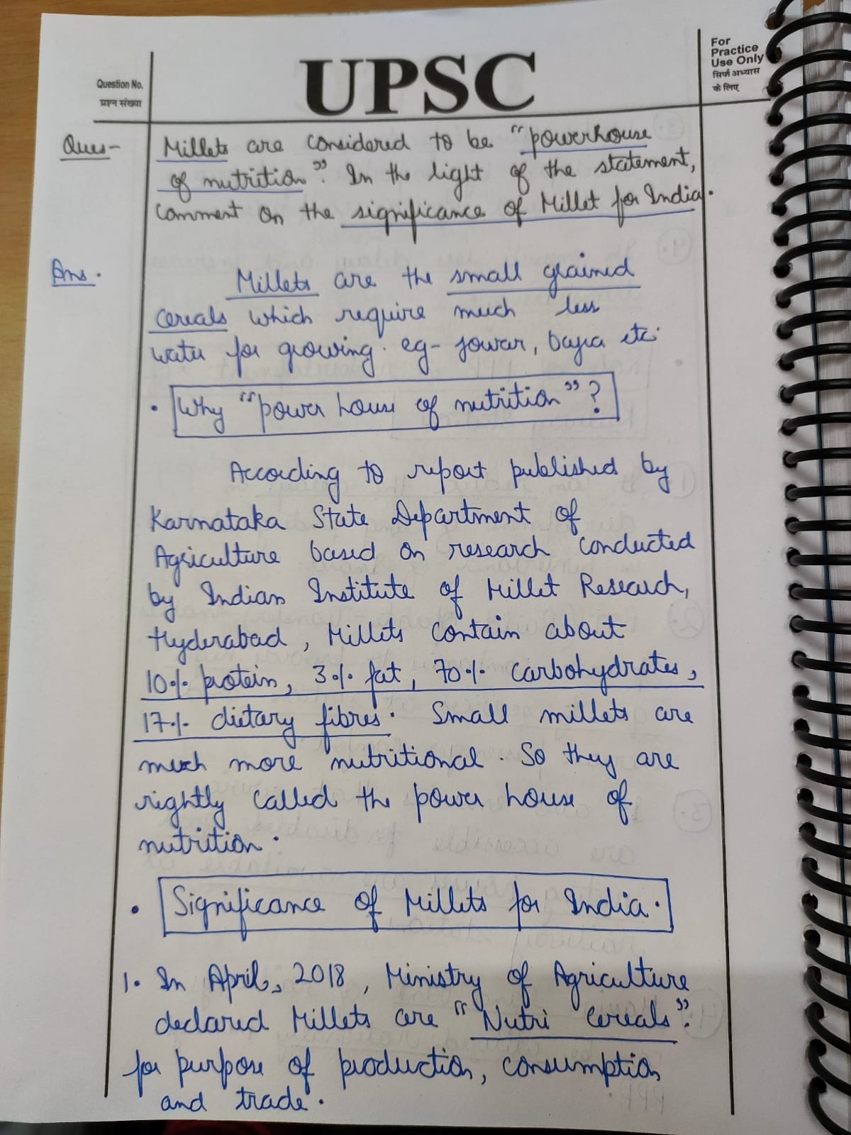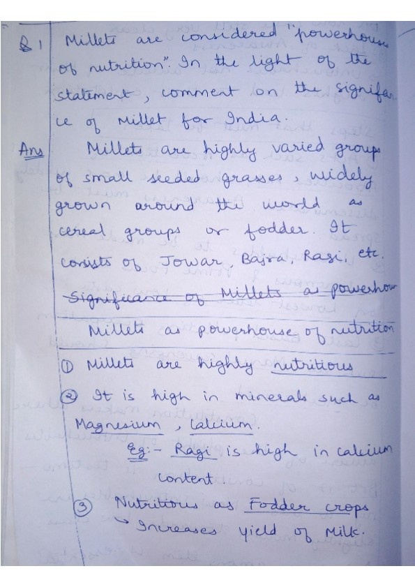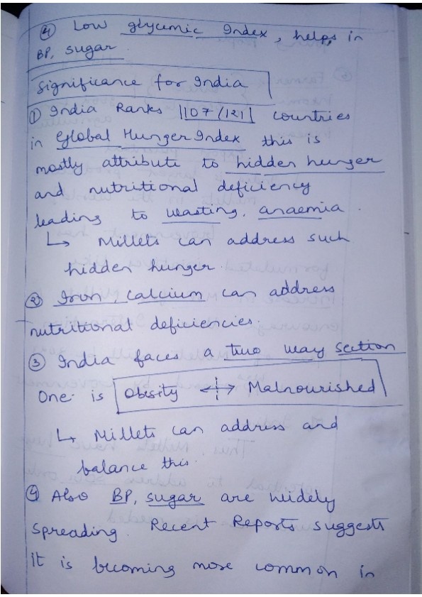 Millets are considered to be “powerhouses of nutrition”. In the light of the statement, comment on the significance of the Millet for India.