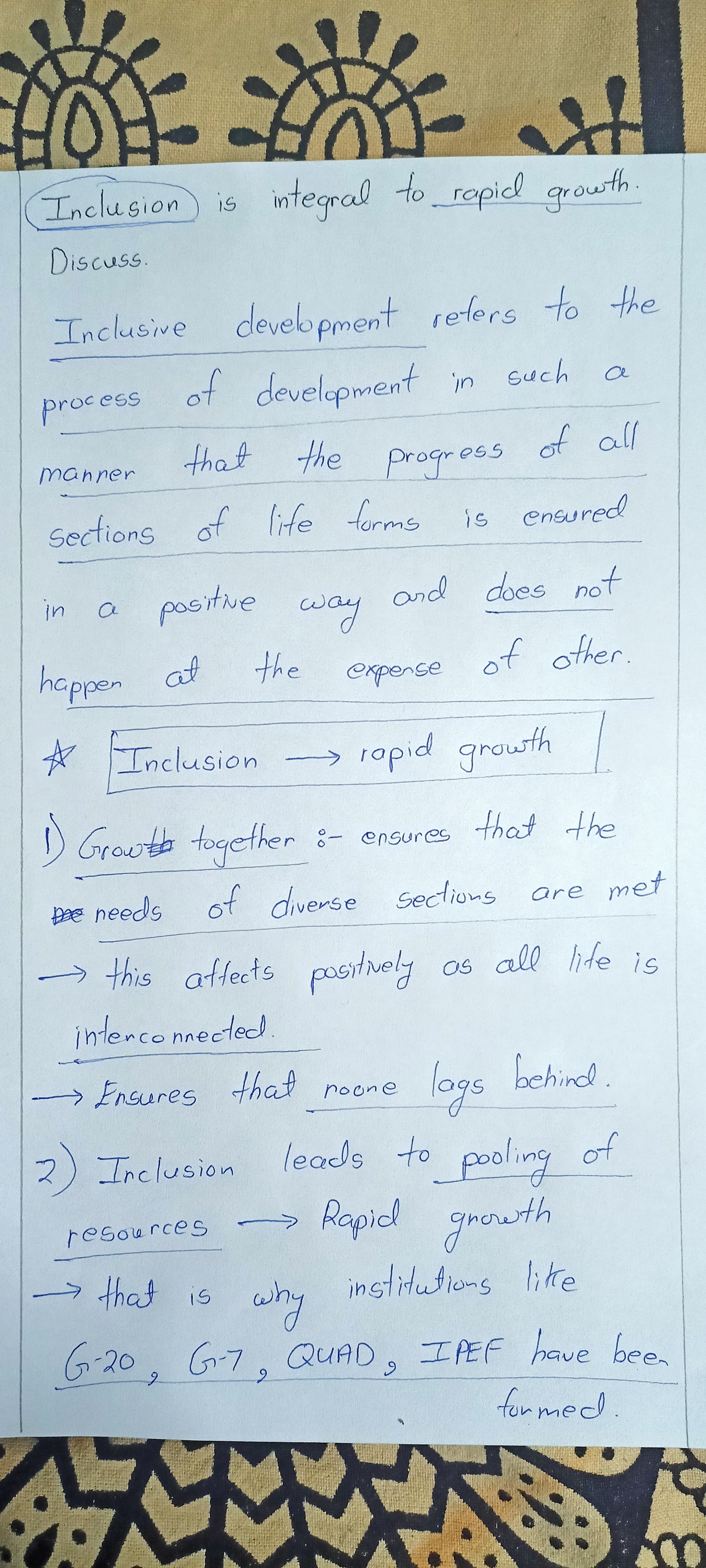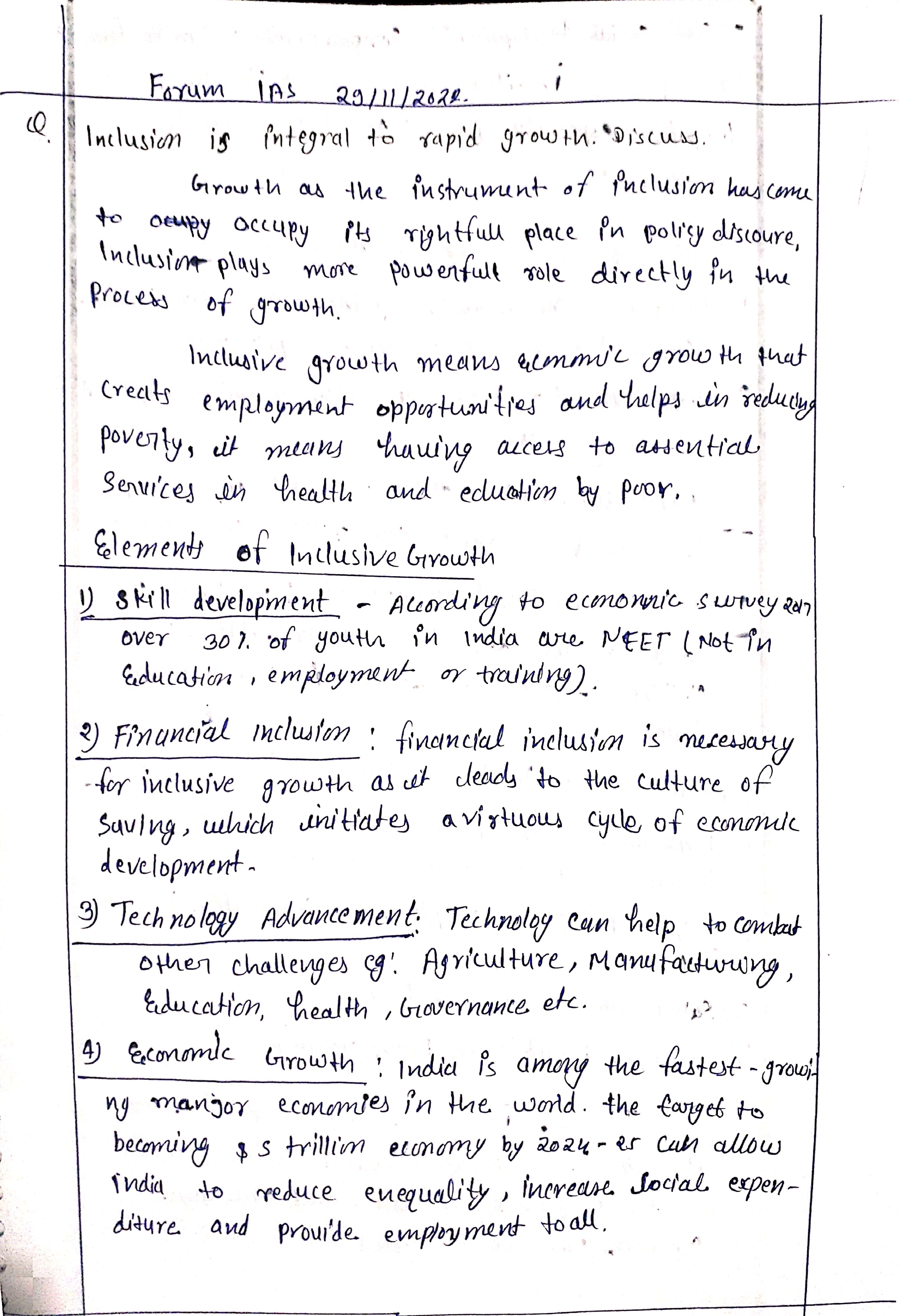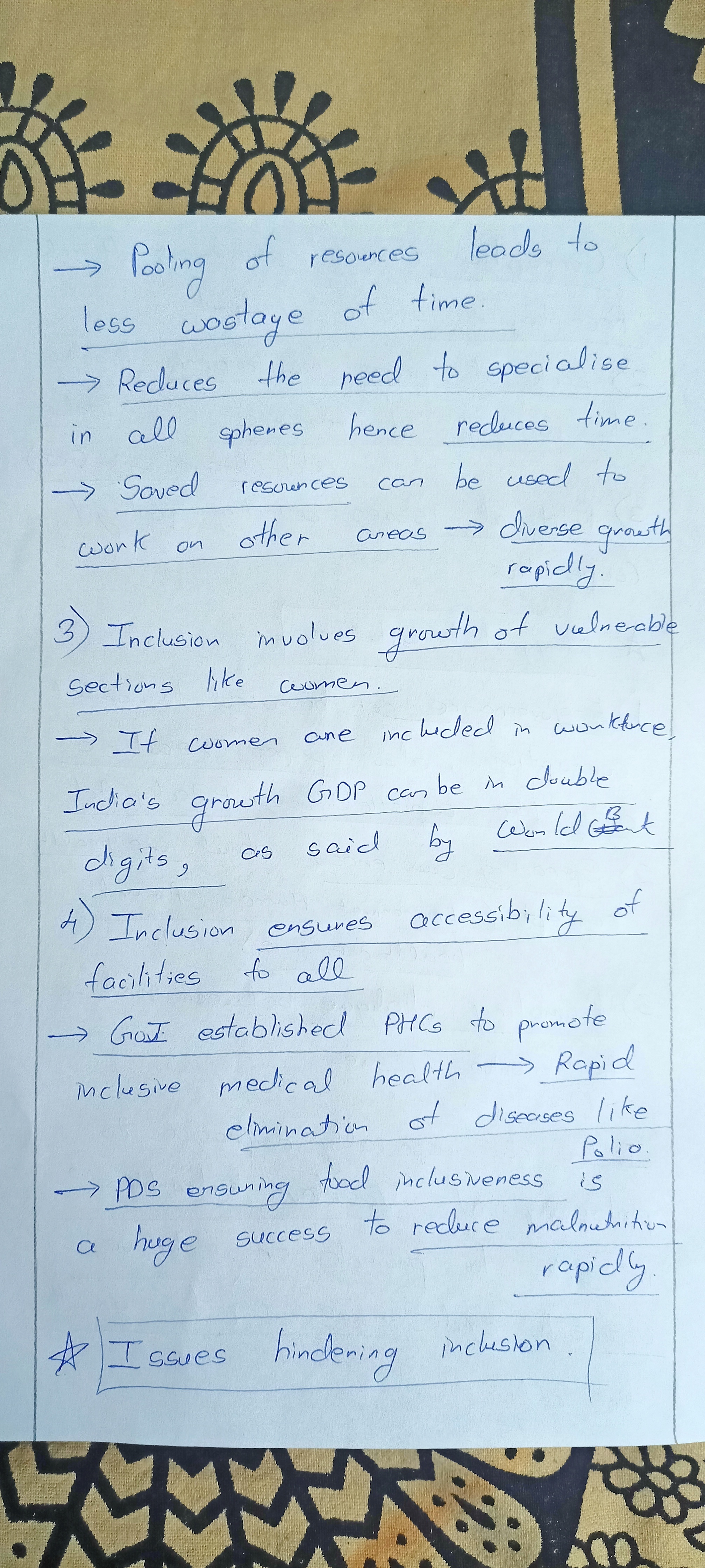 You can improve on the definition. Also cover factors that are hampering inclusive growth in India. Factors like skilling/education improve labour productivity which further improves growth creating a virtuous cycle. Govt. should focus on sectors that can promote inclusive growth.