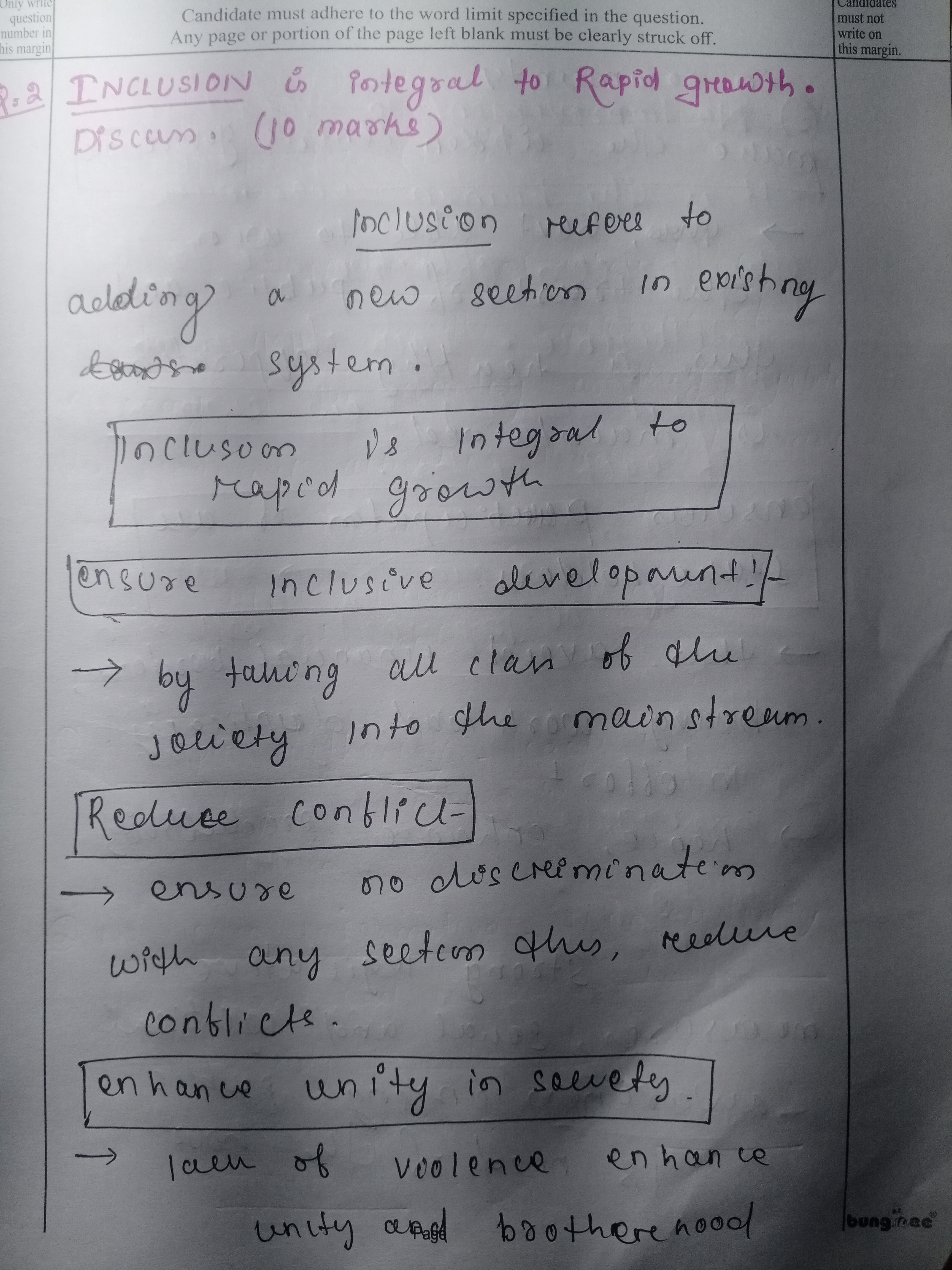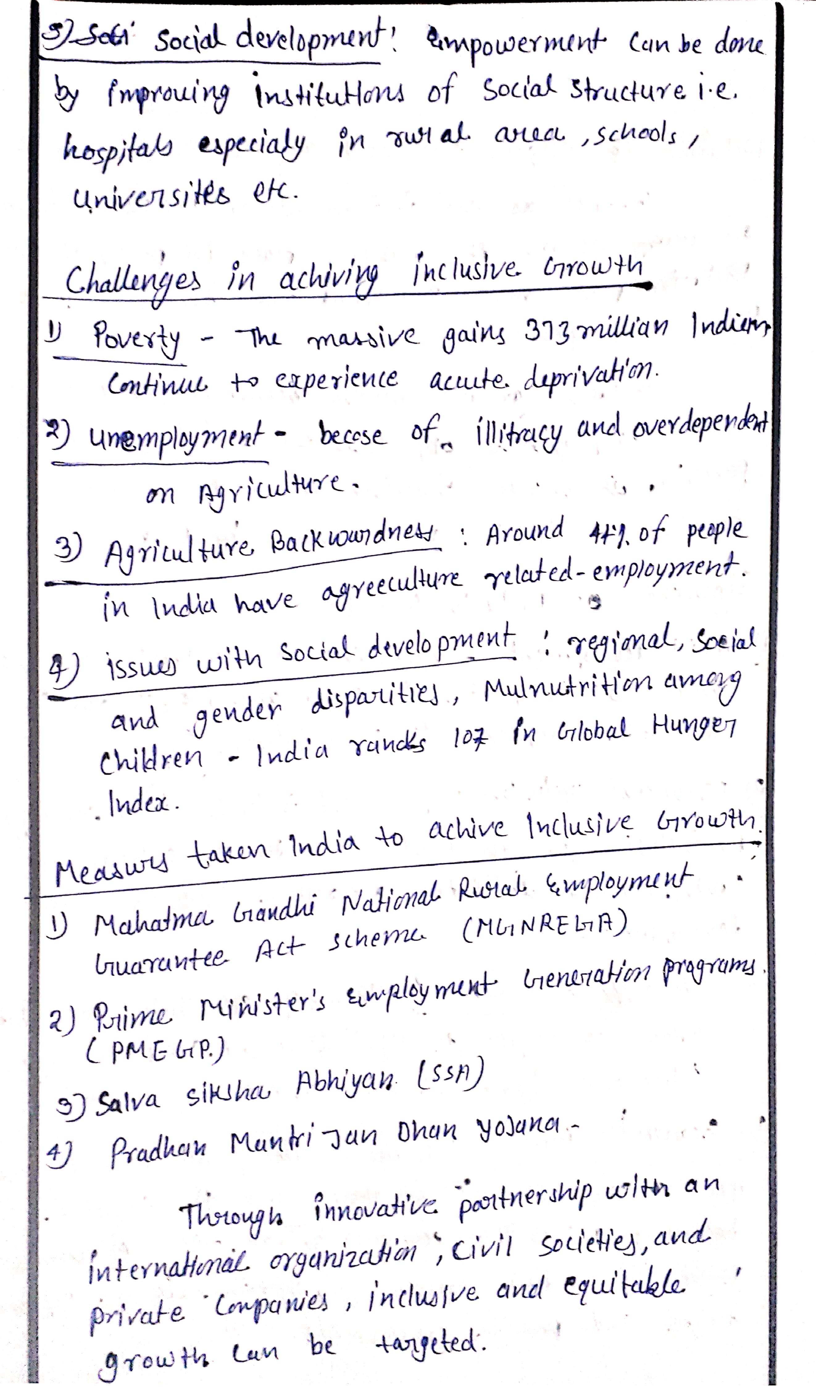 You can also highlight the aspect that lack of inclusive growth means poverty, which limits labour productivity (due to lack of education, skills) and hampers future growth prospects. Government has to focus on growth in labor-intensive sectors to promote inclusive growth.