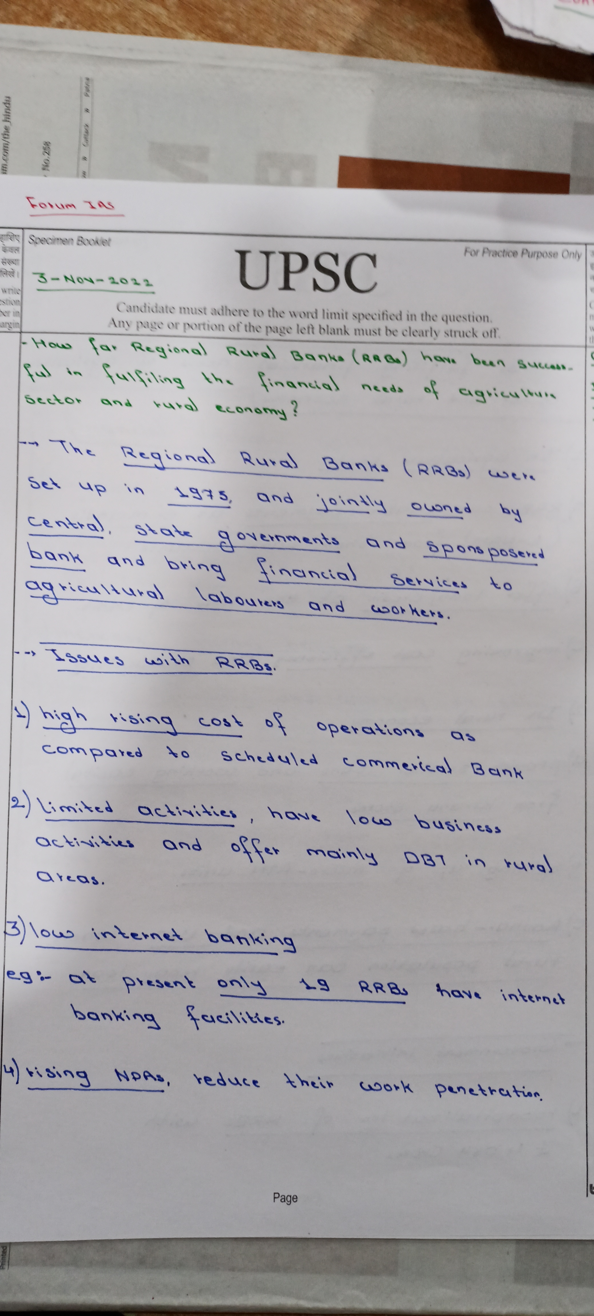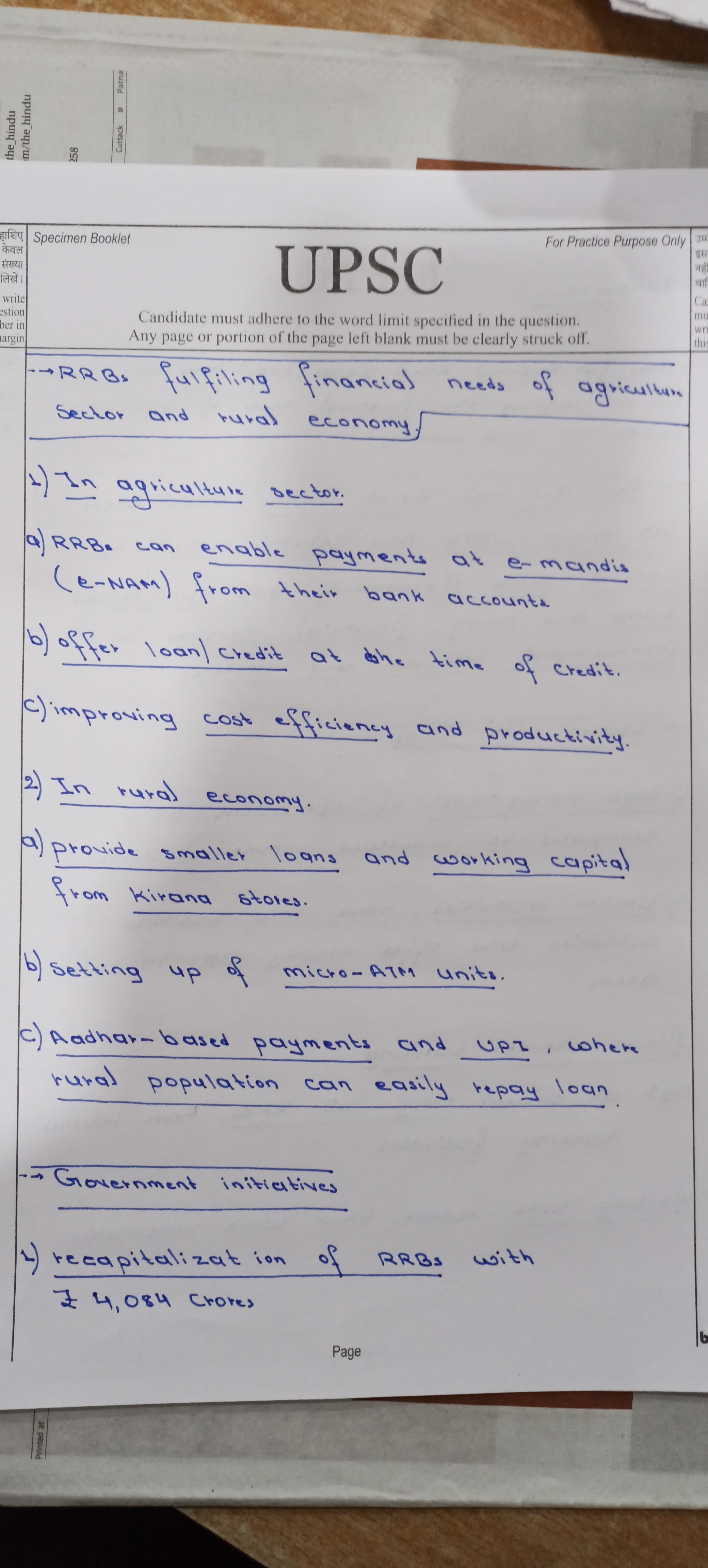 Looks great! Also highlight lack of profitability. Also more farmers borrow from commercial banks instead of RRBs, so they have not been able to fulfil the mandate. In second section, also add RRBs have the potential to reduce dependence on informal channels of money lending, which typically have higher interest rates. Rest is awesome!