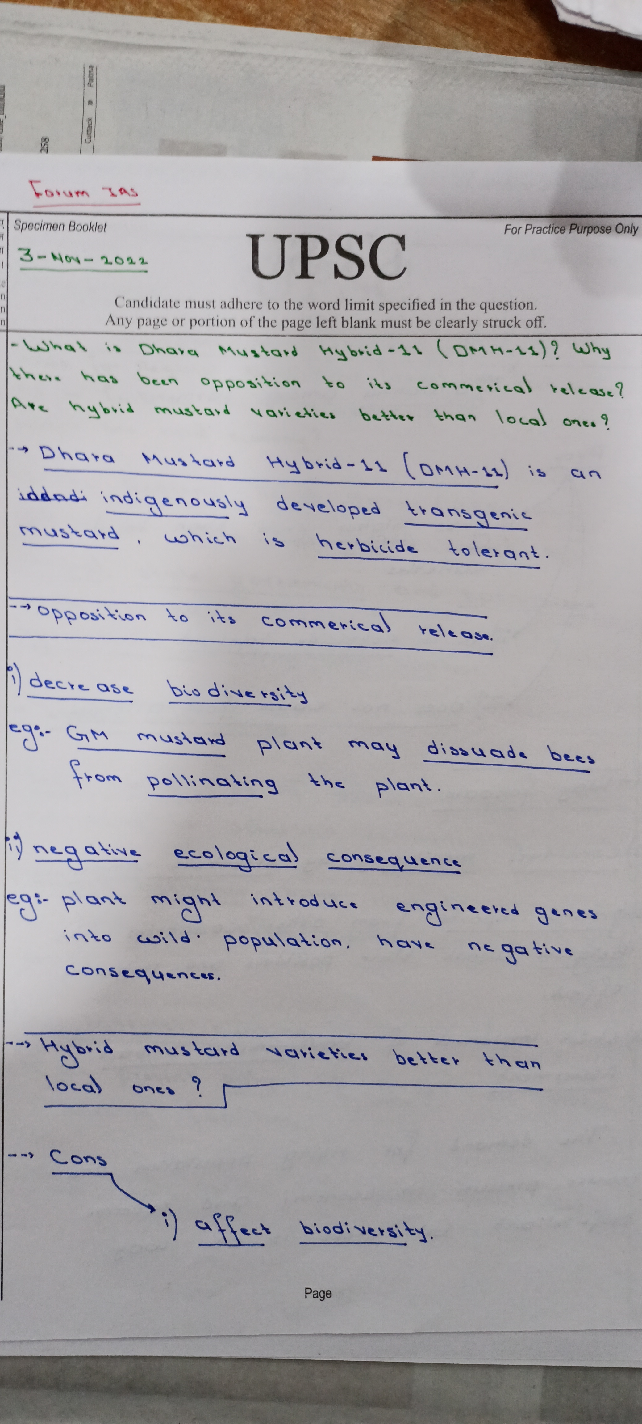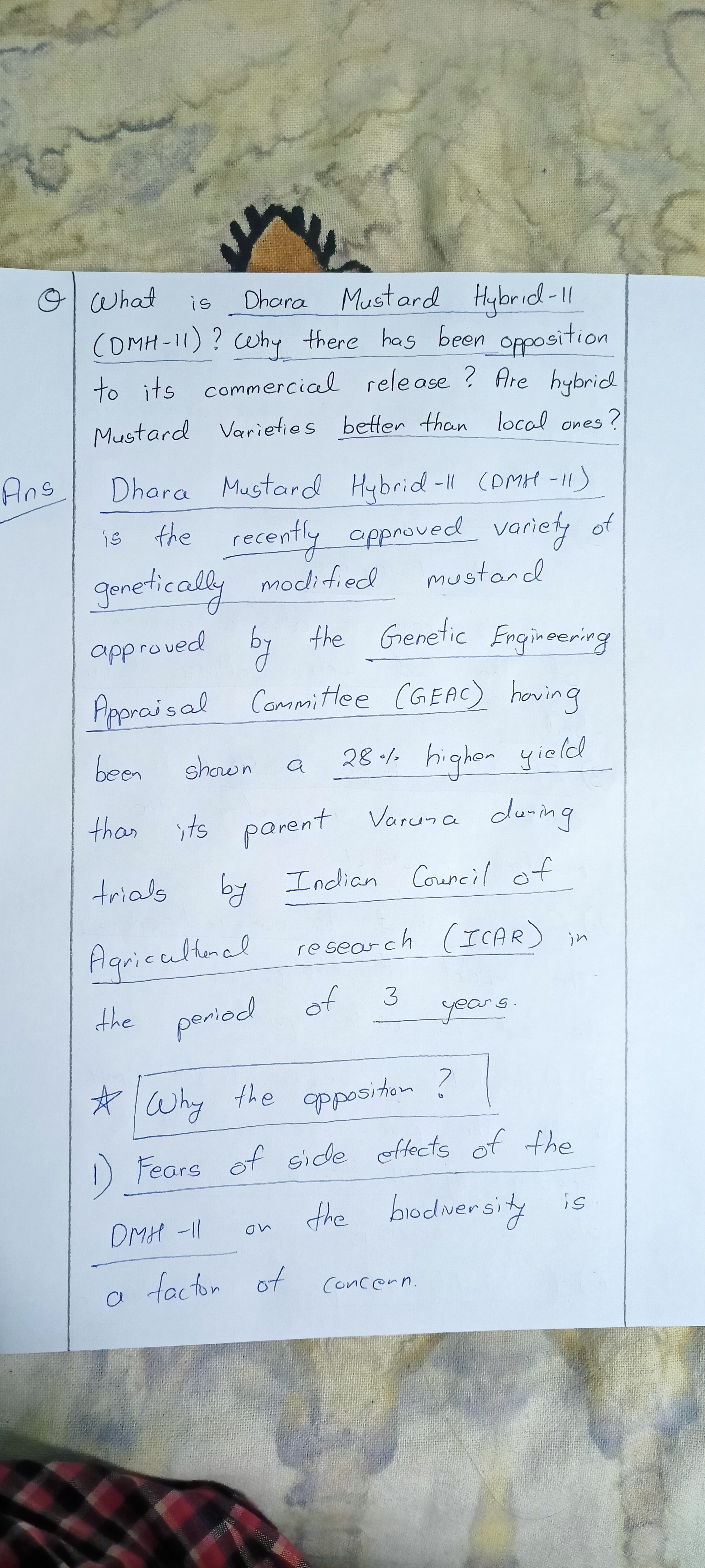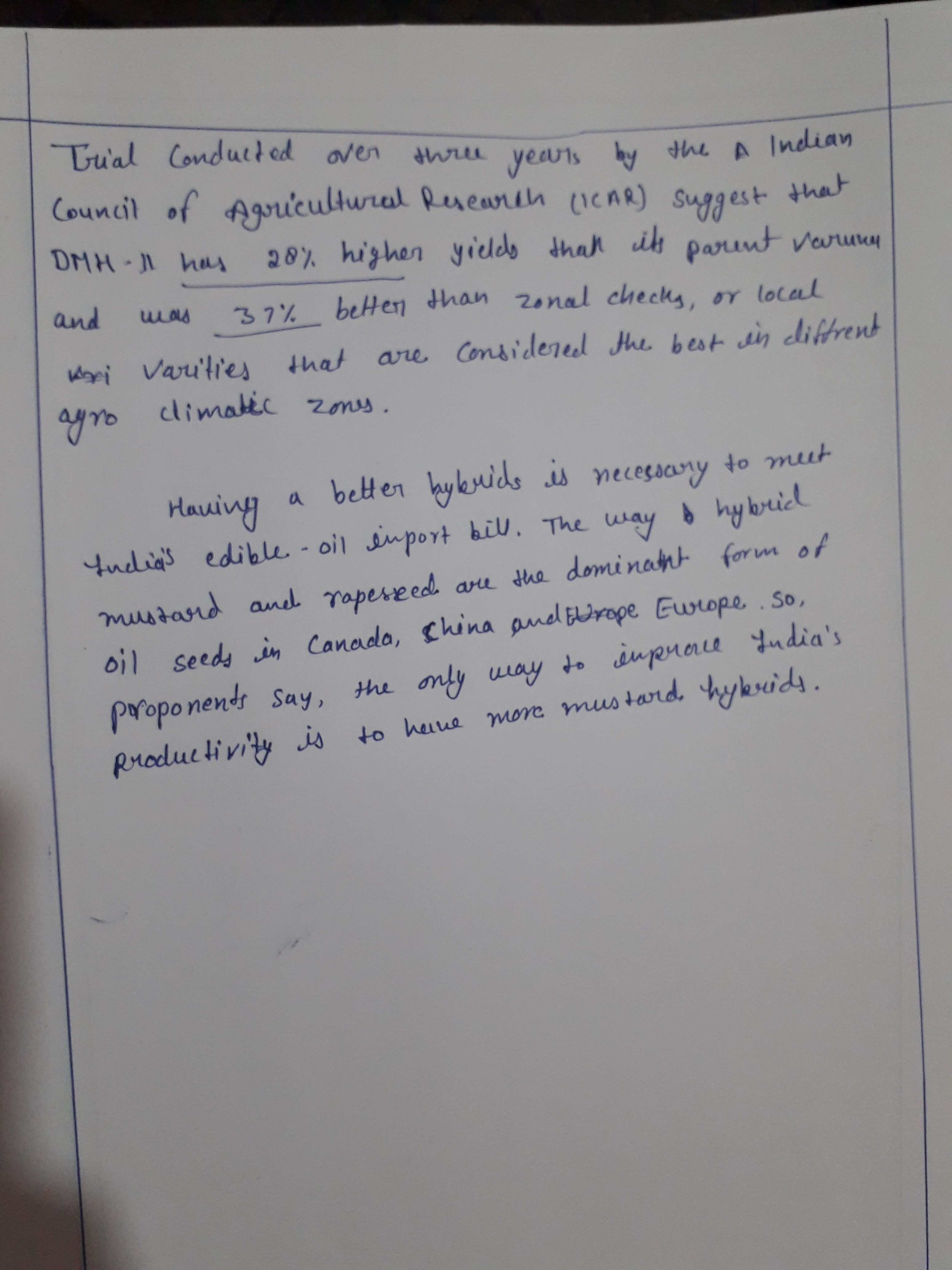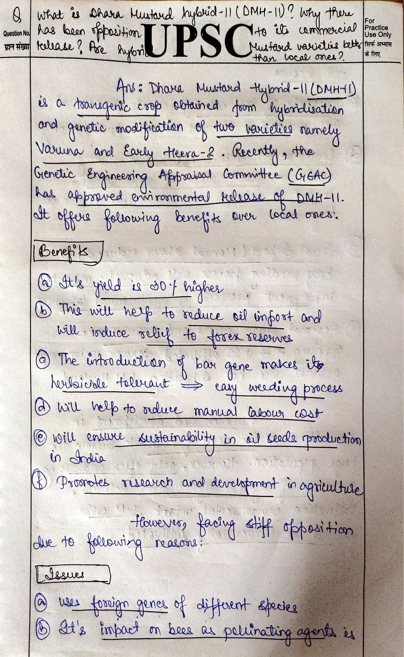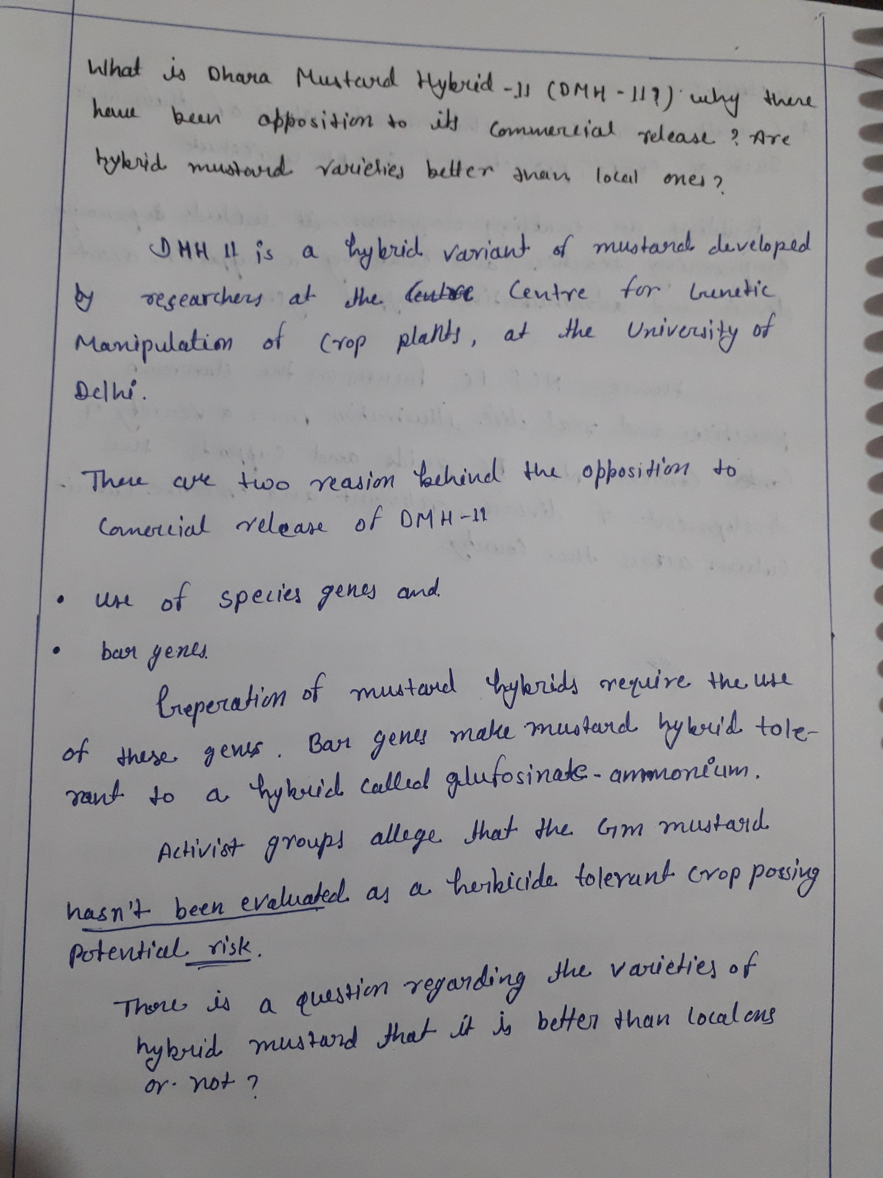 2) What is Dhara Mustard Hybrid-11 (DMH-11? Why there has been opposition to its commercial release? Are hybrid mustard varieties better than local ones?