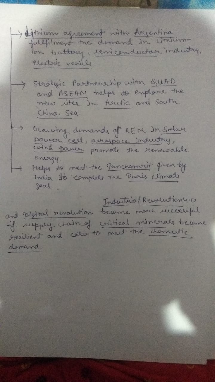 Similarly in suggestions, provide arguments related to enhancing domestic production (India has 5th largest reserves of Rare earths). For those points, read this article.