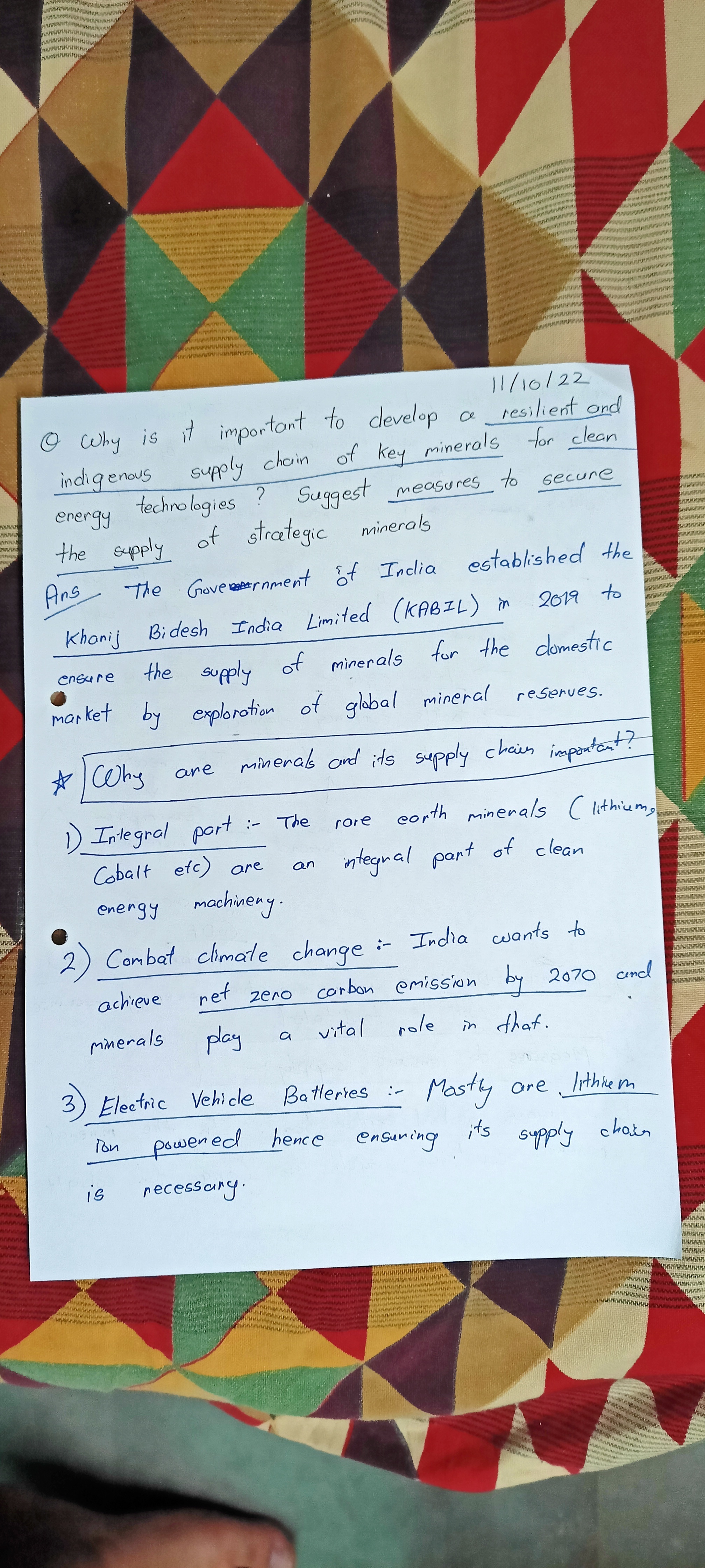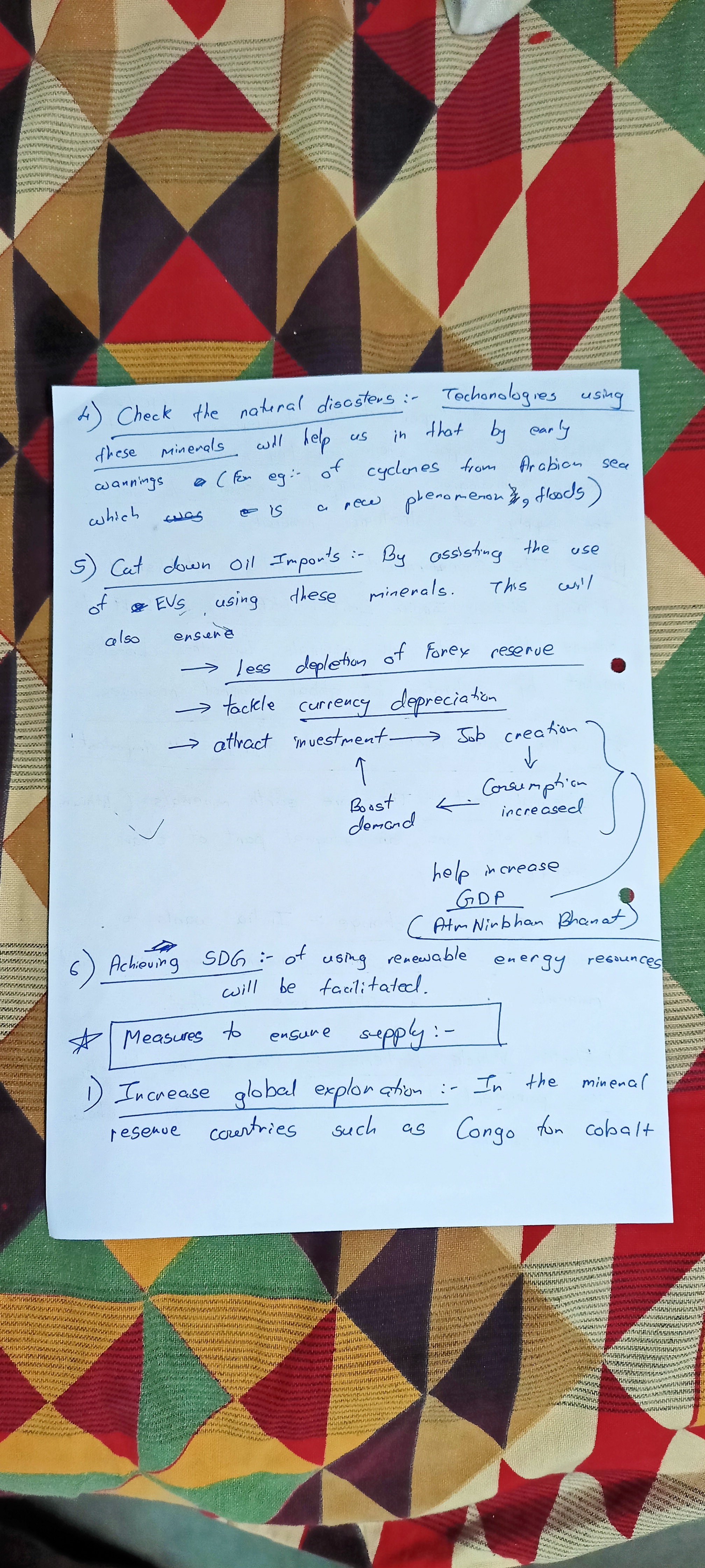 Good answer! You have a tendency to put some irrelevant points in the answer. It doesn’t serve the purpose, wastes time and increases word limit. e.g., in the first half, simply mention these elements are crucial for green energy transition (wind mills, batteries etc.). Lack of domestic production of these elements will create dependence on imports just like oil. Other points like natural disasters are not relevant here.