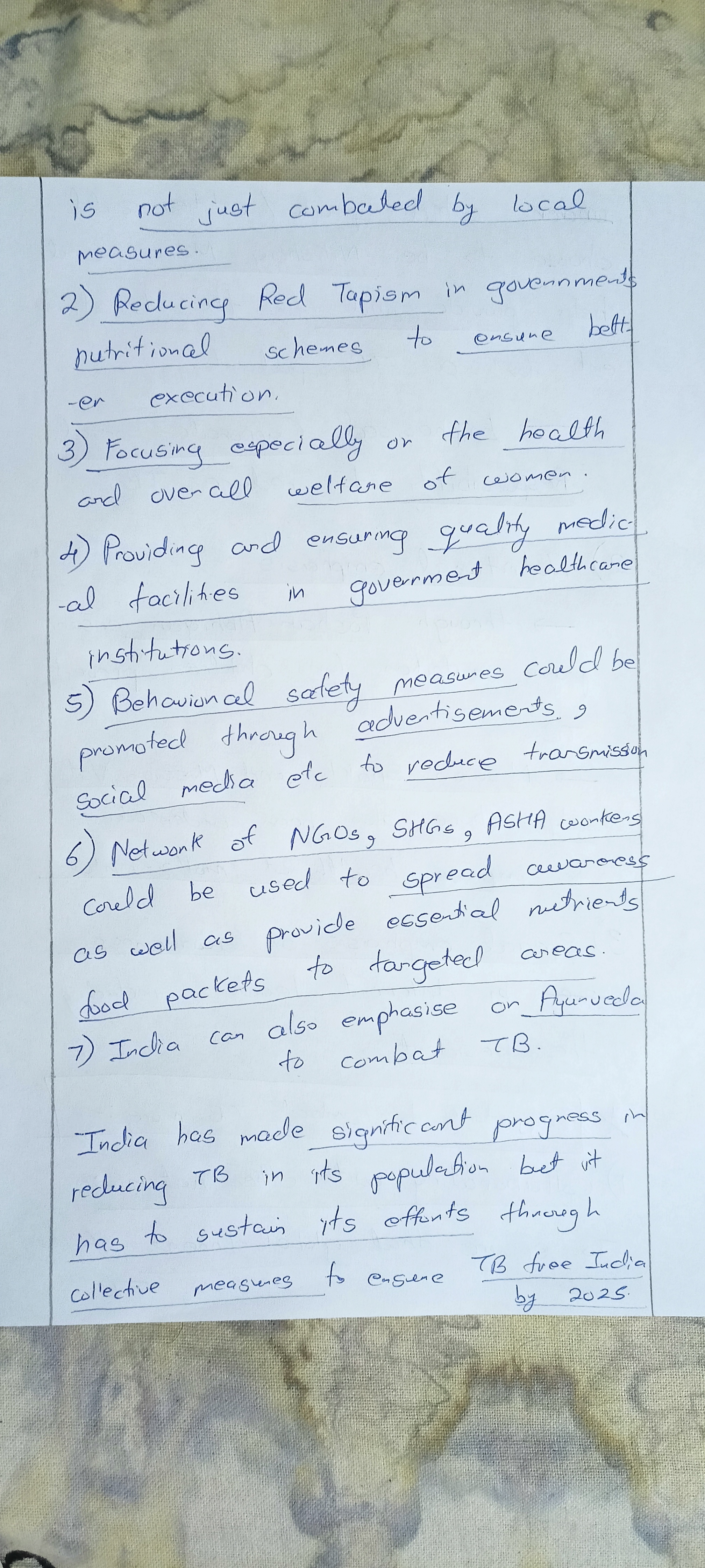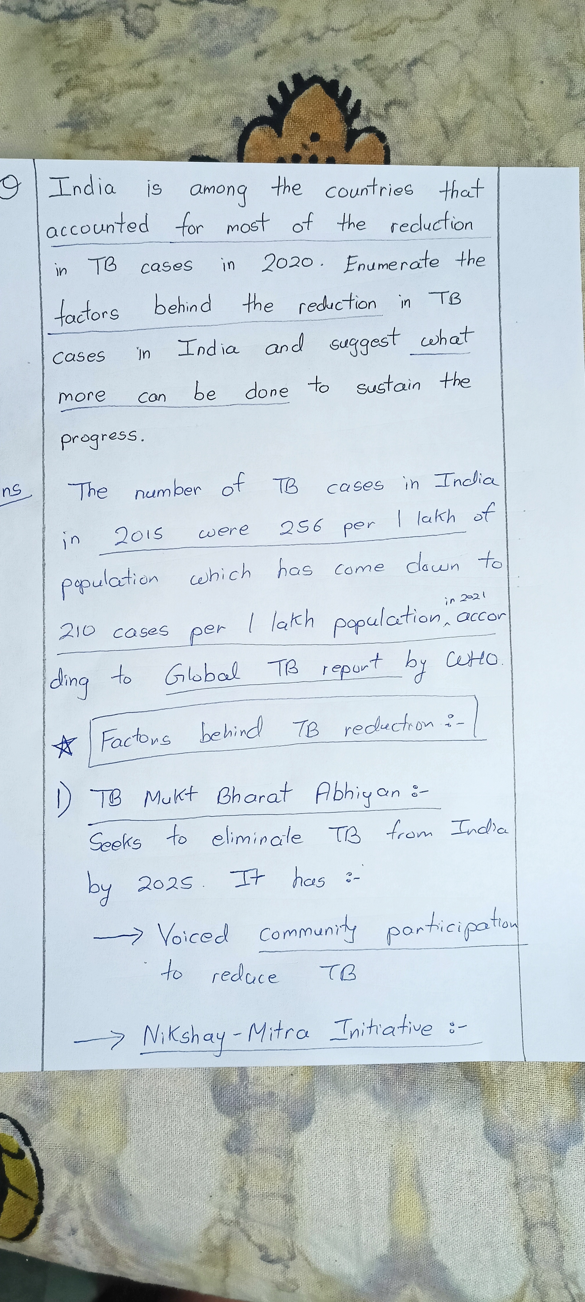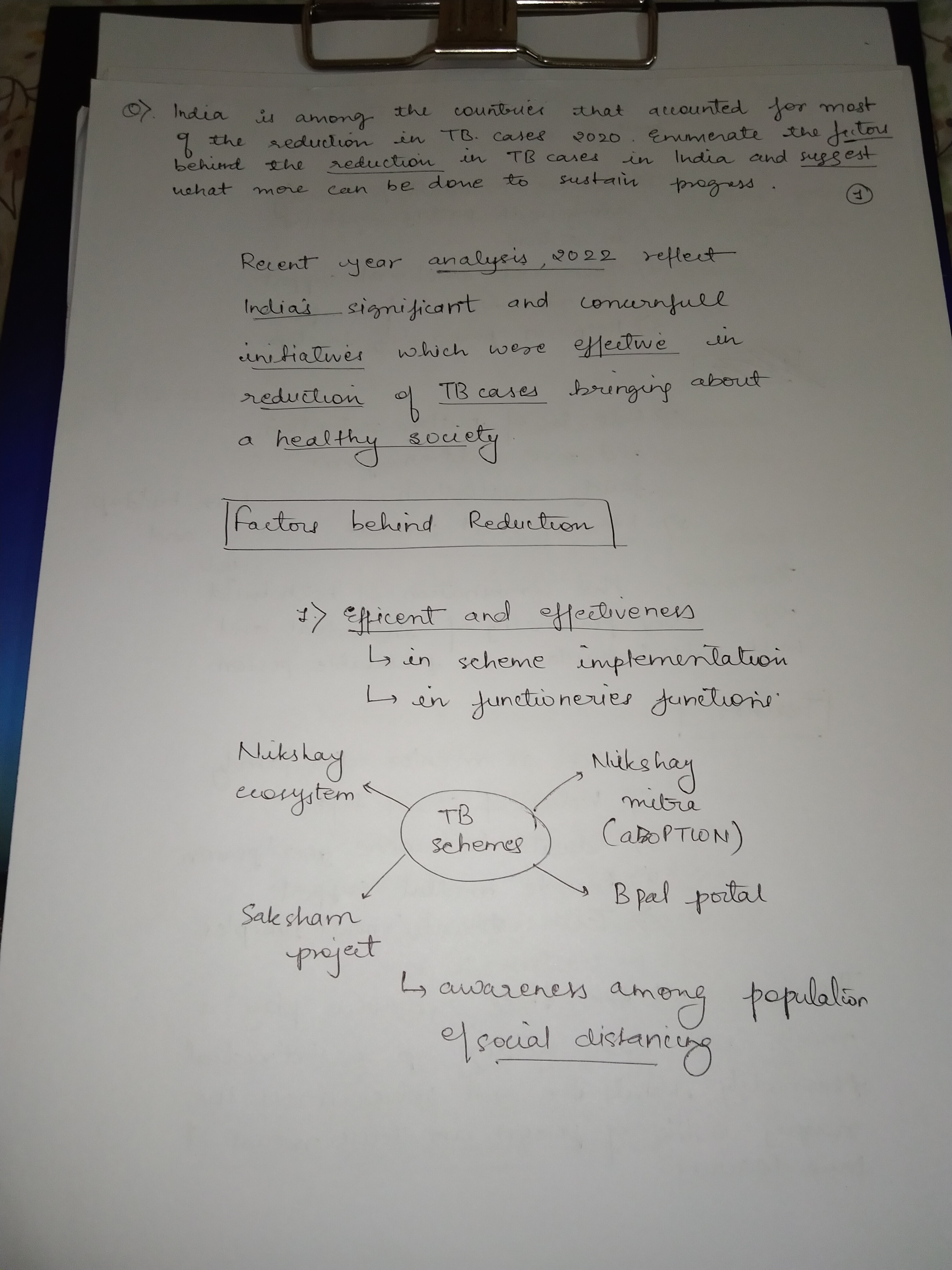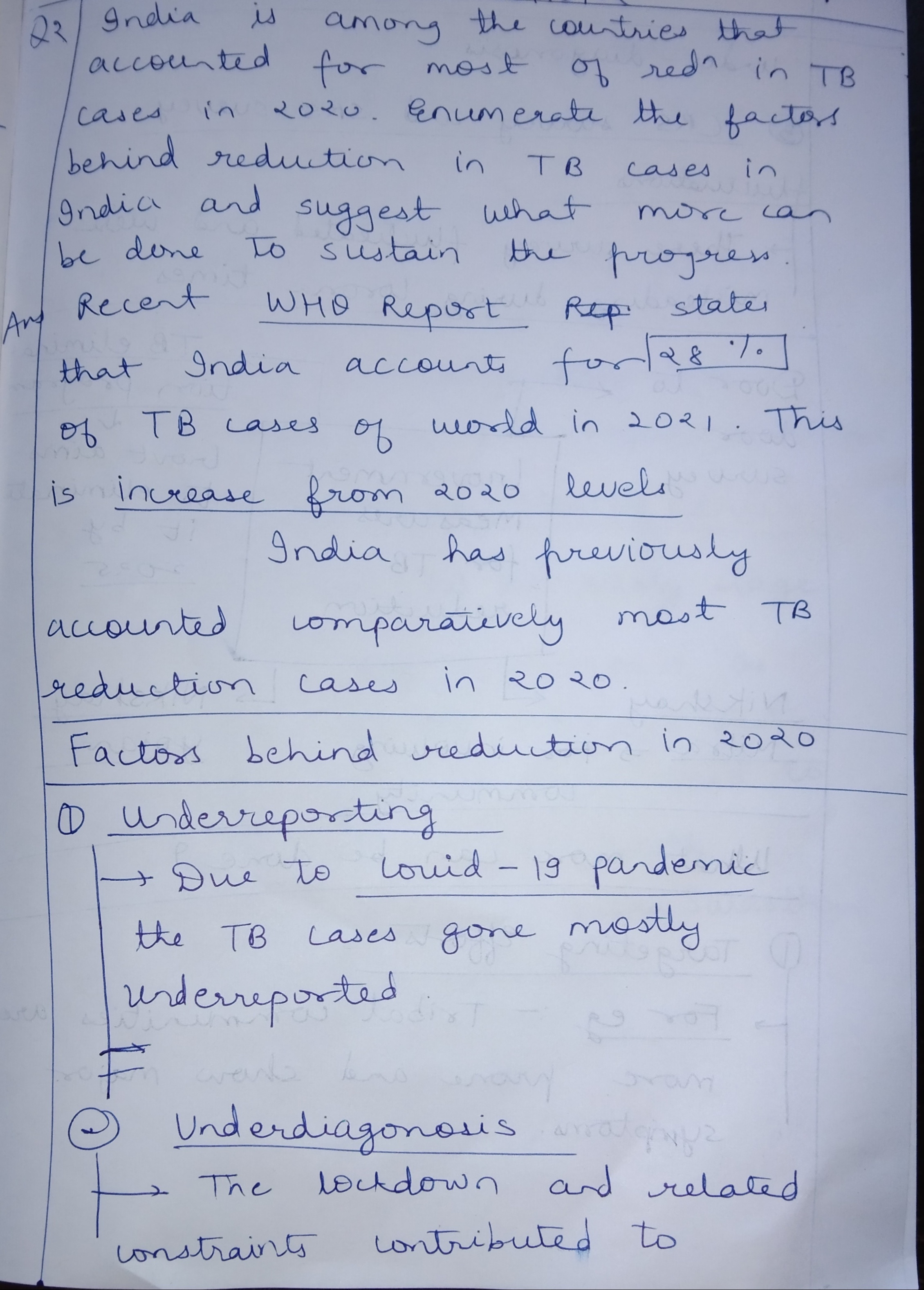 1) India is among the countries that accounted for most of the reduction in TB cases in 2020. Enumerate the factors behind the reduction in TB cases in India and suggest what more can be done to sustain the progress.