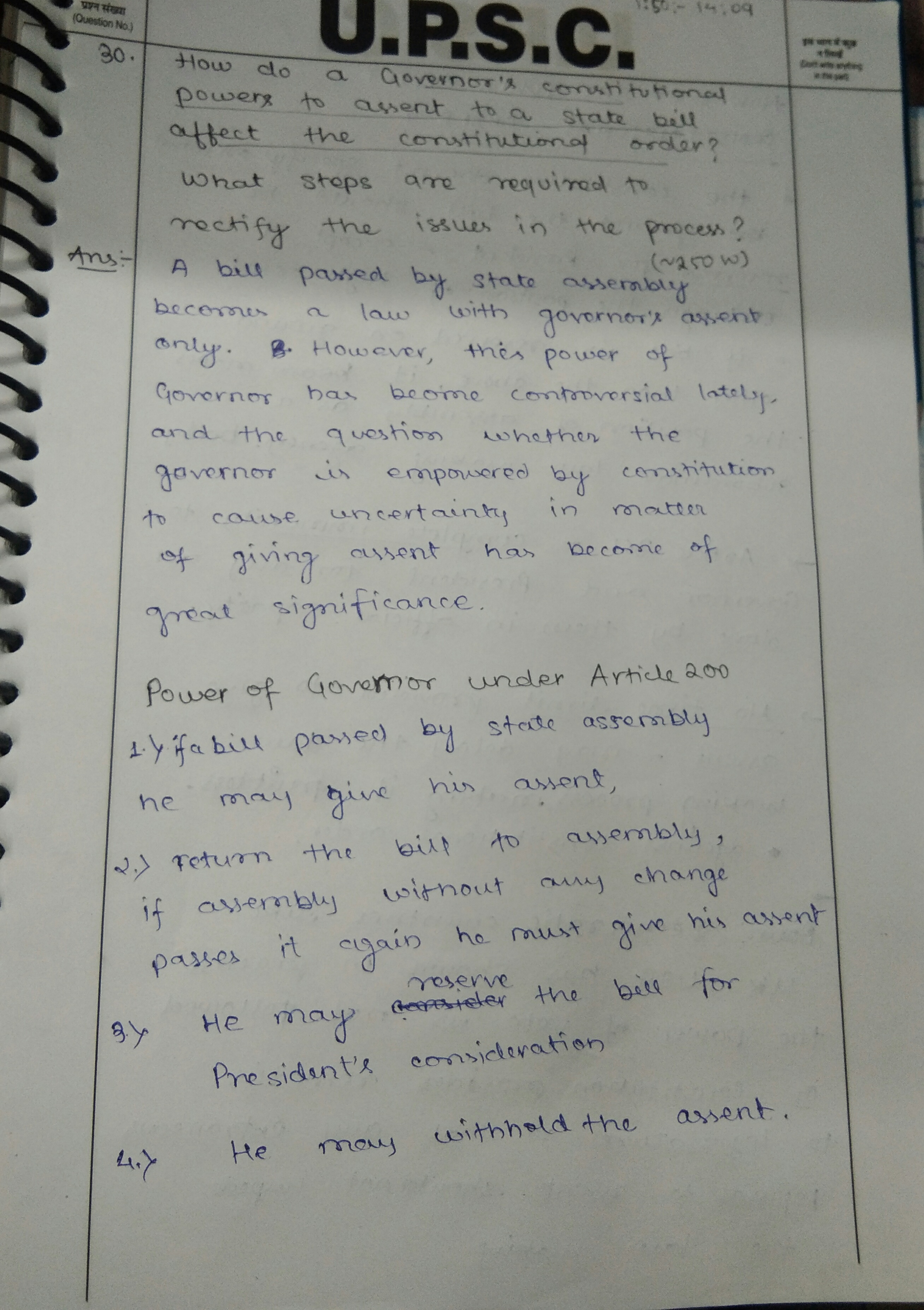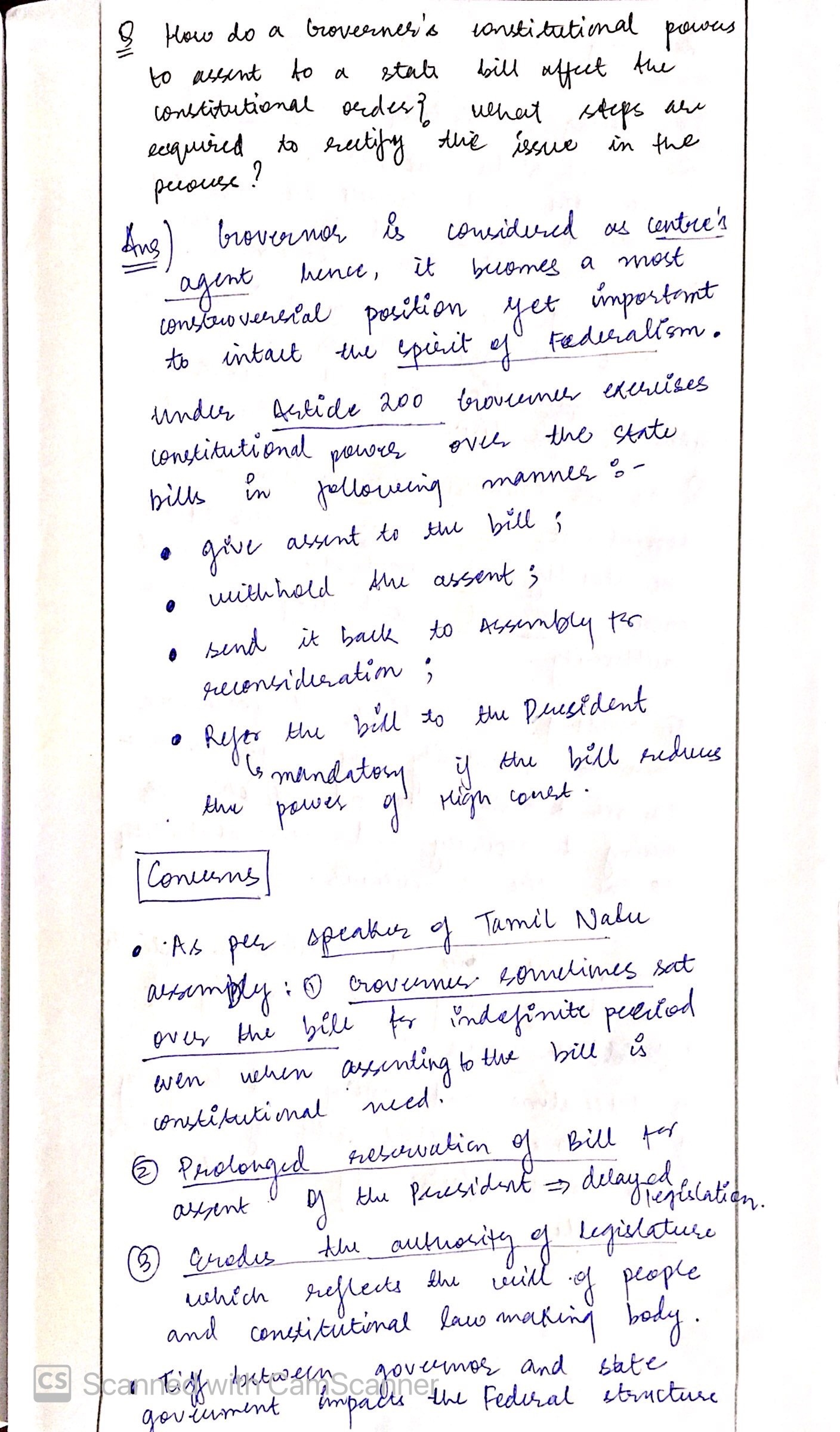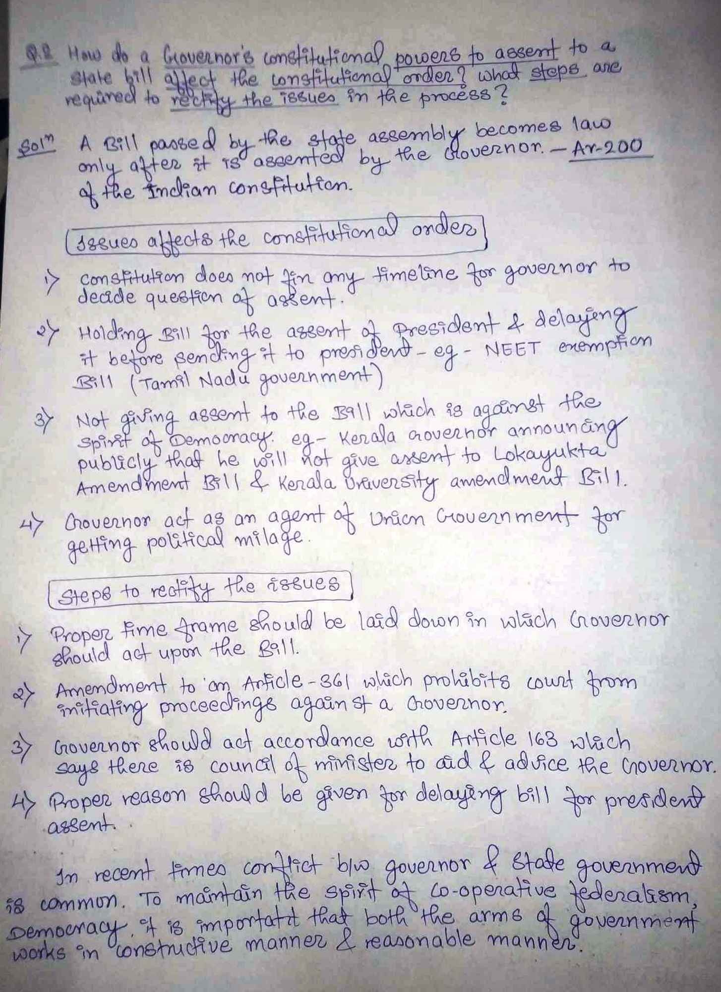 2) How do a Governor’s constitutional powers to assent to a state bill affect the constitutional order? What steps are required to rectify the issues in the process?
