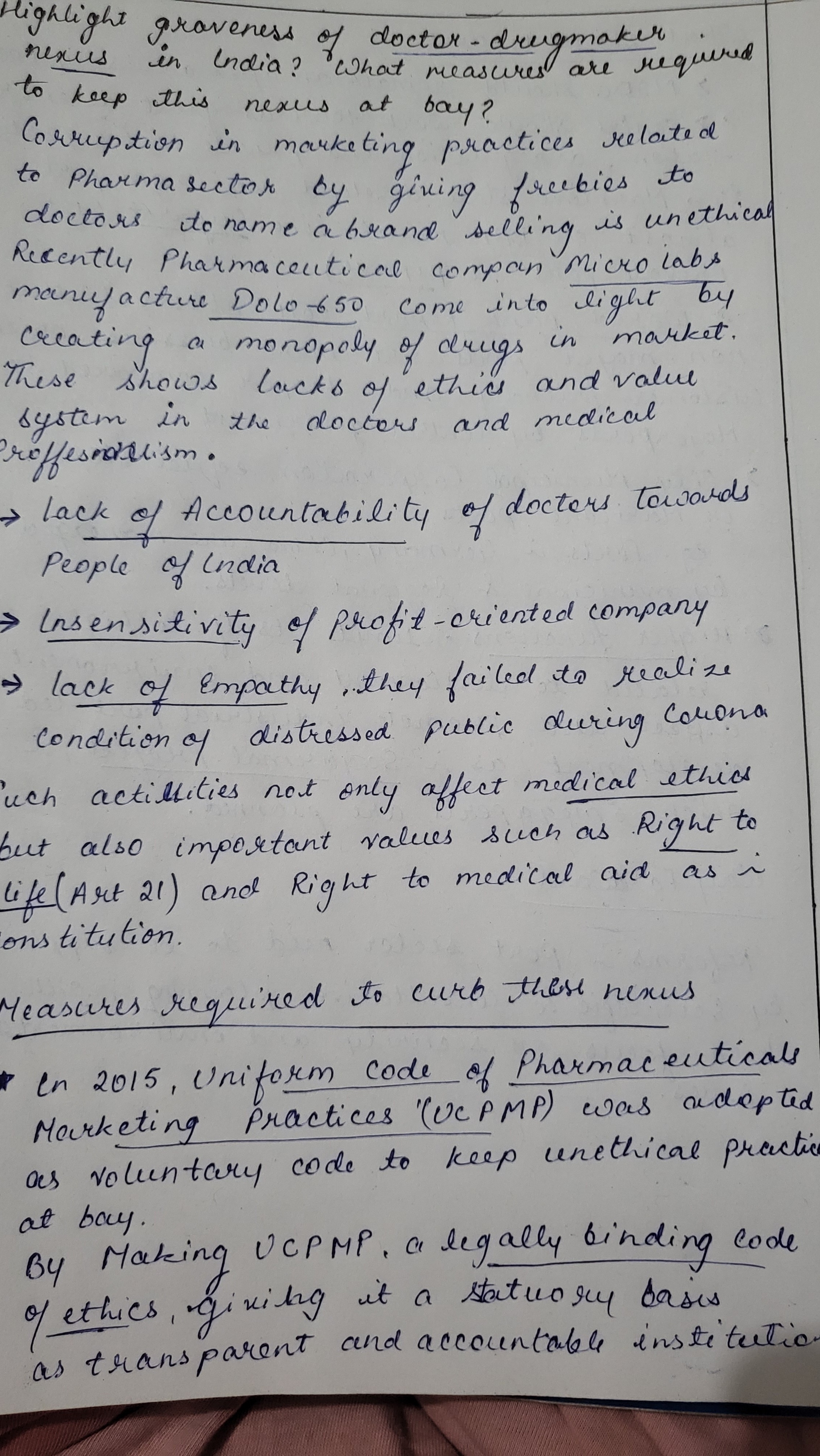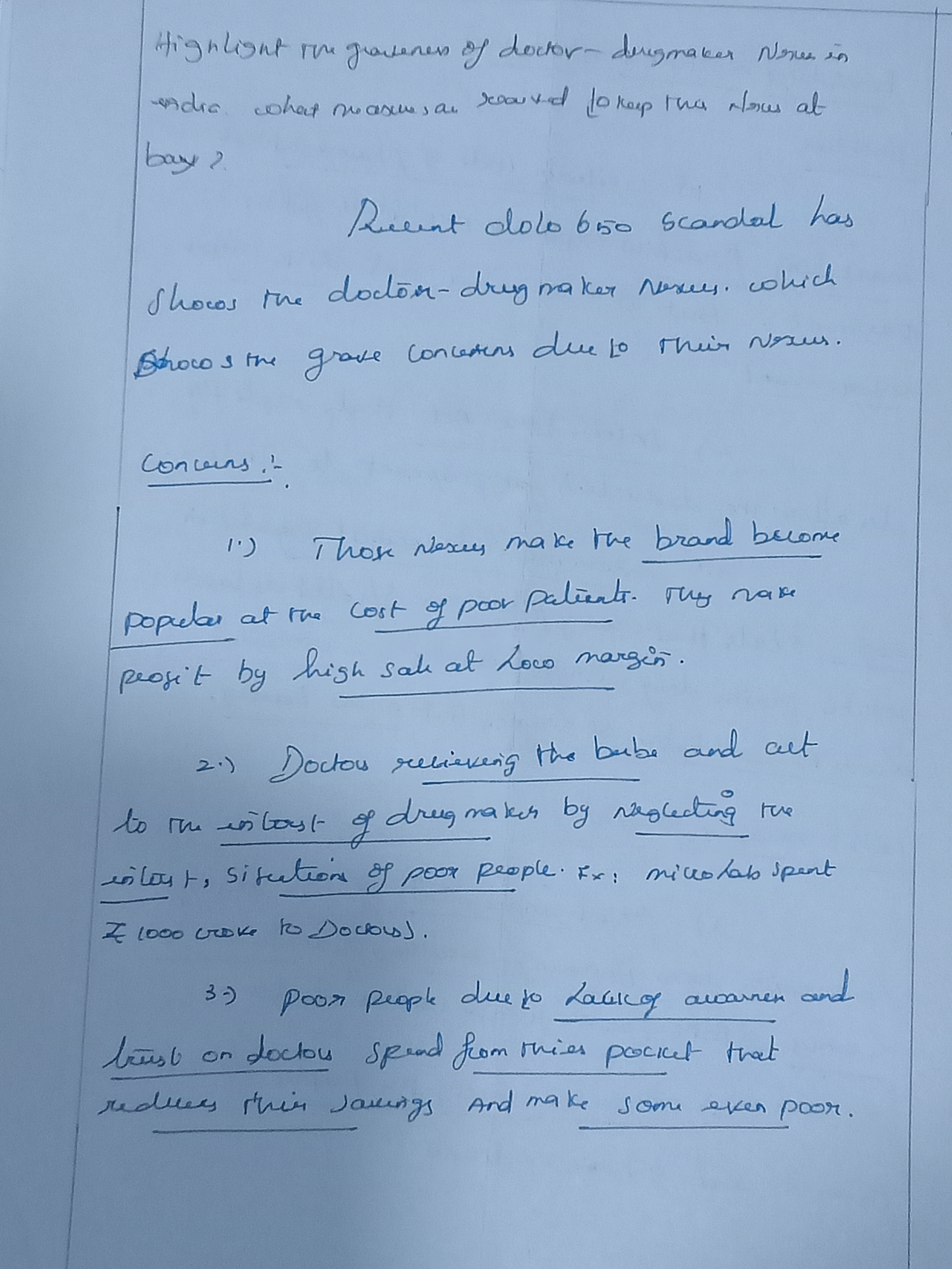 2) Highlight the graveness of the doctor- drugmaker nexus in India. What measures are required to keep this nexus at bay?