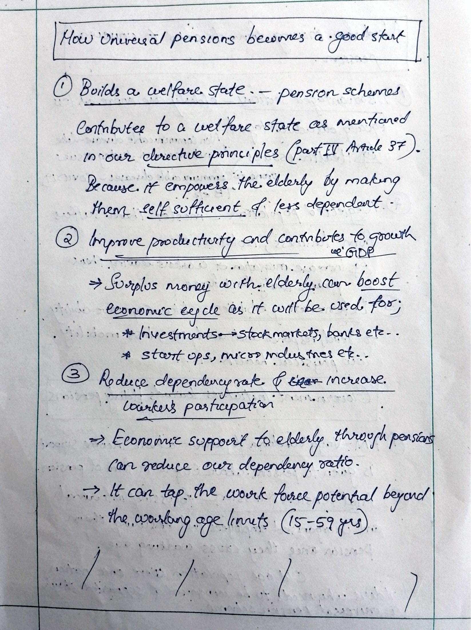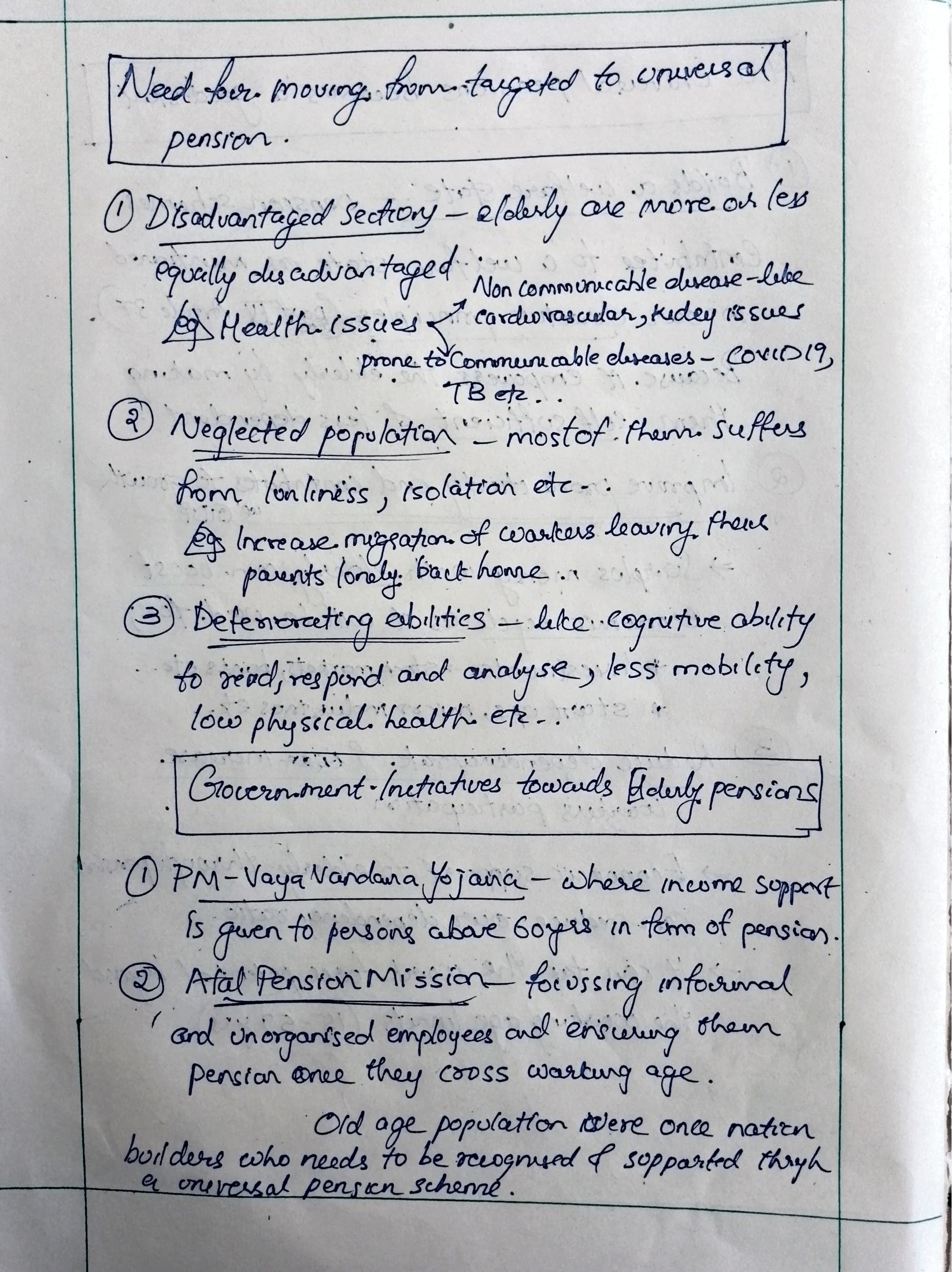In need for universal approach, the points mentioned in the article can be added. Procedural difficulties (like old people have to submit eligibility documents in case of targeted), also old people from well-off families can also suffer if children don’t provide adequate care to them. NSAP can also be mentioned.