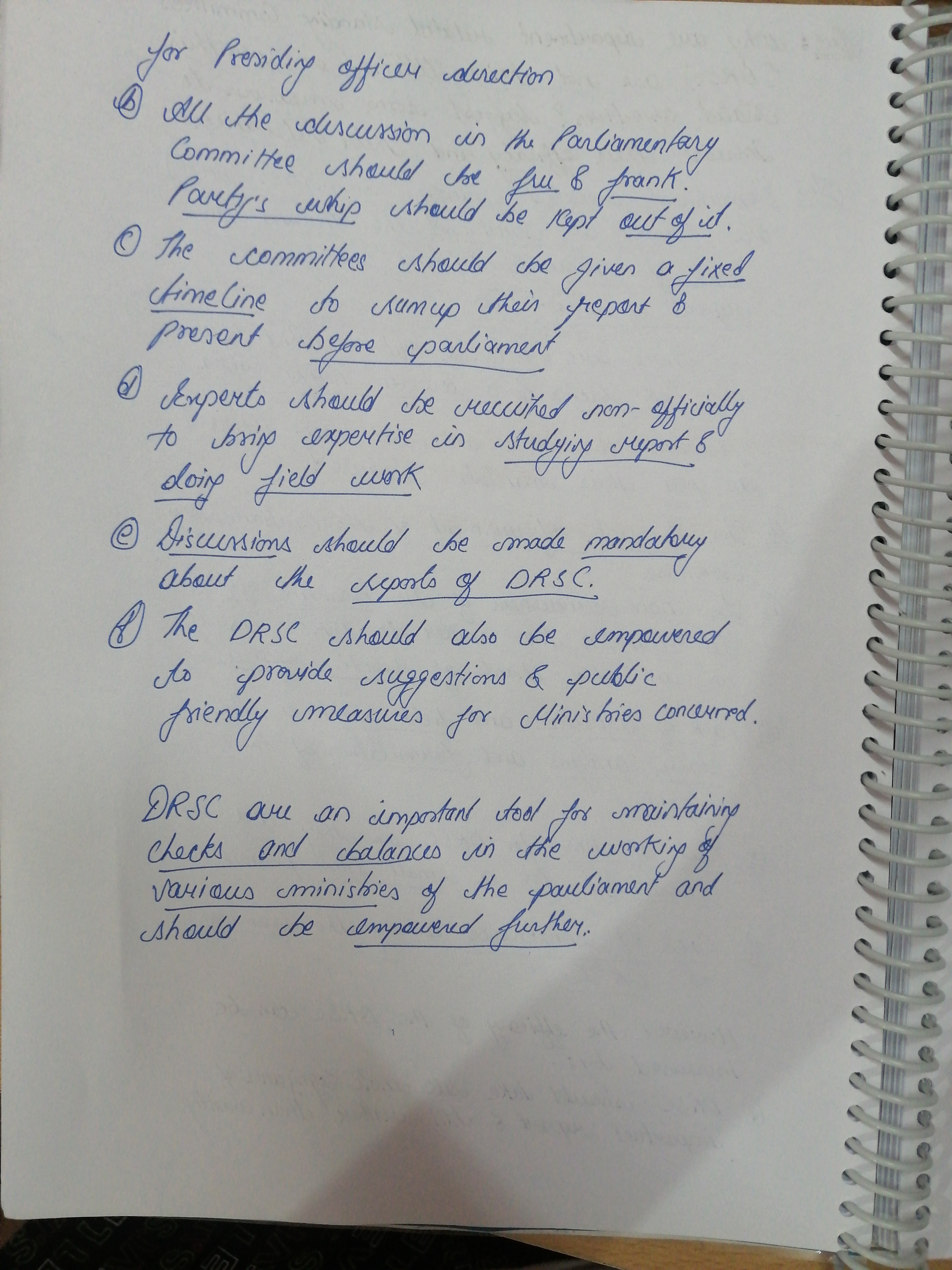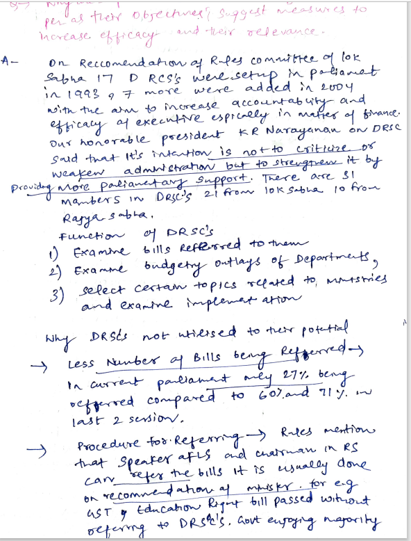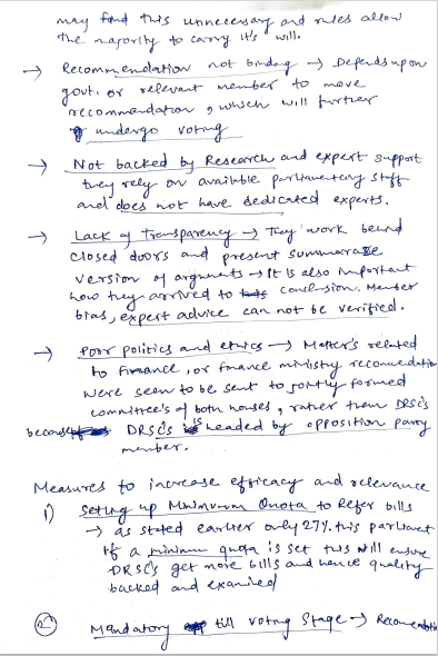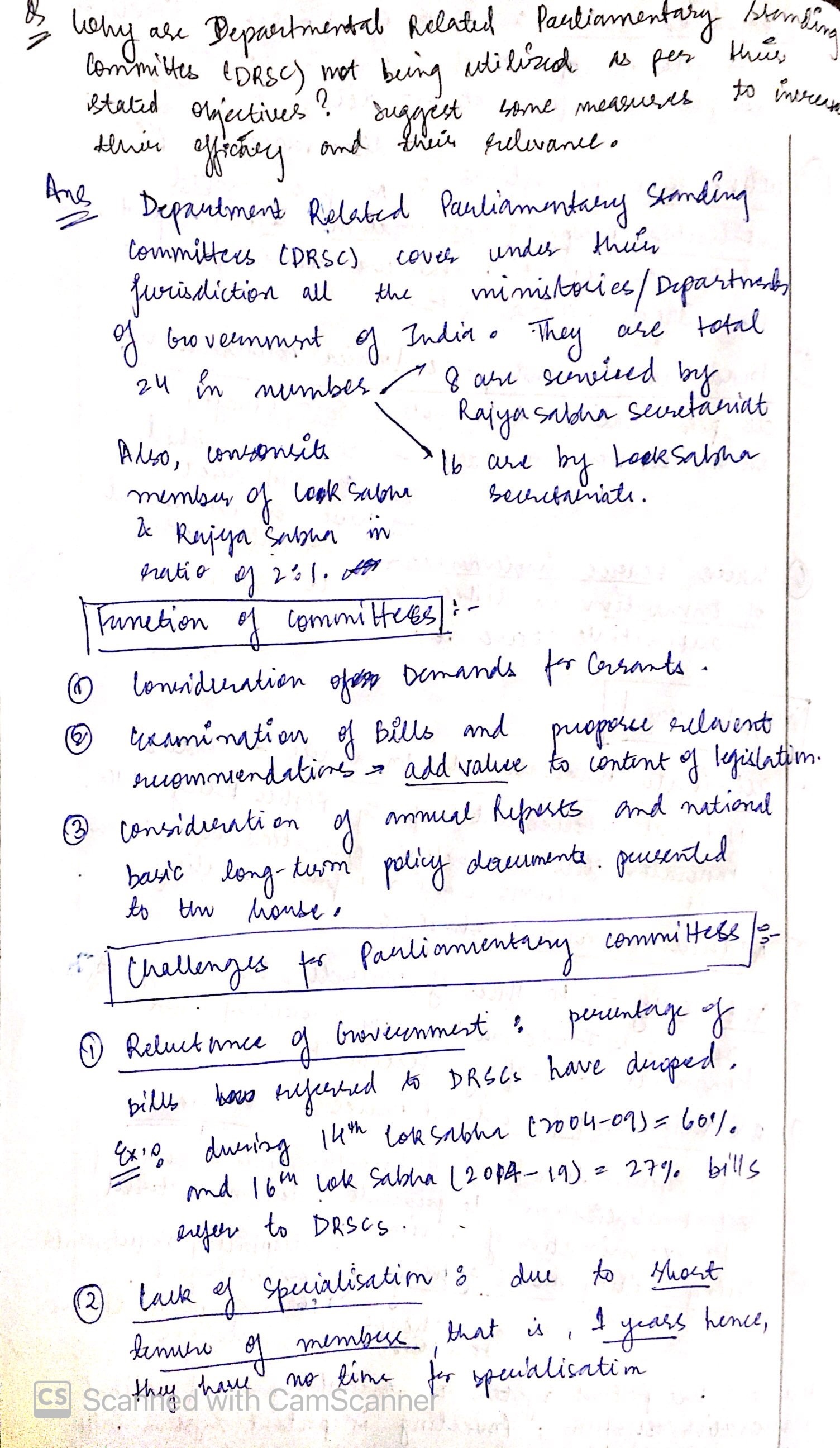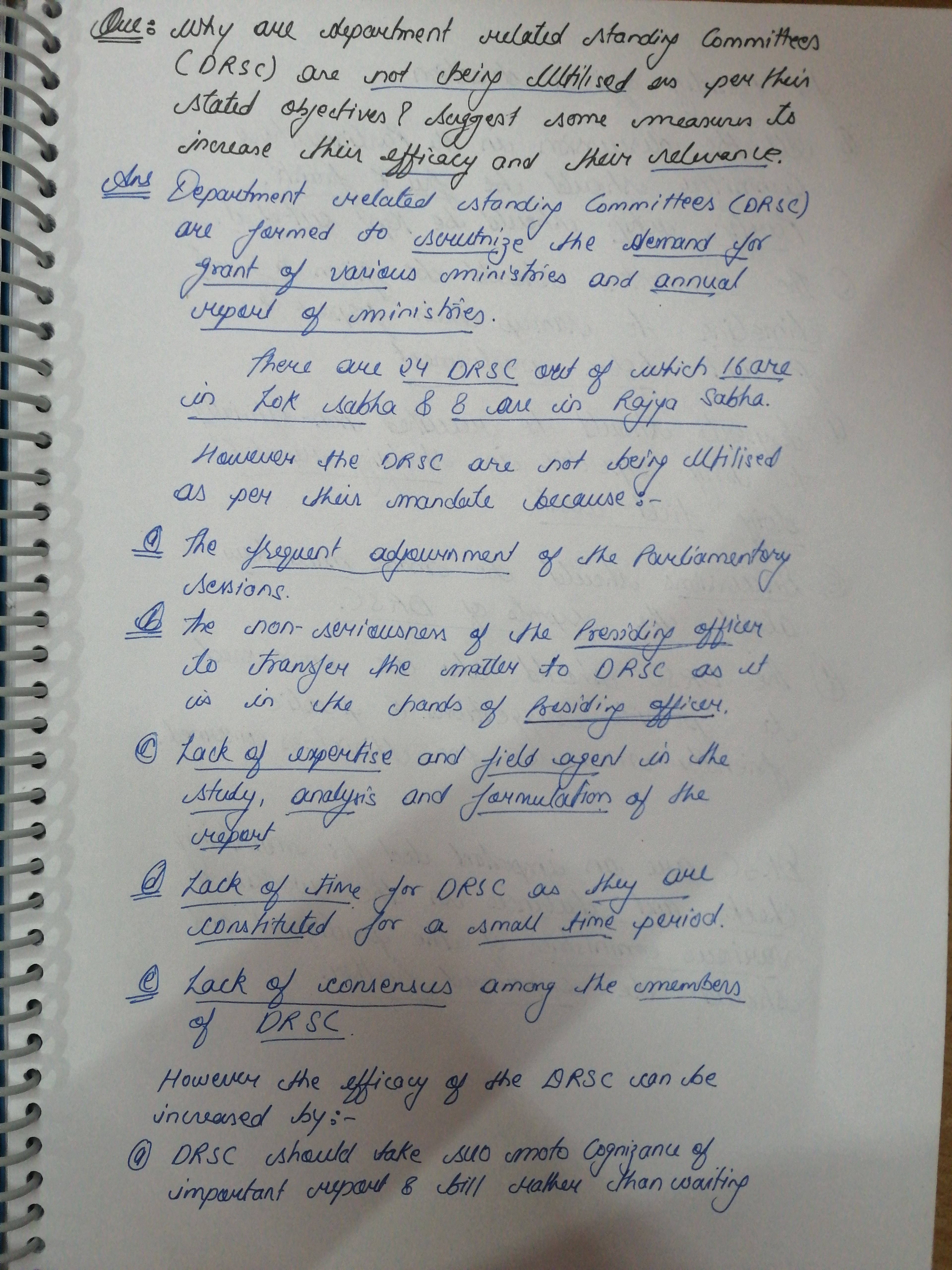 1) Why are Department Related Parliamentary Standing Committees (DRSC) not being utilized as per their stated objectives? Suggest some measures to increase their efficacy and their relevance.