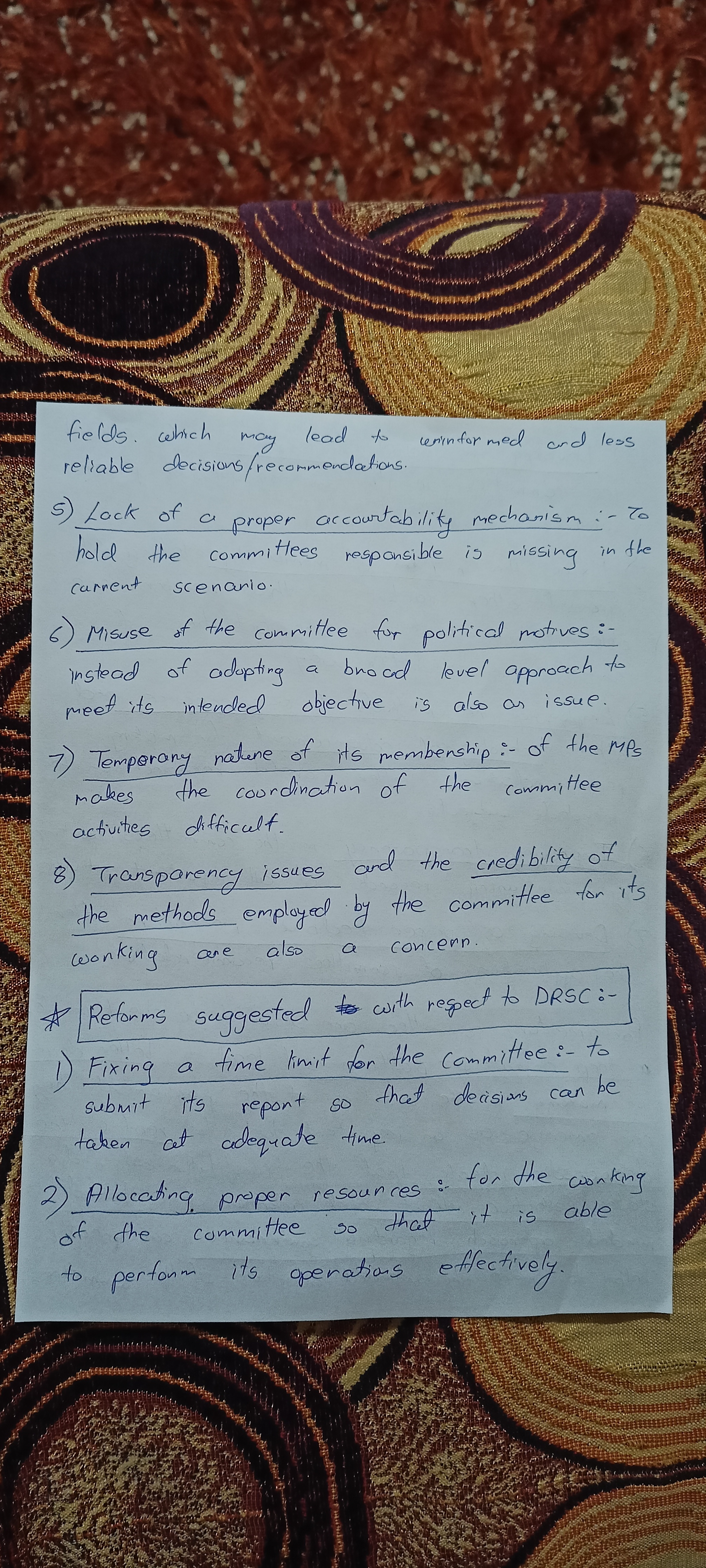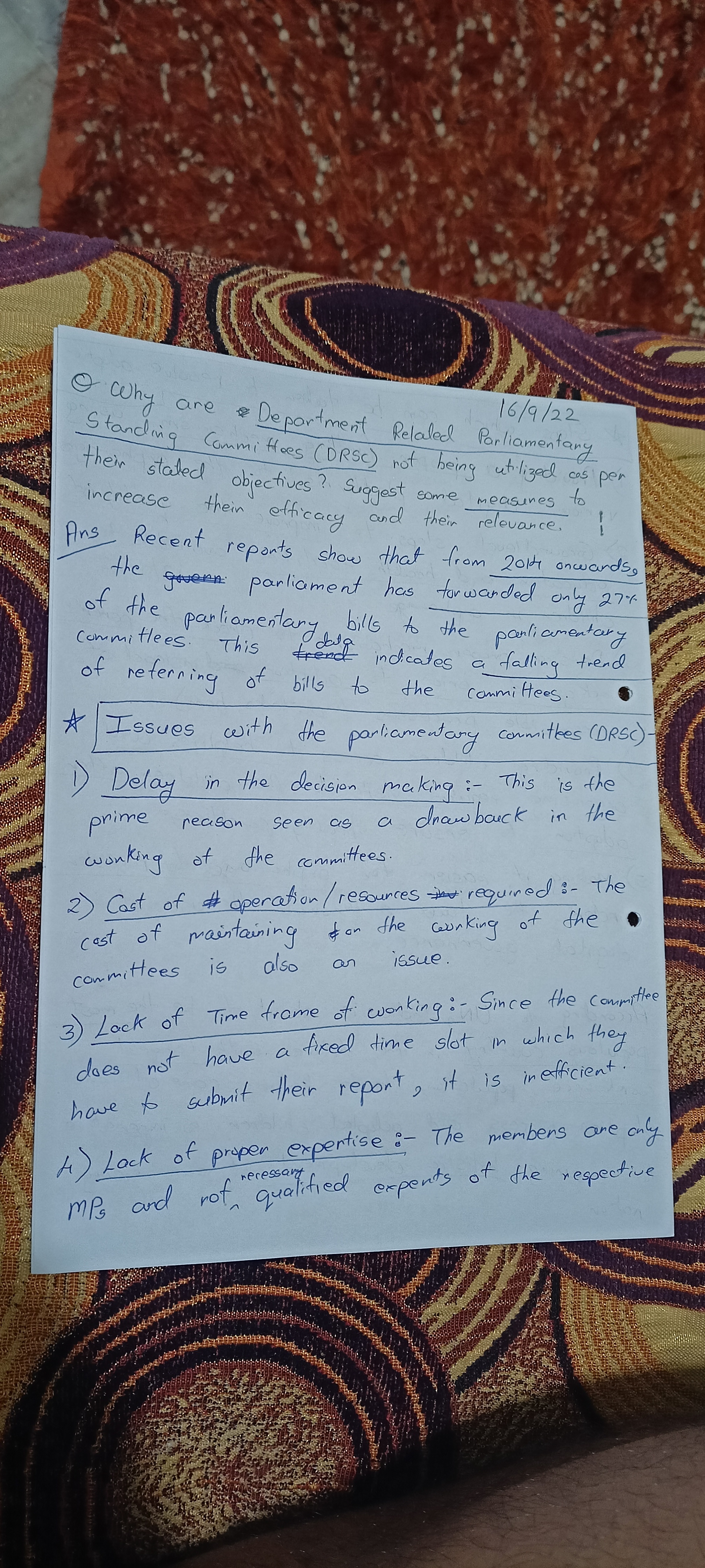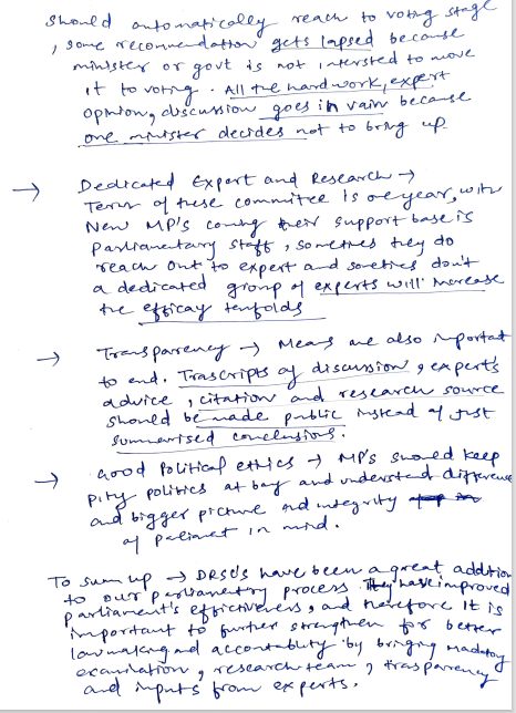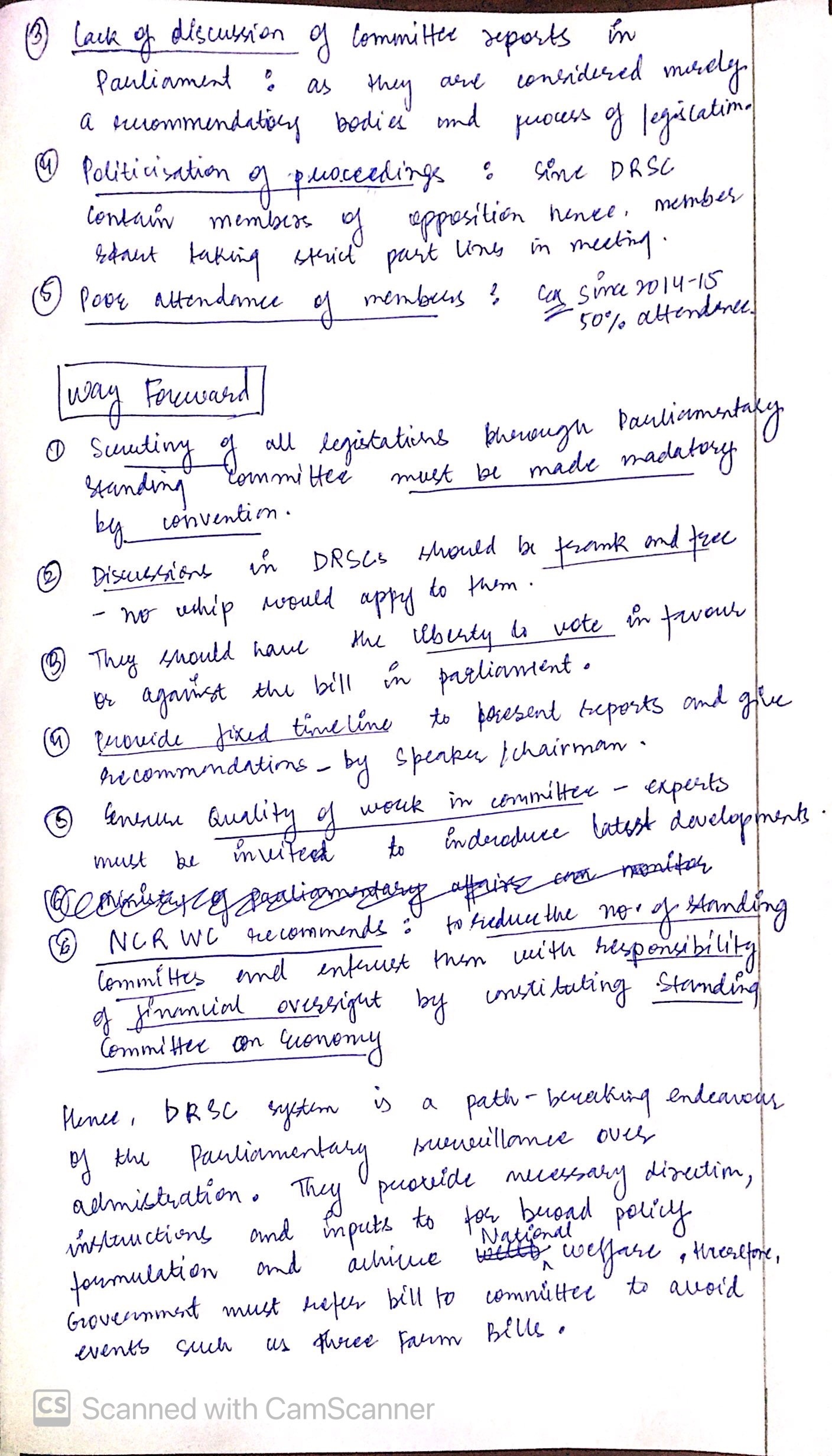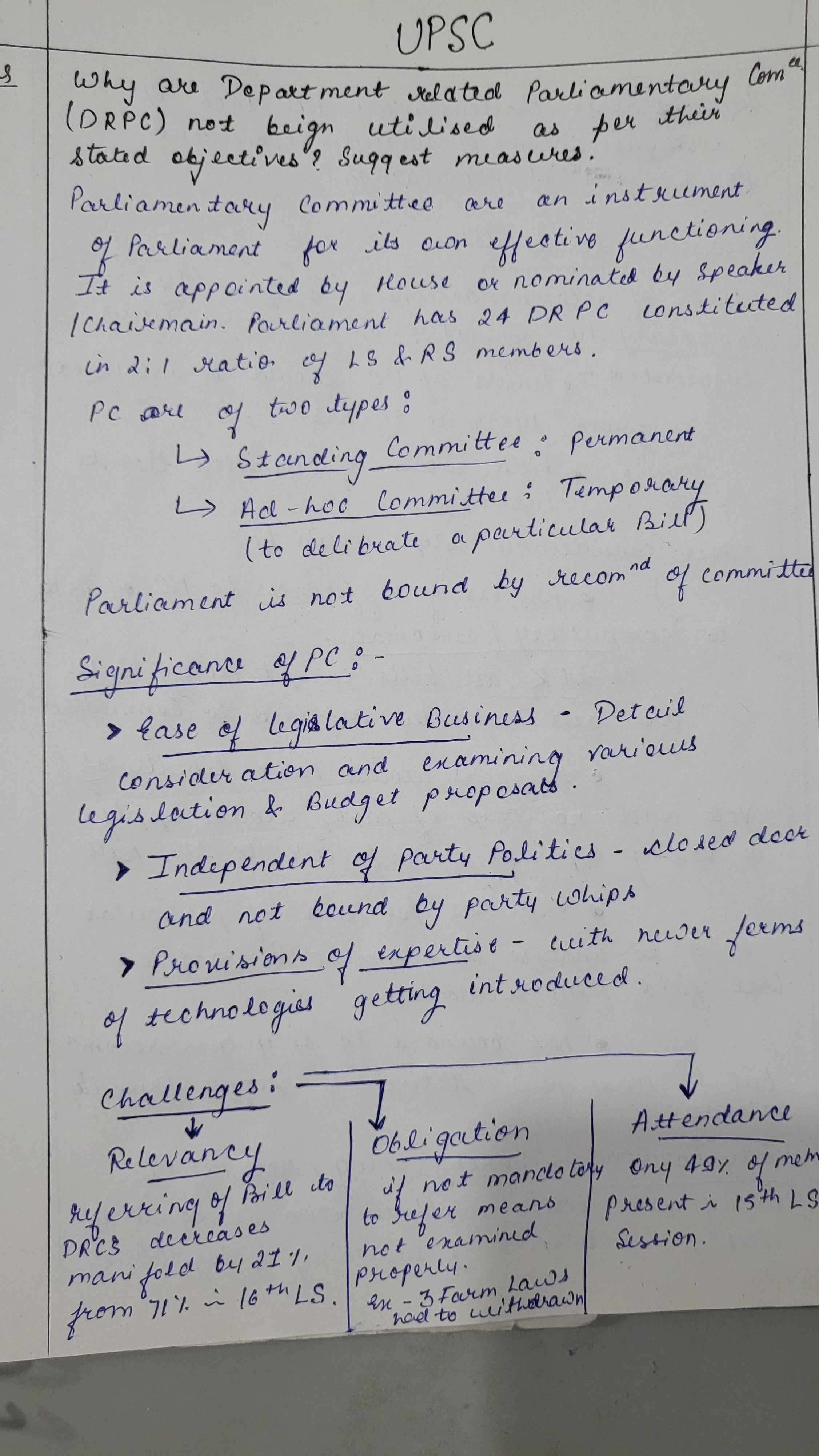 1) Why are Department Related Parliamentary Standing Committees (DRSC) not being utilized as per their stated objectives? Suggest some measures to increase their efficacy and their relevance.