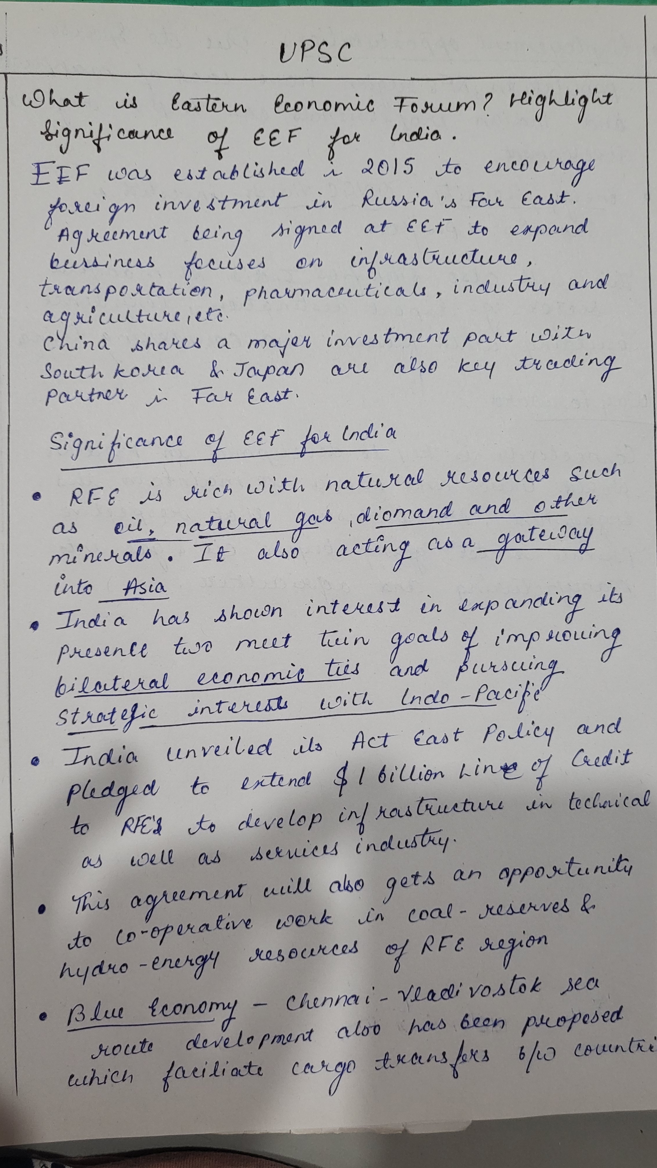 2) What is the Eastern Economic Forum? Highlight the Significance of the Eastern Economic Forum for India.