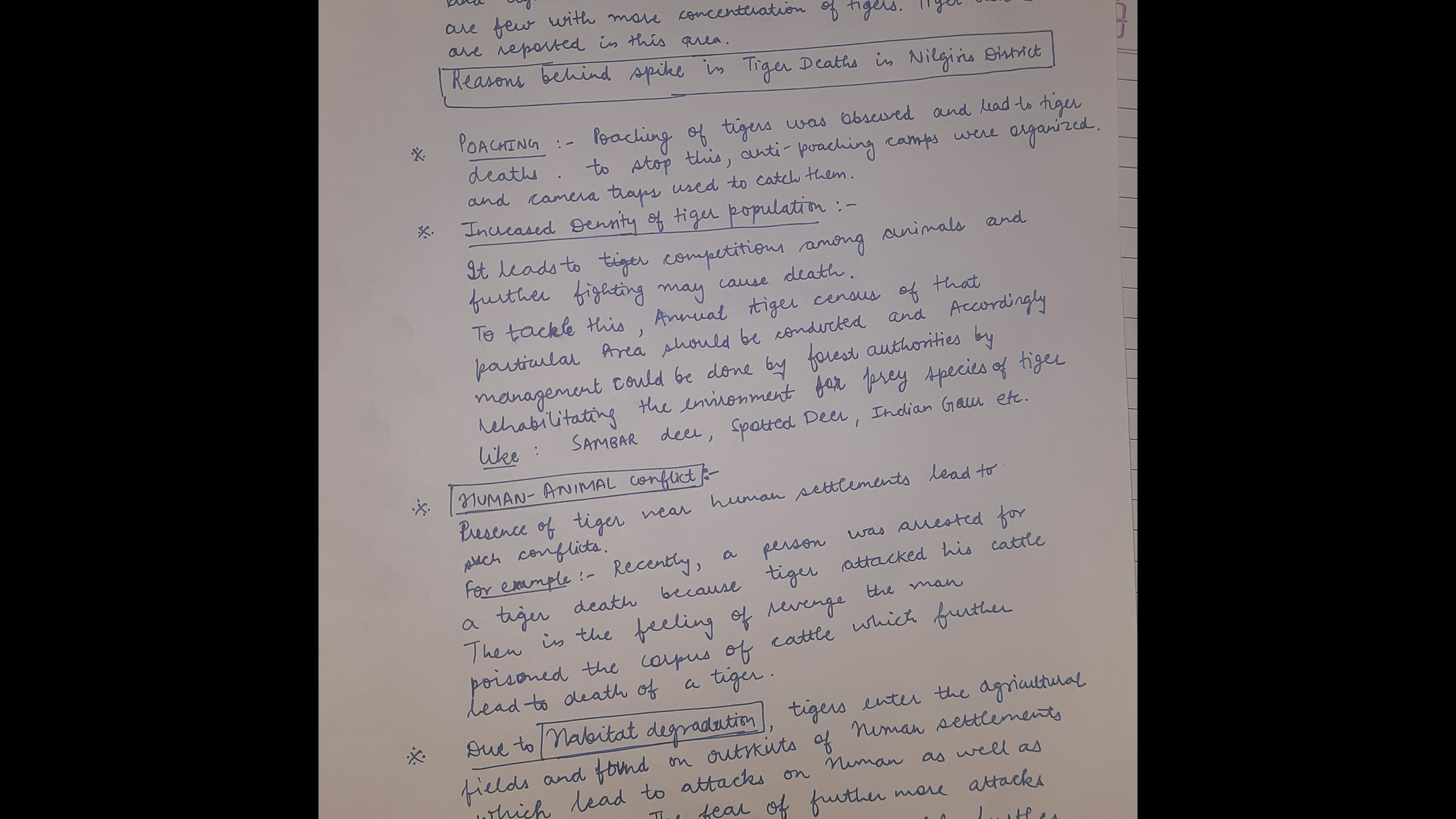 2) Analyze the reasons behind the recent spike in tiger deaths in the Nilgiris district. How do human-animal conflicts and habitat degradation contribute to this issue?