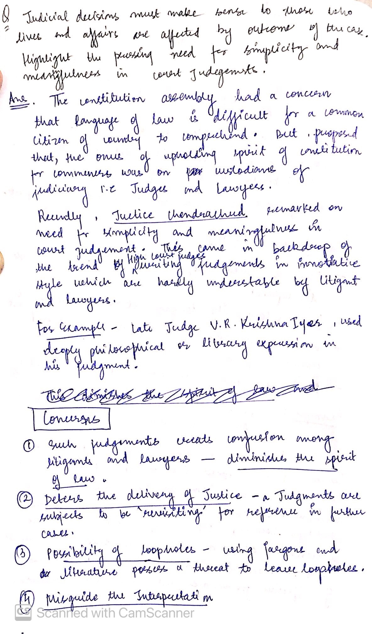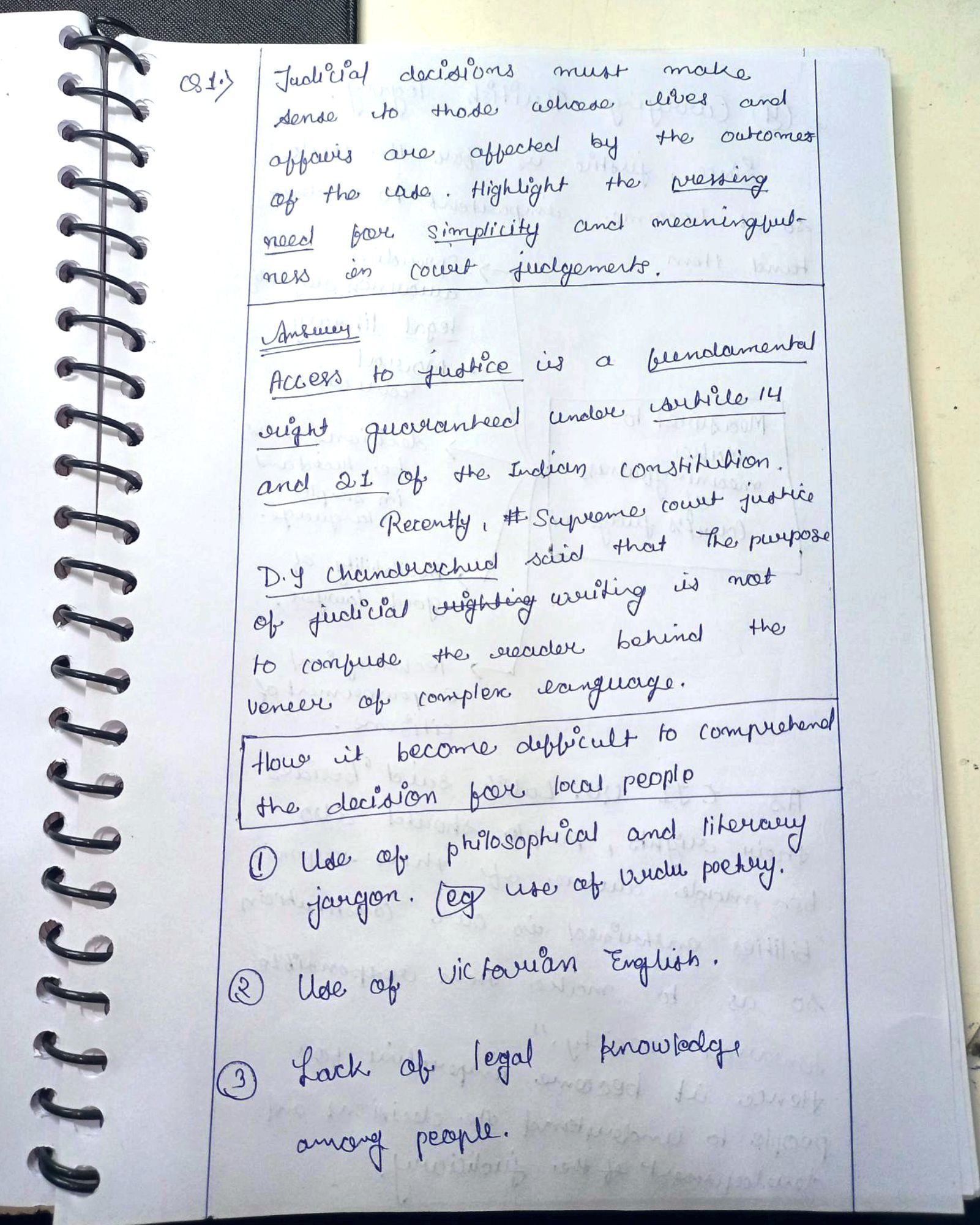 Good answer. But it seems a bit long. You need not repeat the point related to understanding of Judgments multiple times (litigant, Judges, common people), once will suffice. Highlight the impact like it can lead to delay in justice or reduce people’s interest (or trust) in judicial system.