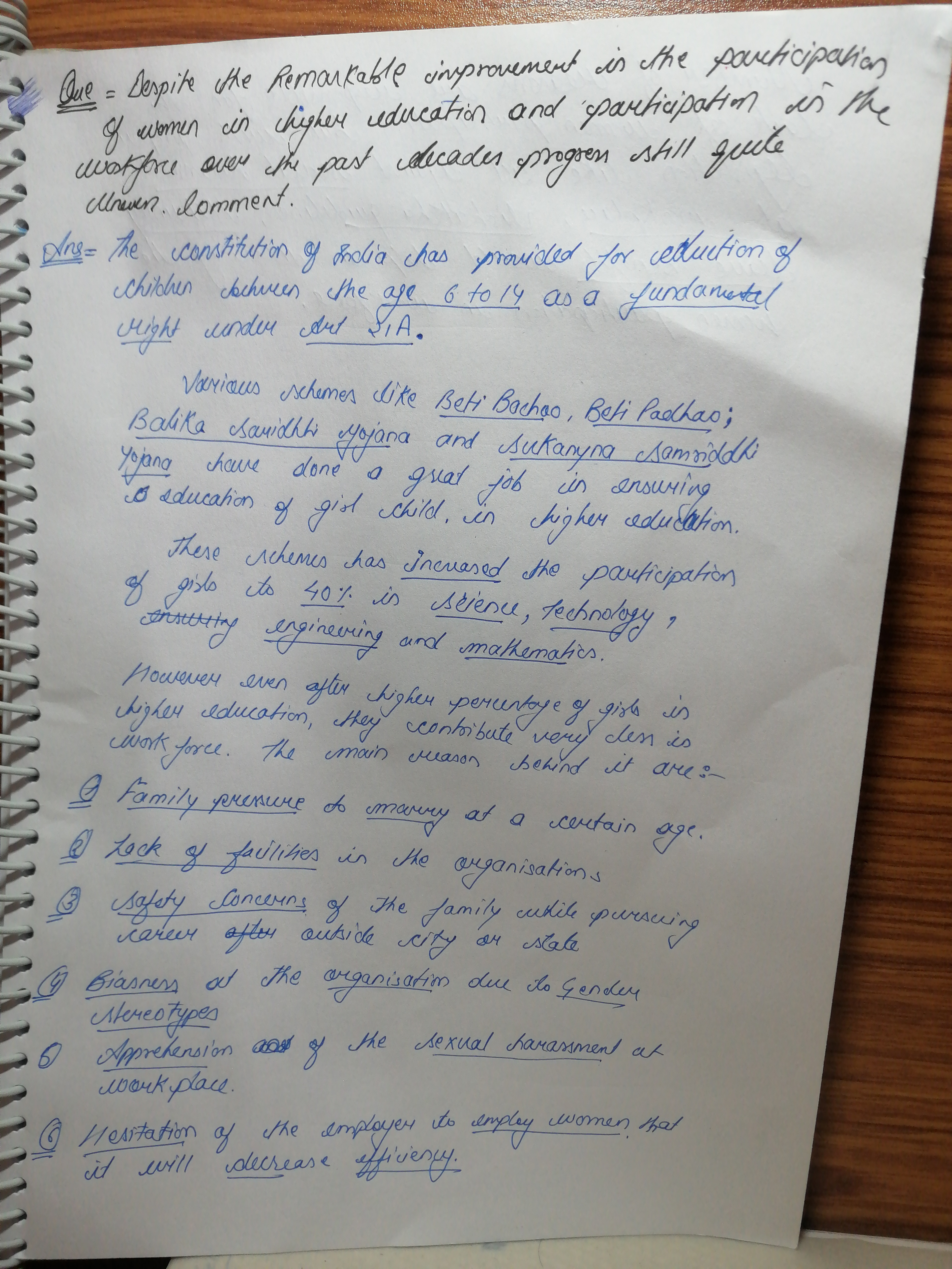 2) Despite the remarkable improvement in the participation of women in higher education and participation in the workforce over the past decades, progress has still been quite uneven. Comment.