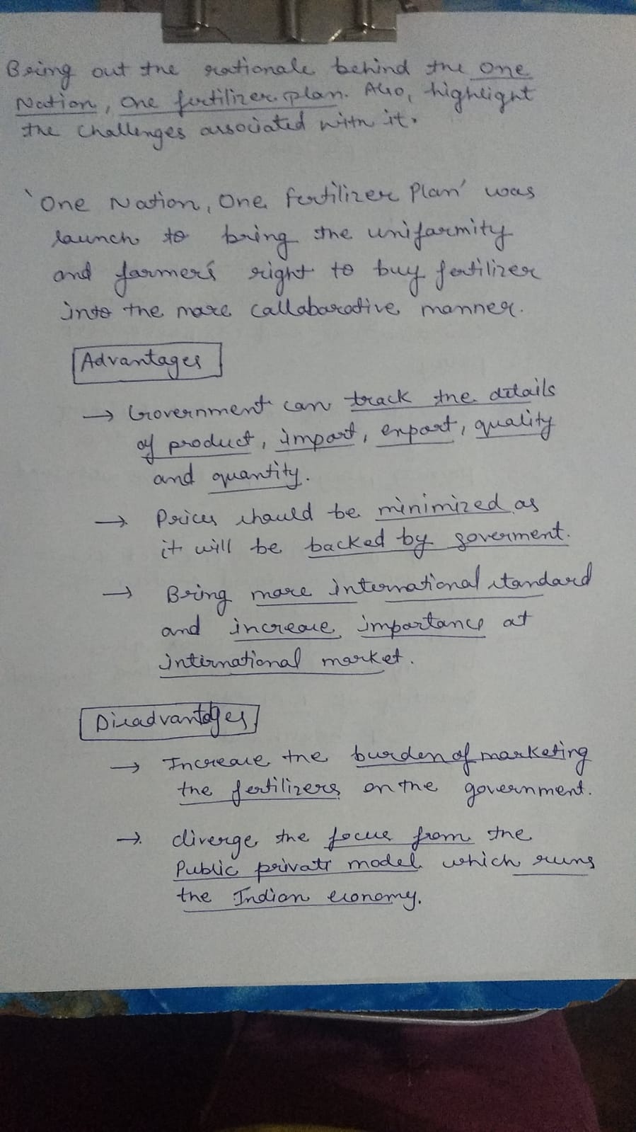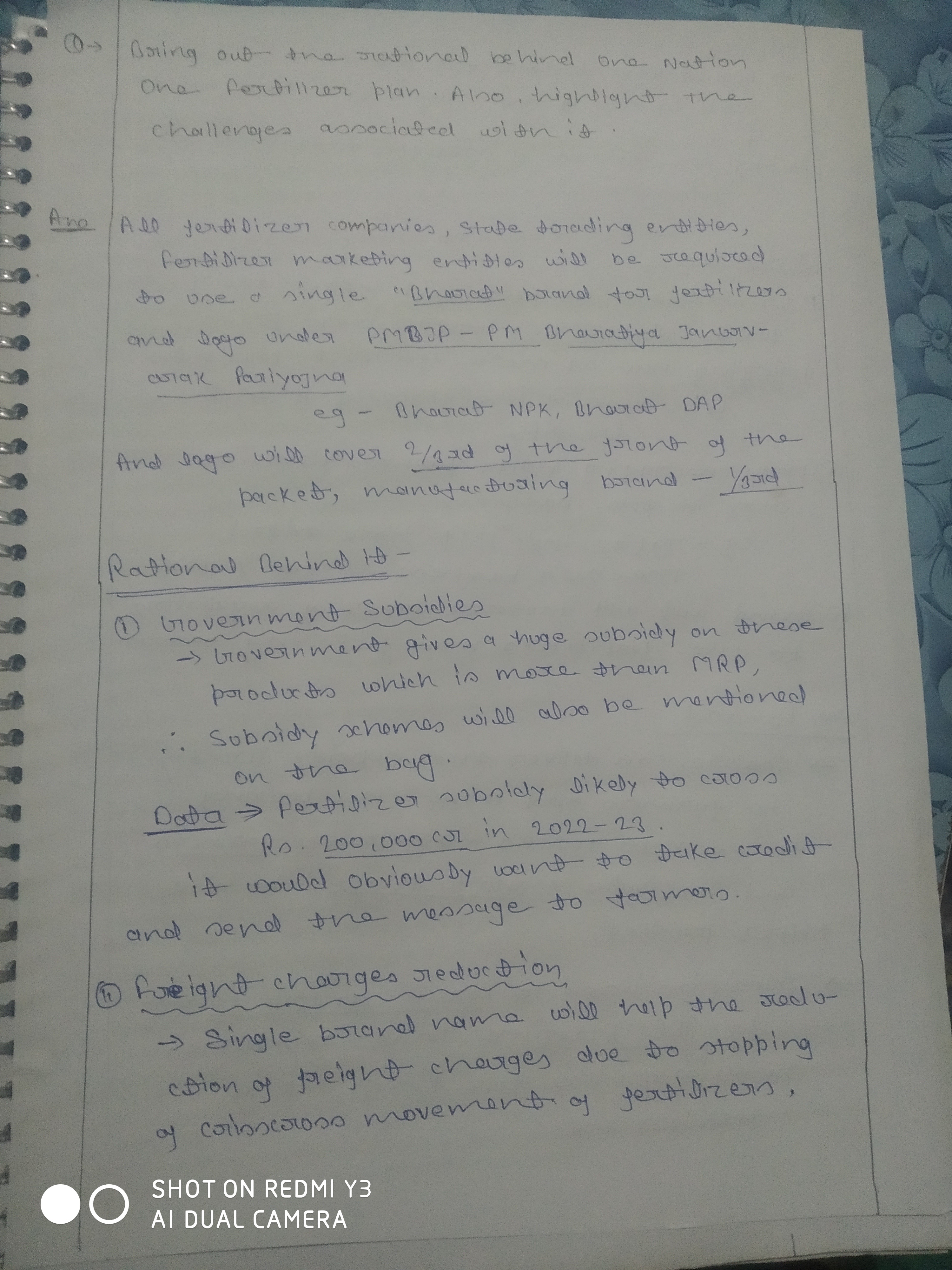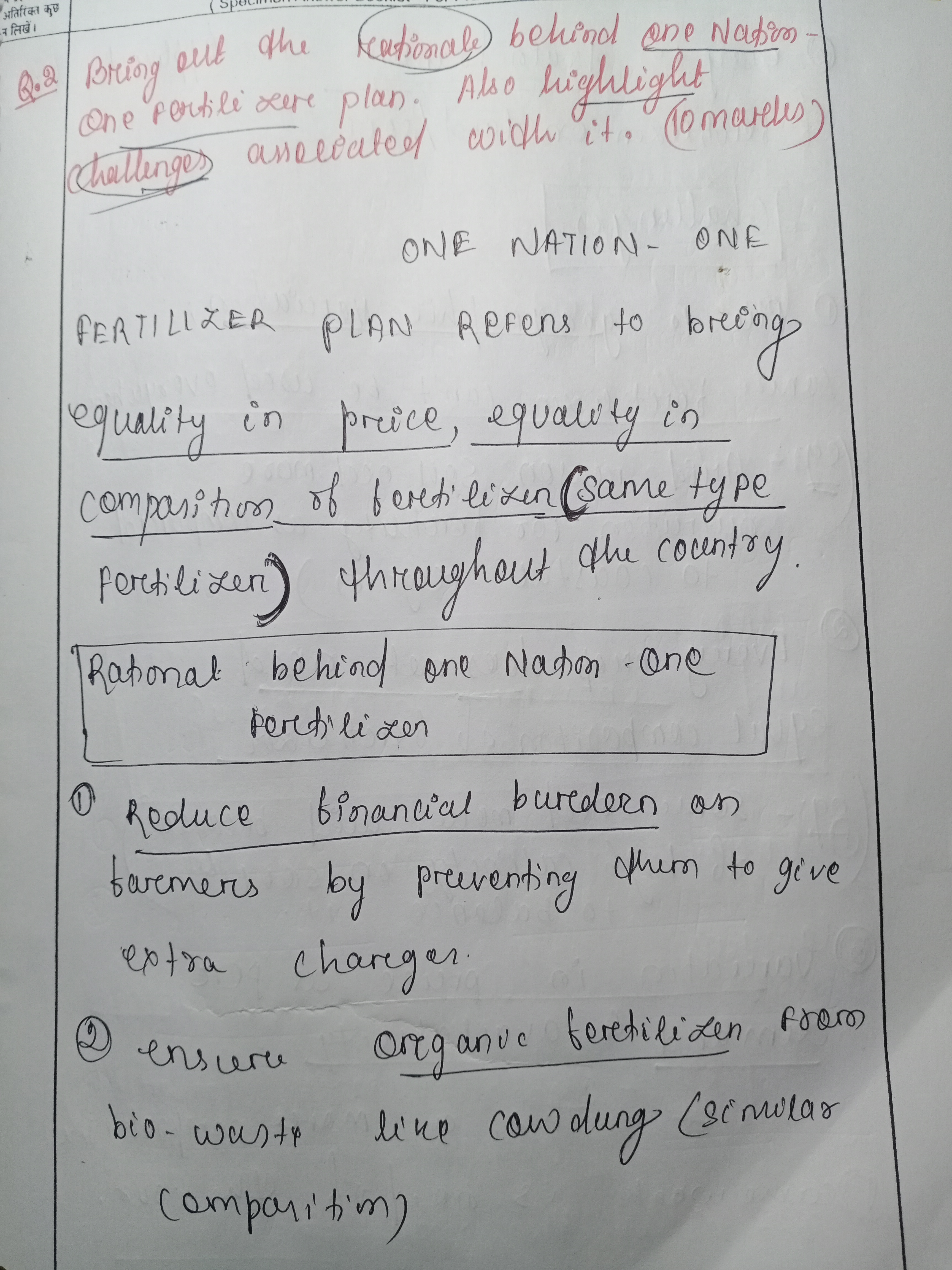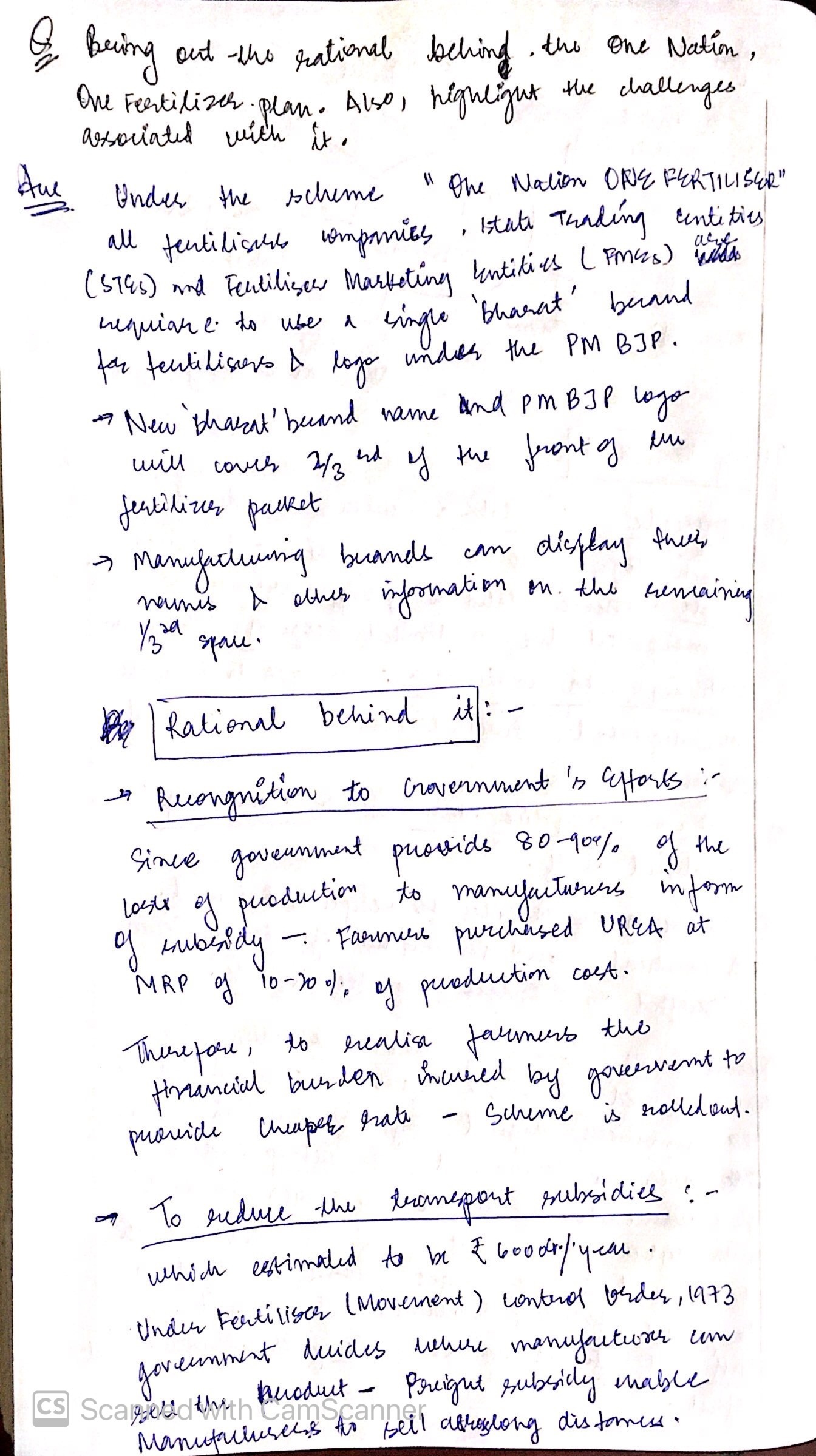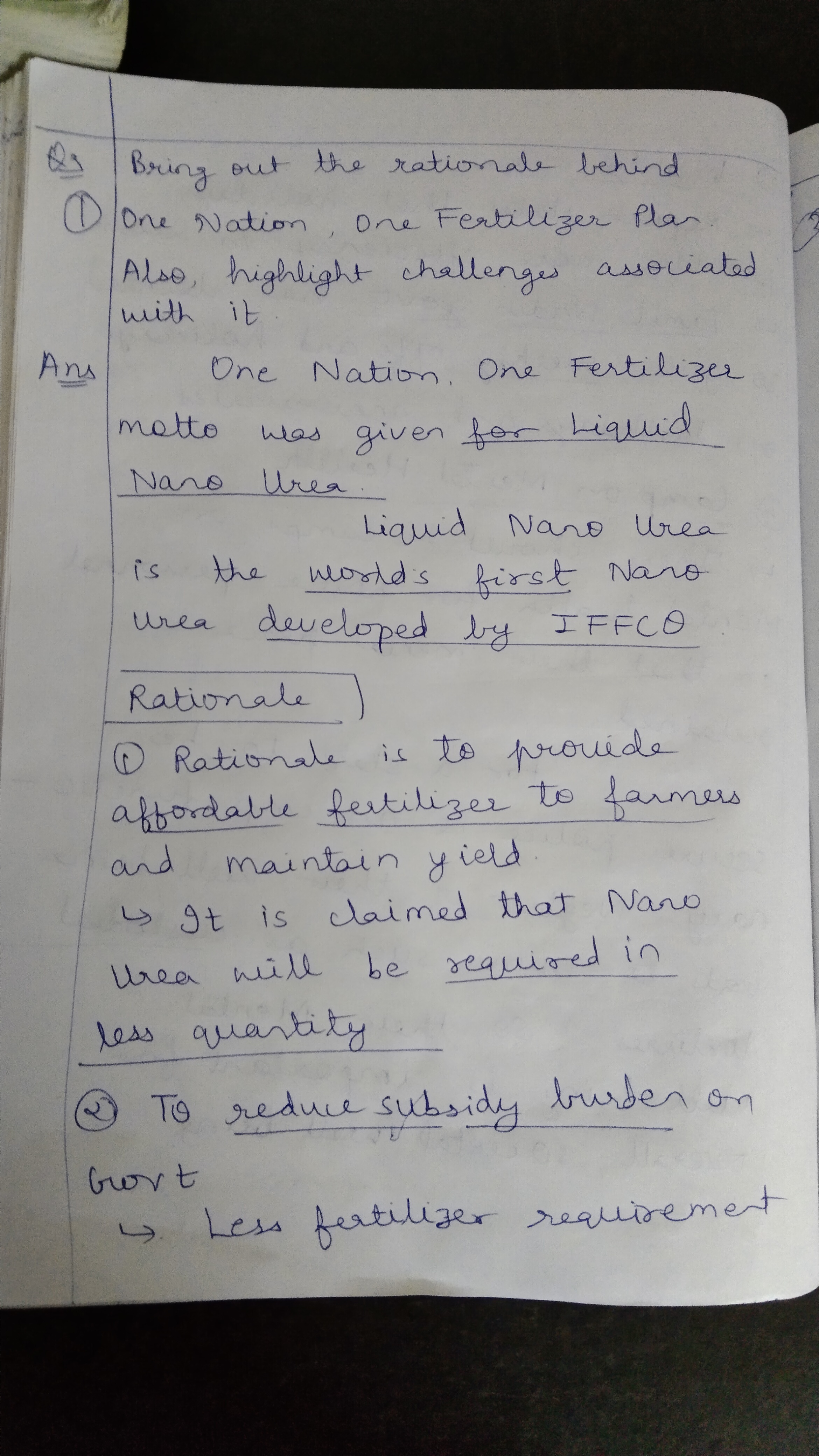 2) Bring out the rationale behind the One Nation, One Fertilizer plan. Also, highlight the challenges associated with it.