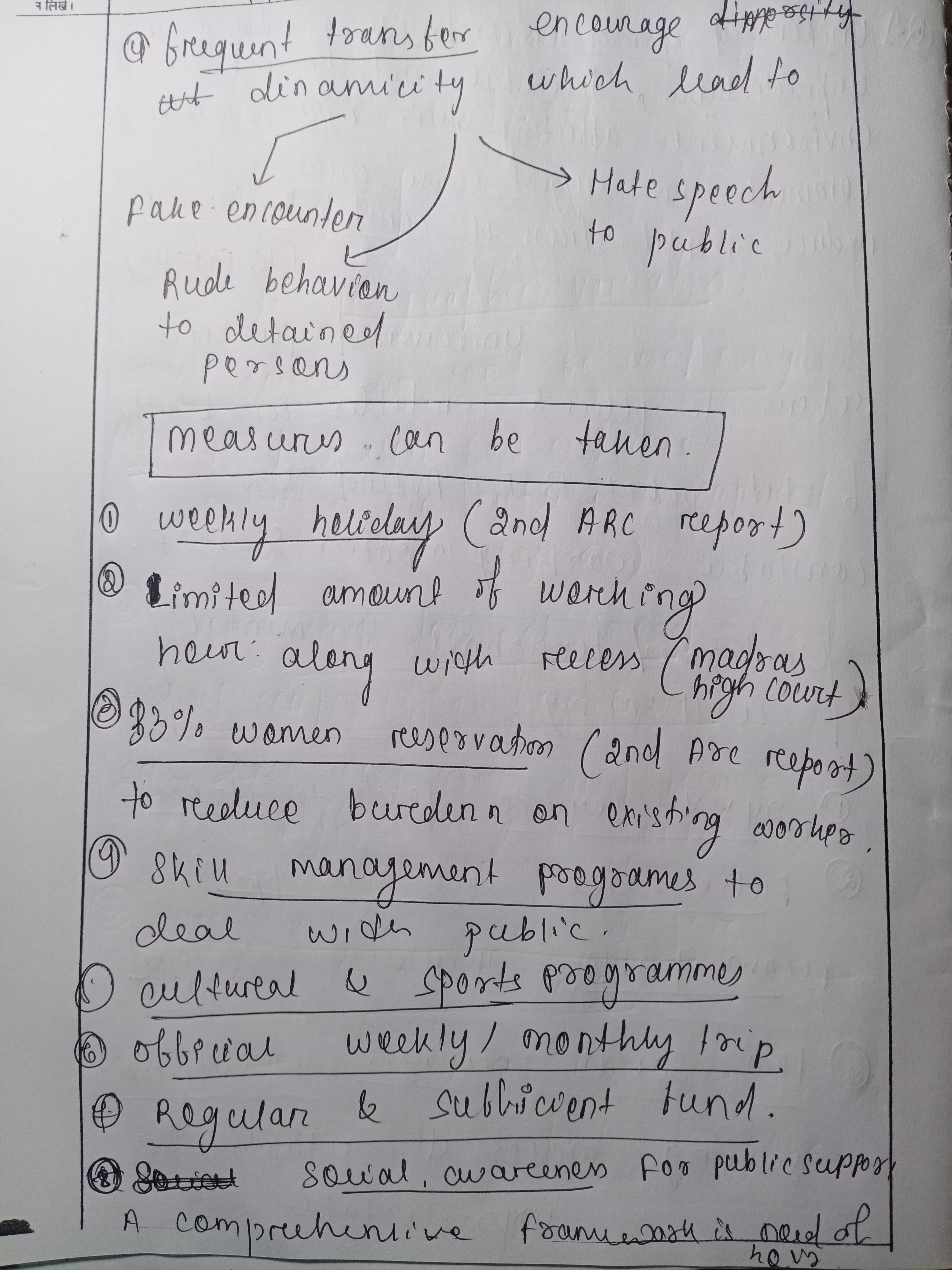 Nice answer! You have covered the issues well. I think in causes You can add the neglect of mental health. There is no support system within the department. Also include strenuous physical conditions of work coupled with low emoluments act as a demotivating factors. Good work!