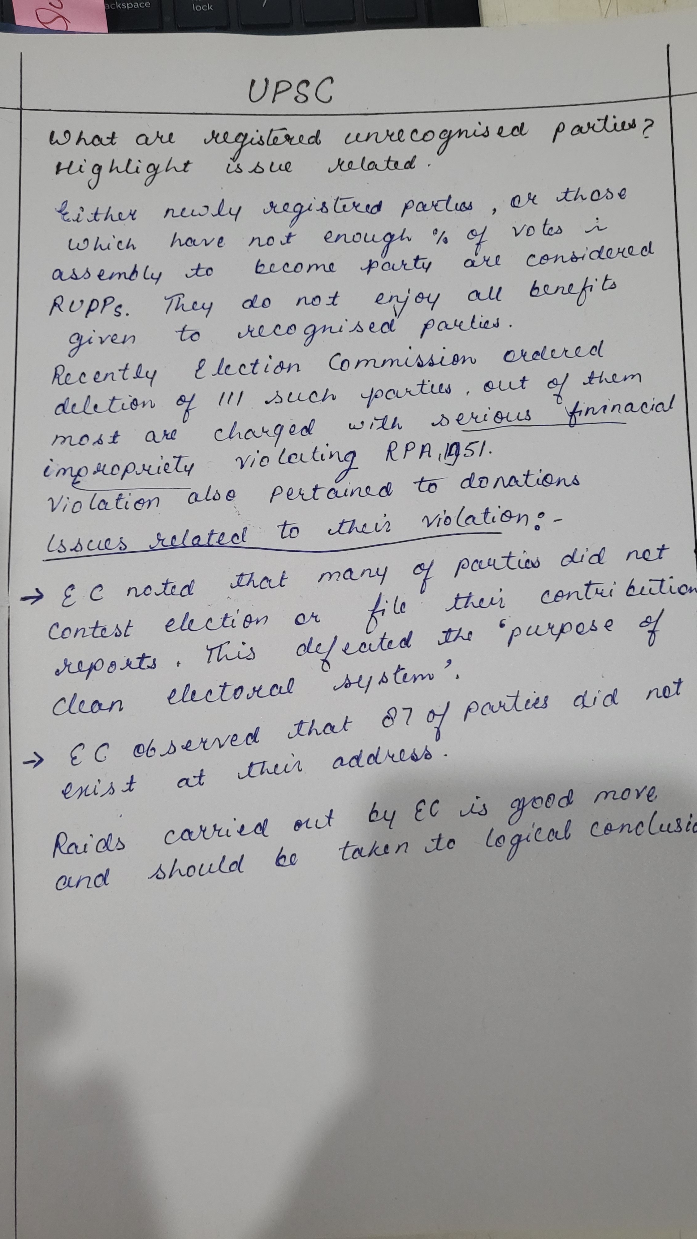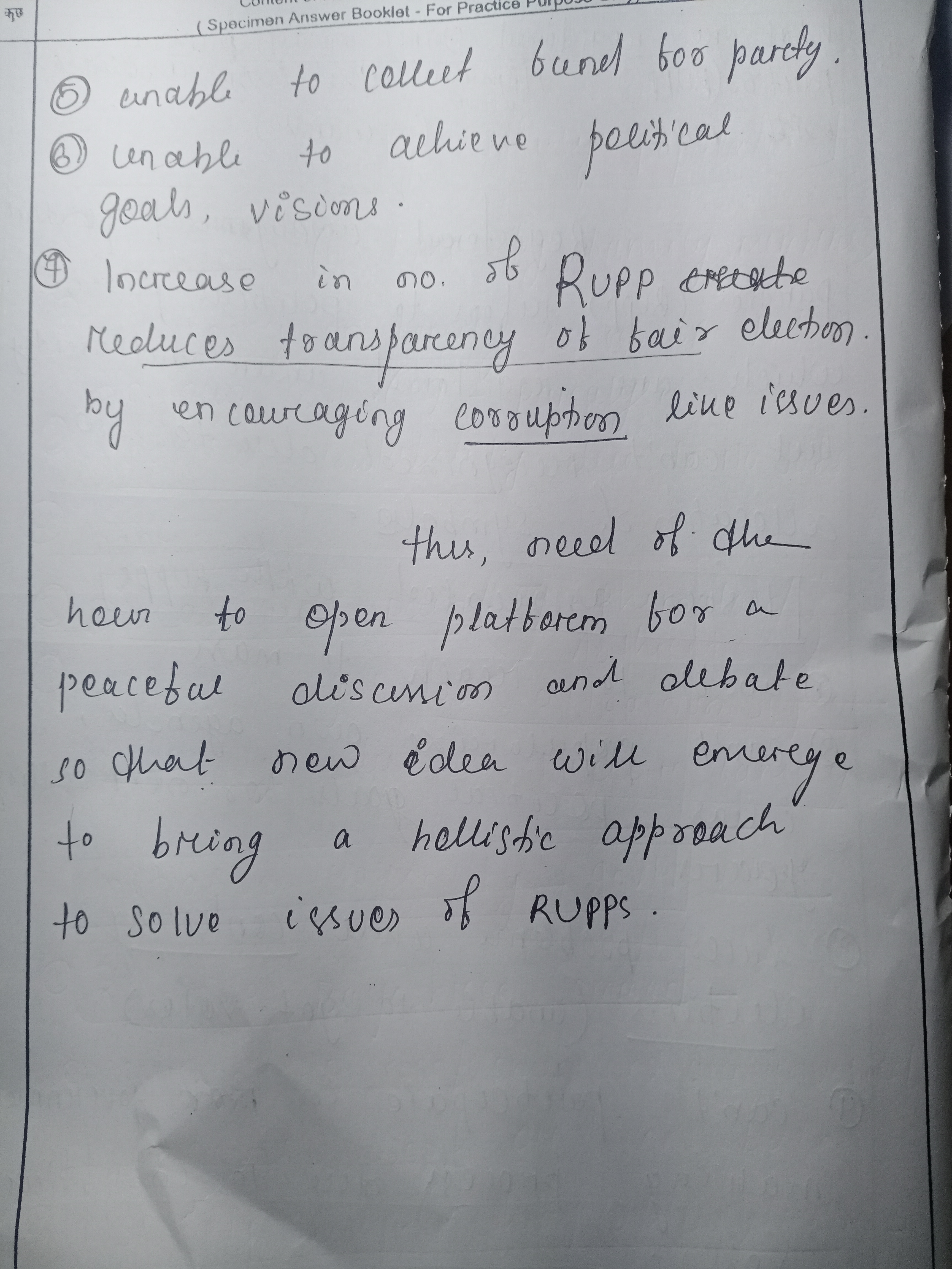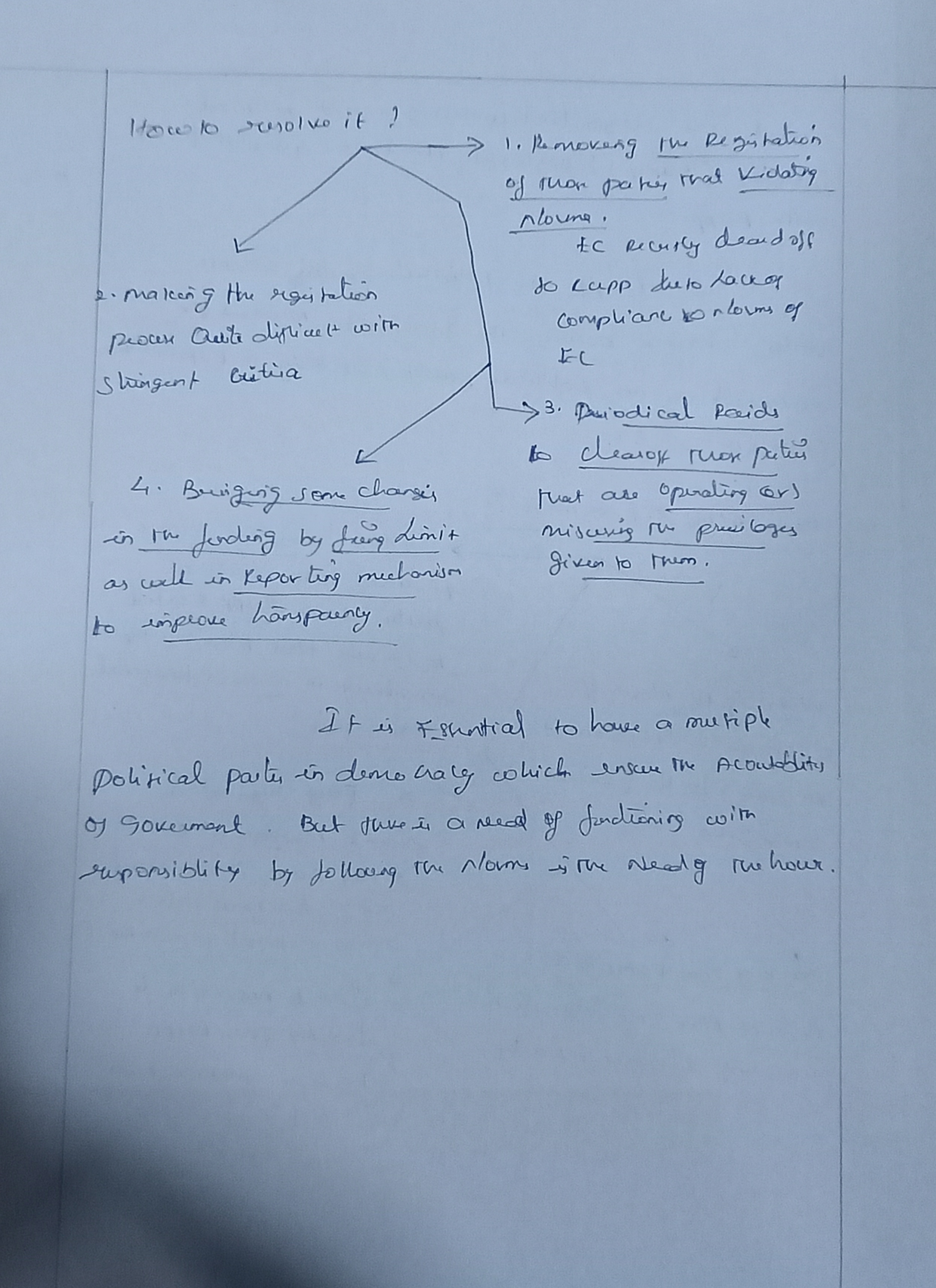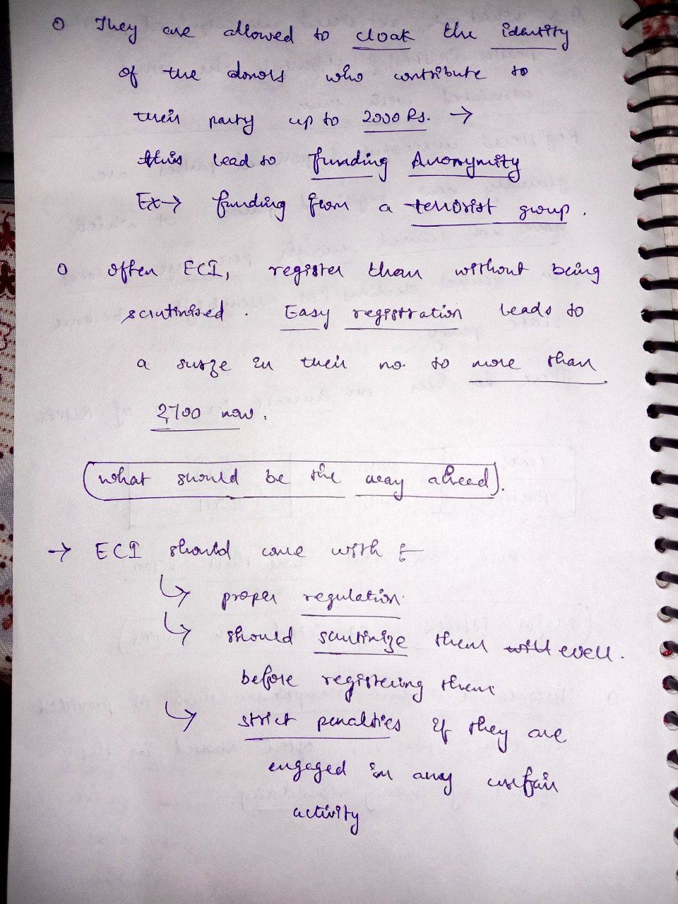 While providing suggestions, IF there are any reports by some Commission or Committee always try to include them. It gives more authenticity to suggestions e.g., Law Commission has made some recommendation about electoral finance (removal of anonymity for donations above certain threshold), You can add here.